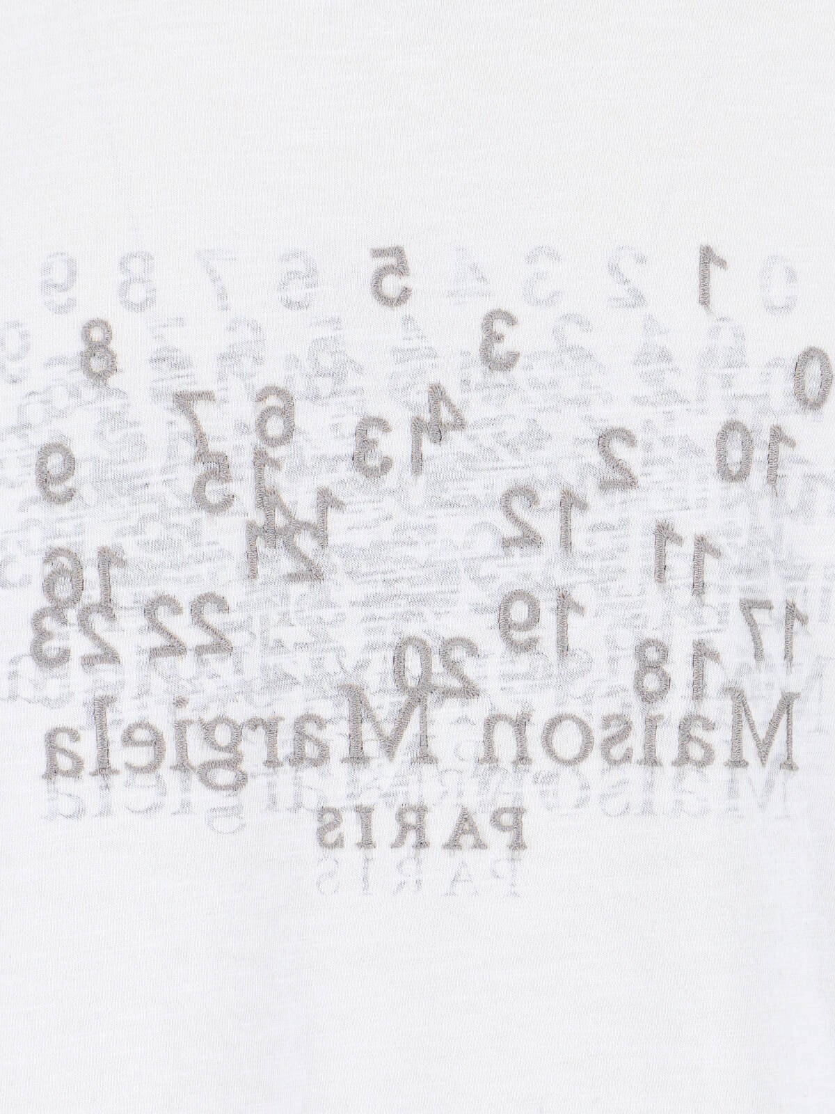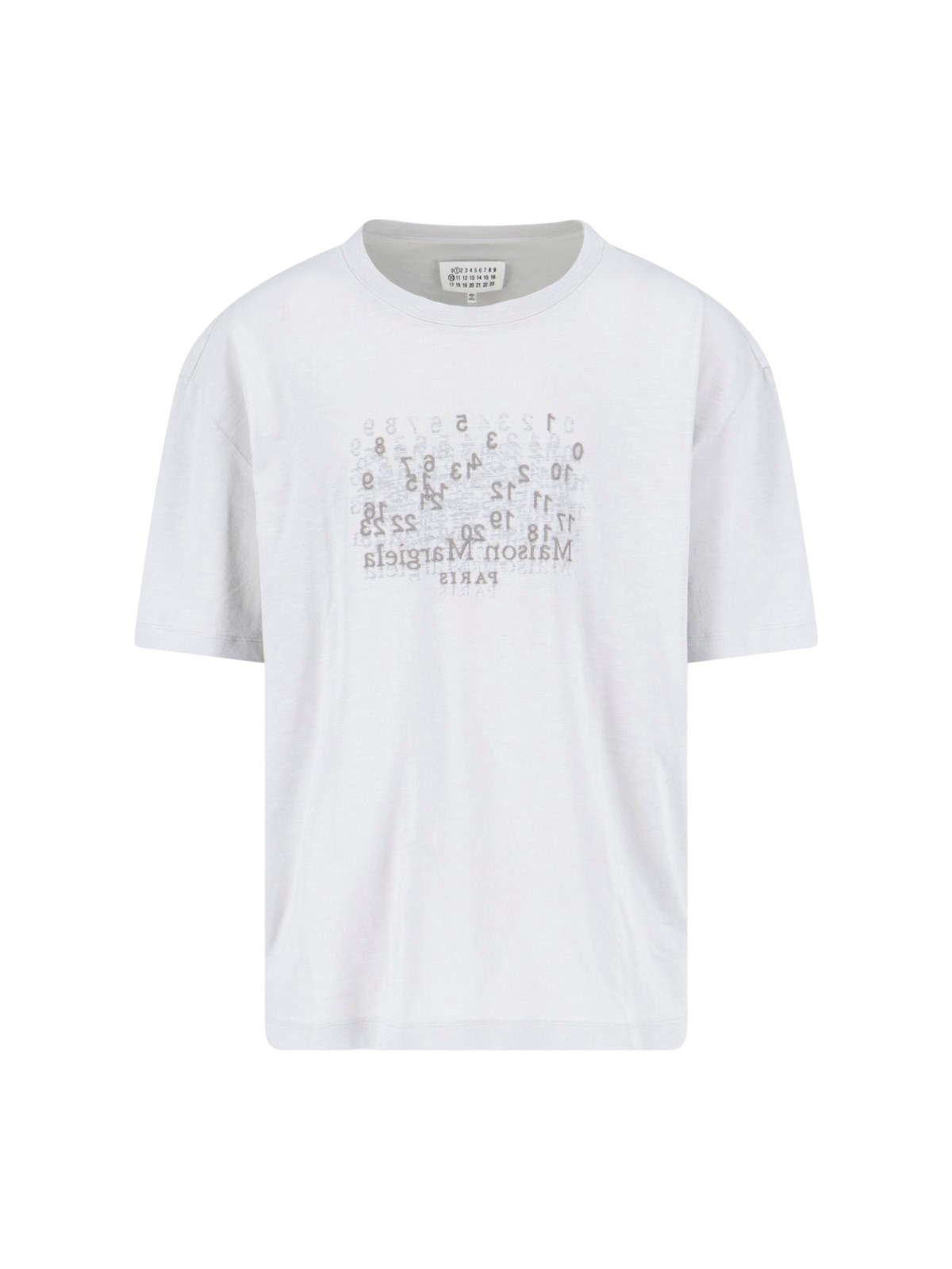 Maison Margiela logo t-shirt in grey cotton with crew neck, short sleeves, contrasting printed logo on the front, straight hem.
