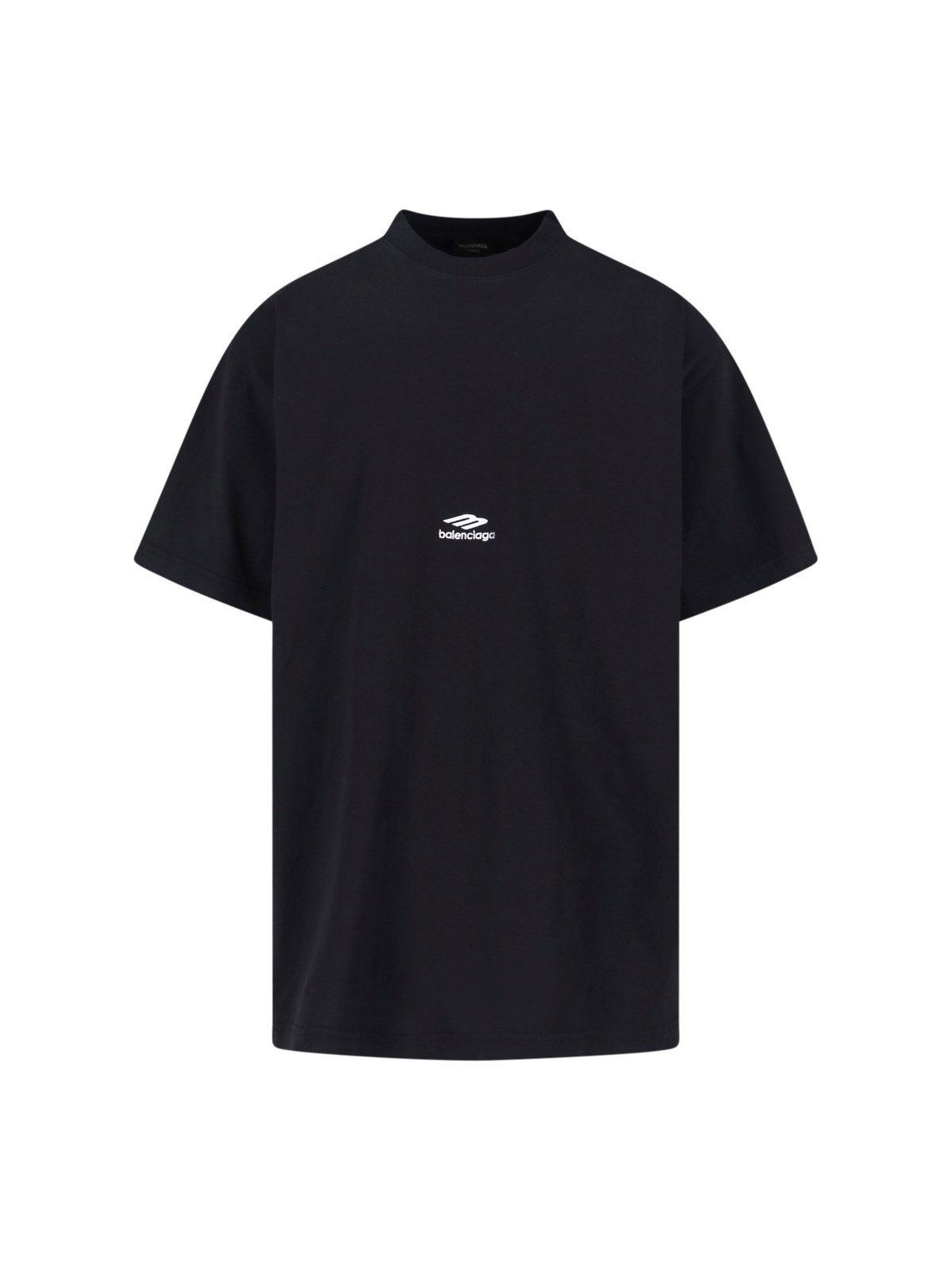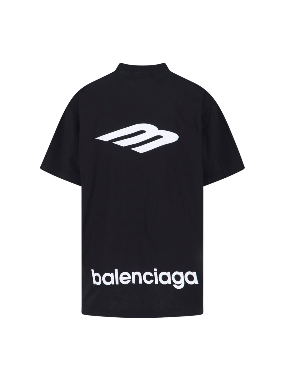 T-shirt '3B Sports Icon' by Balenciaga in black cotton, crew neck, short sleeves, printed logo front and back, straight hem.