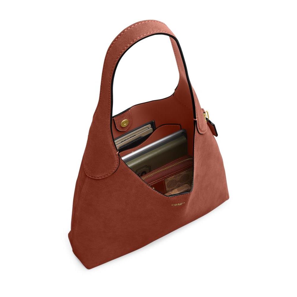 ¼³¸í:Hobo bag,shoulder bag,decorative label with embossed 'coach' logo,single handle,leather handle,wide strap,front logo,logo in gold letters,visible topstitching,gold finish.