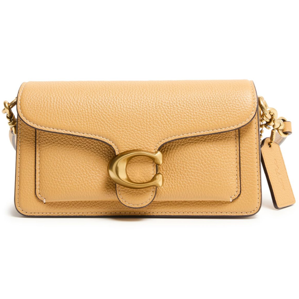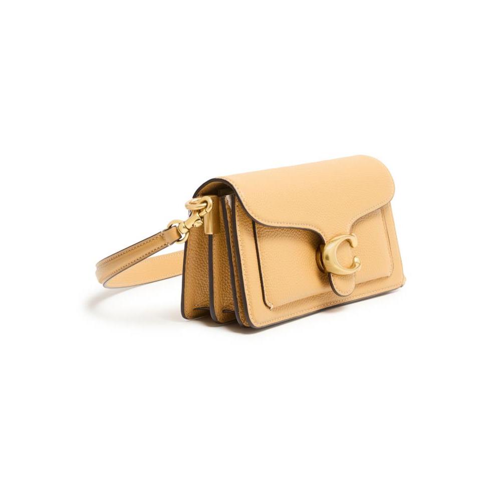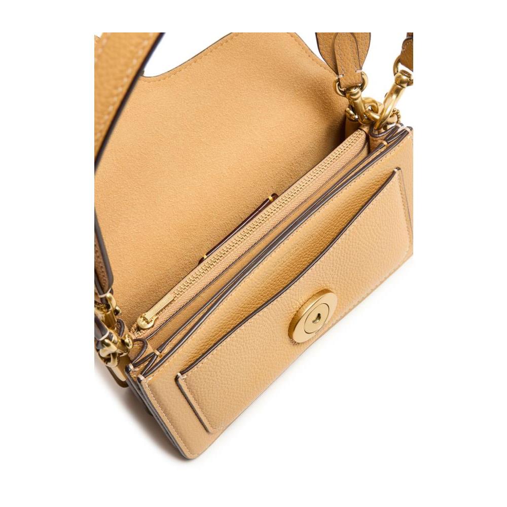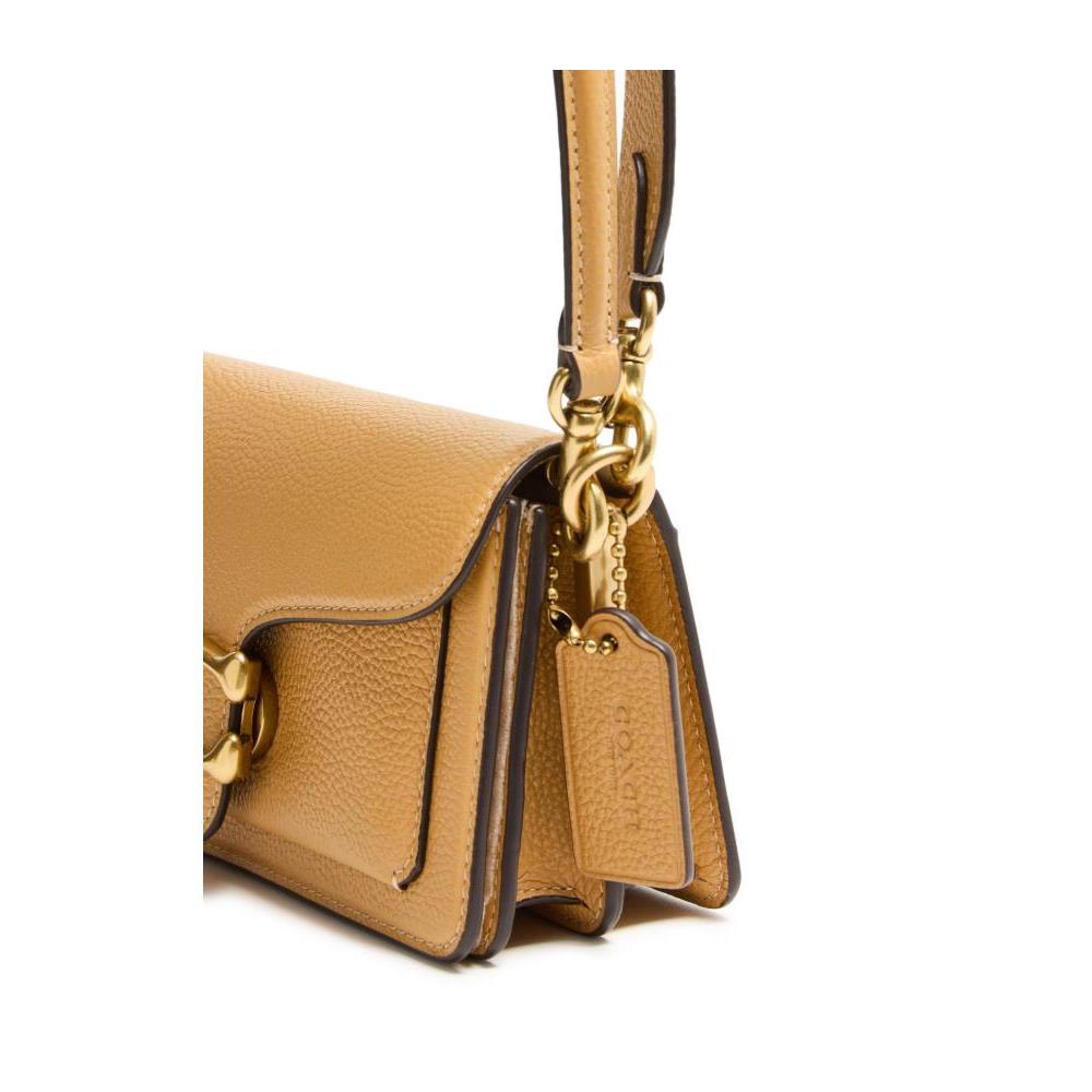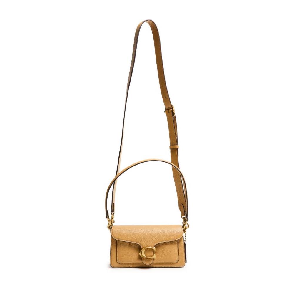 Description : Shoulder bag, crossbody bag, magnetic 'C' buckle, decorative label with embossed 'Coach' logo, single handle, leather handle, thin strap, detachable strap, metallic logo on the front, front logo.