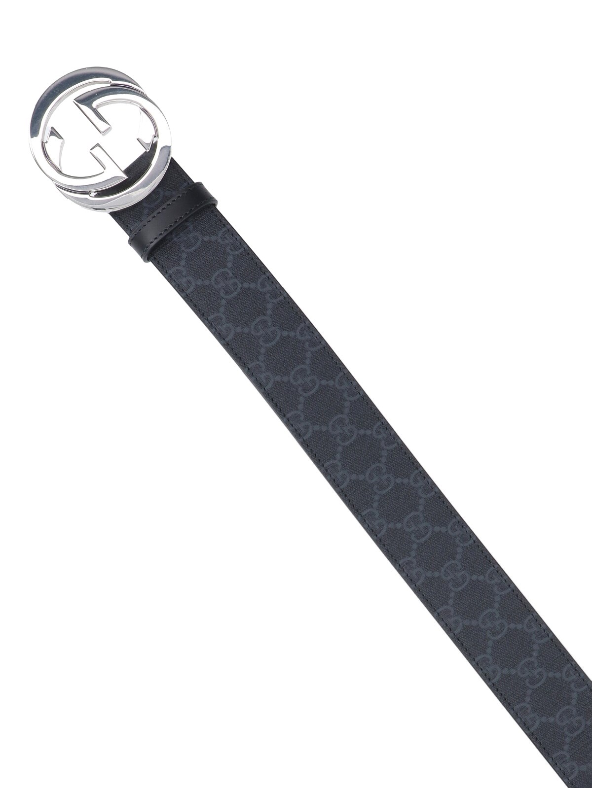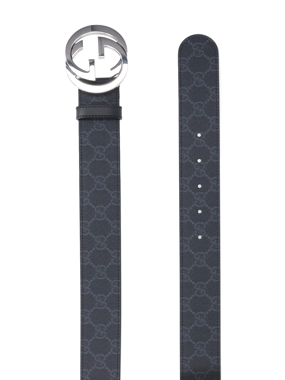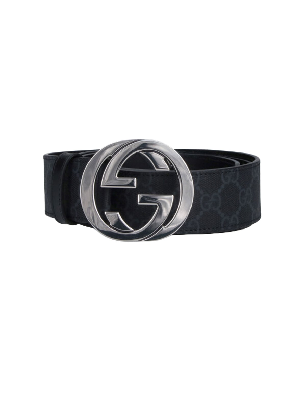 Gucci GG Supreme belt, metal GG buckle, allover print, adjustable.