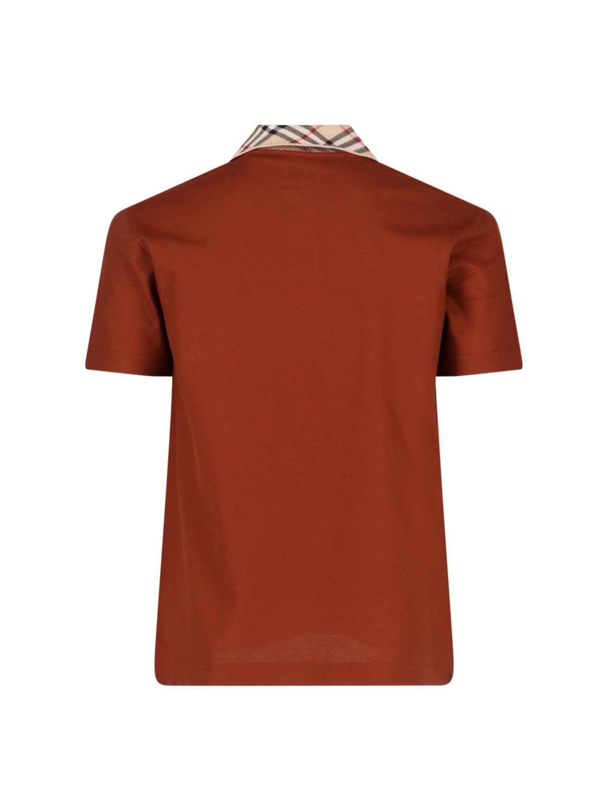 Burberry 'check' brown cotton polo shirt with classic collar, check pattern, short sleeves, button closure, straight hem.