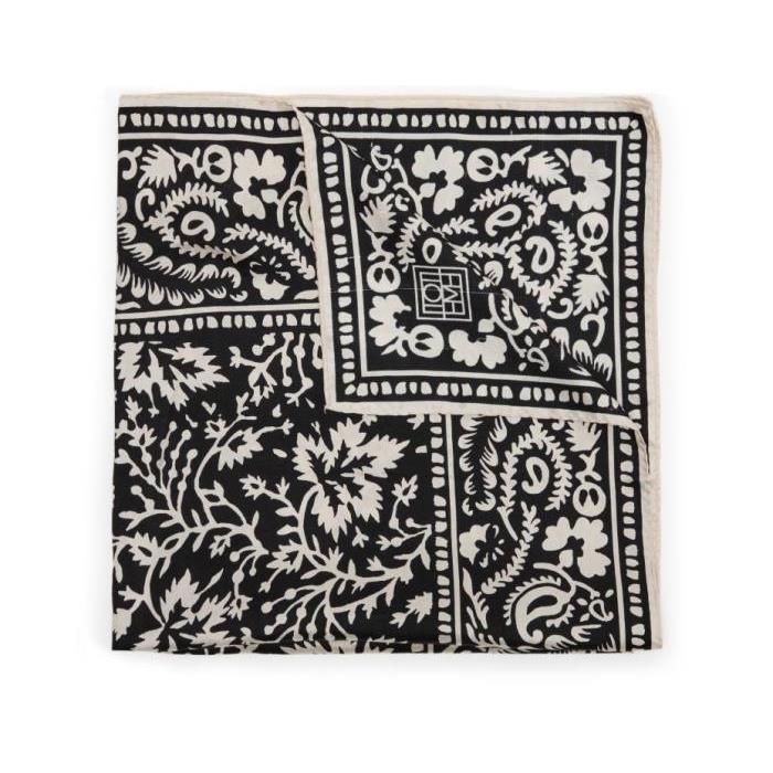 Description : Silk scarves, front logo, floral print, topstitched edges.