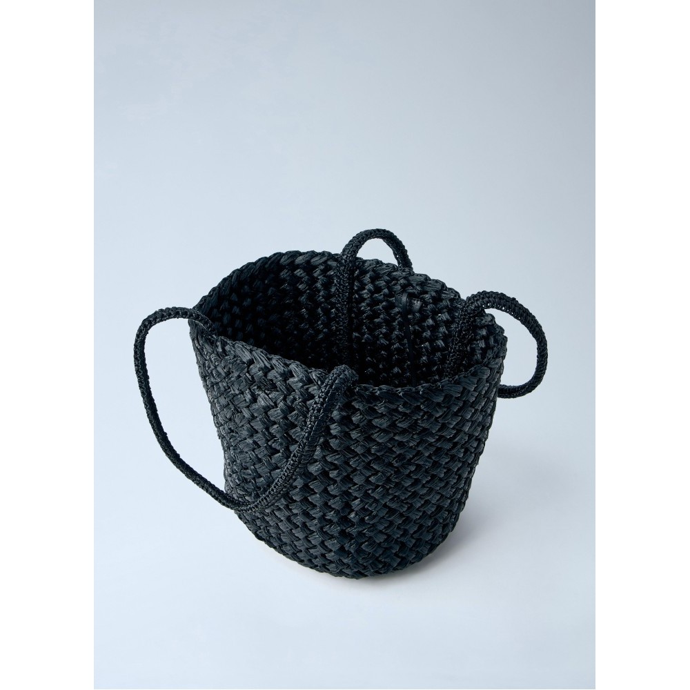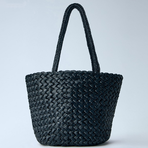 Woven basket tote in braided construction.