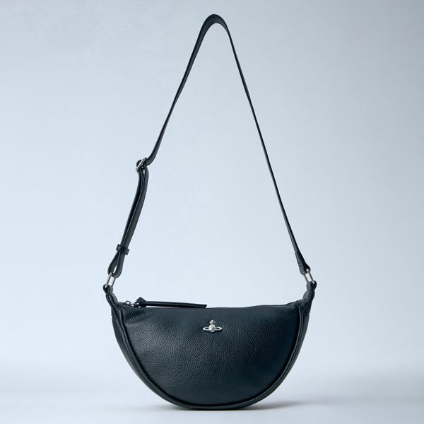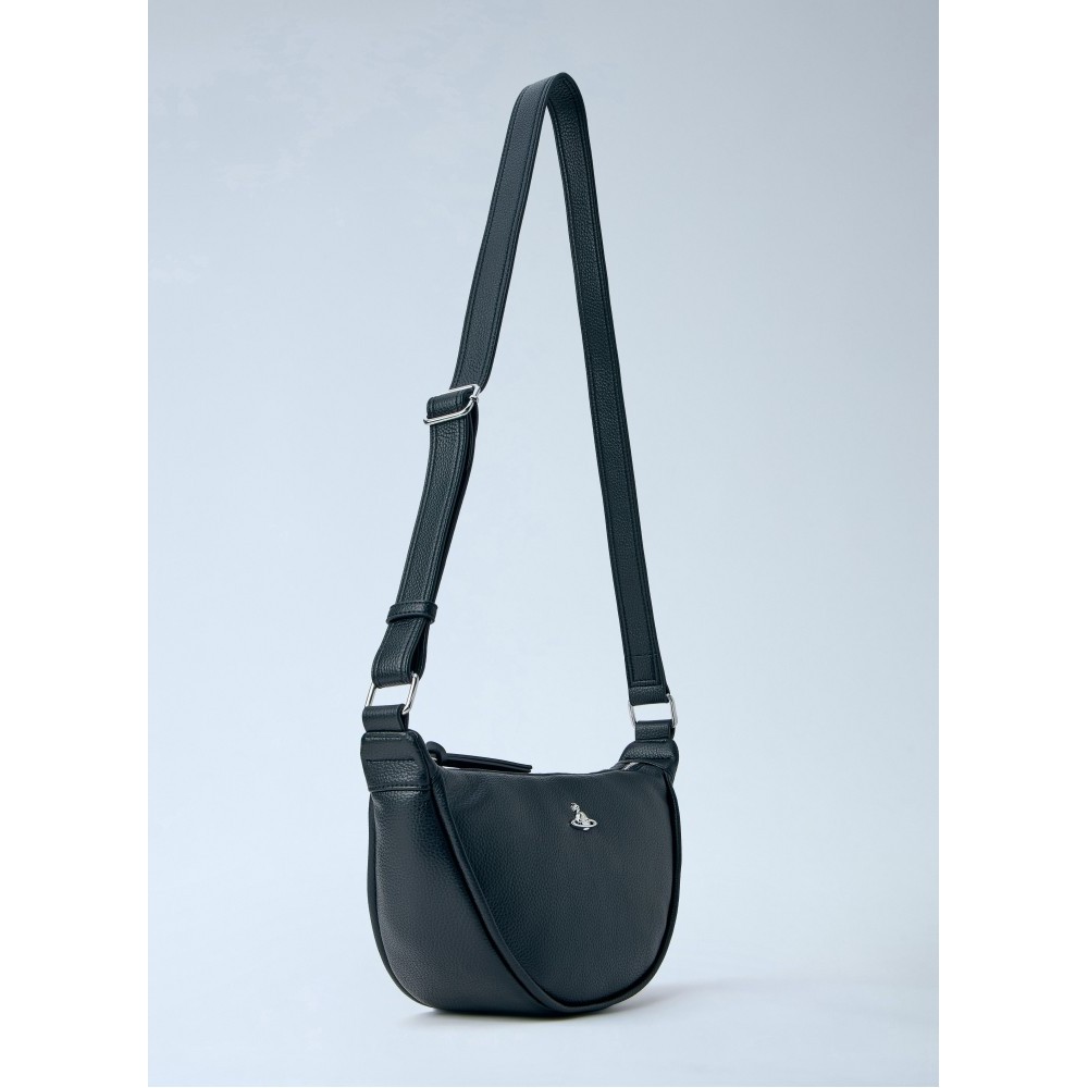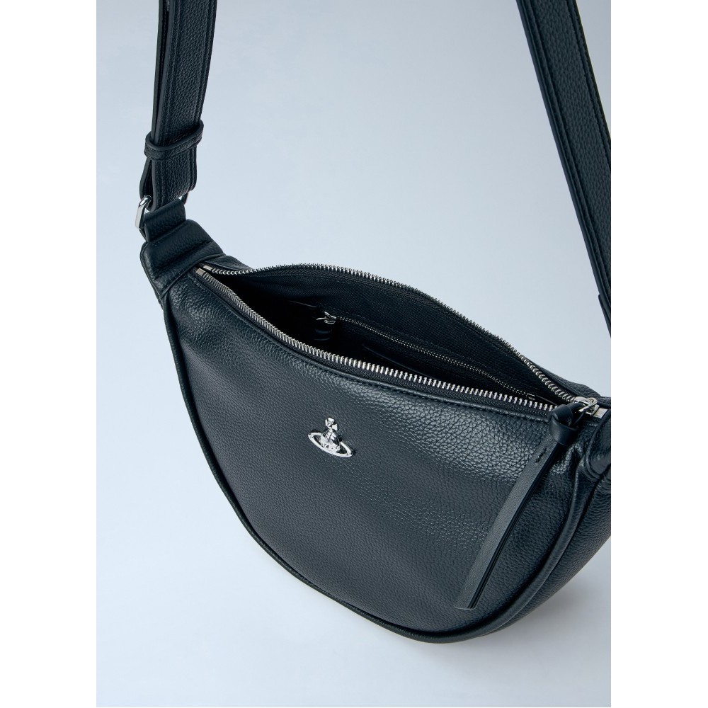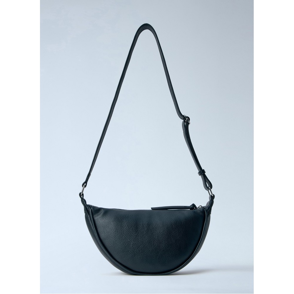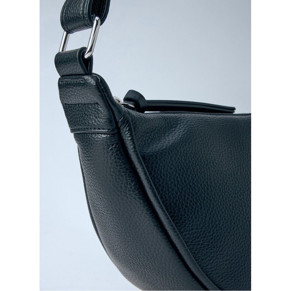 Half-moon bag in pebbled leather with adjustable strap.