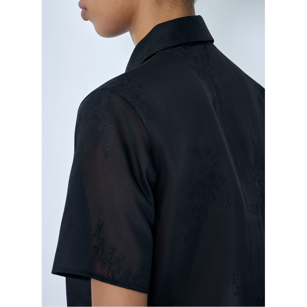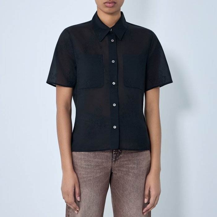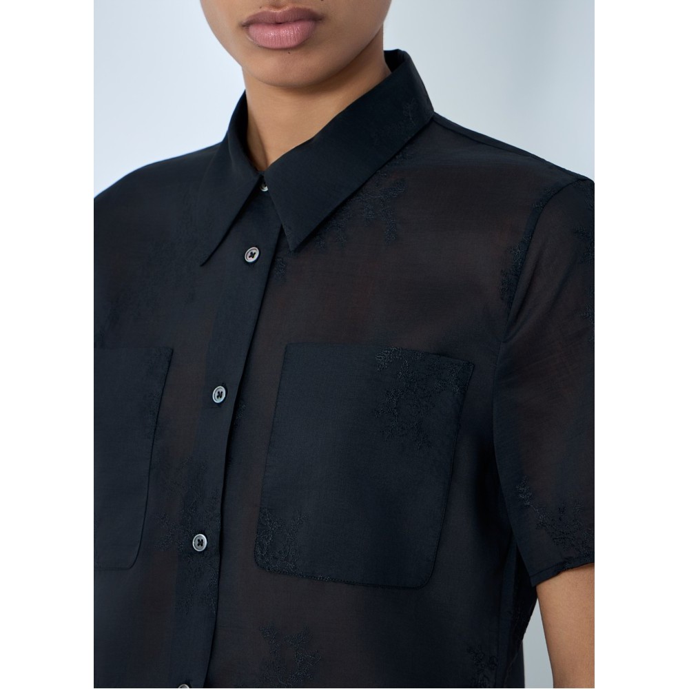 Button-down shirt in sheer fabric with chest pockets.