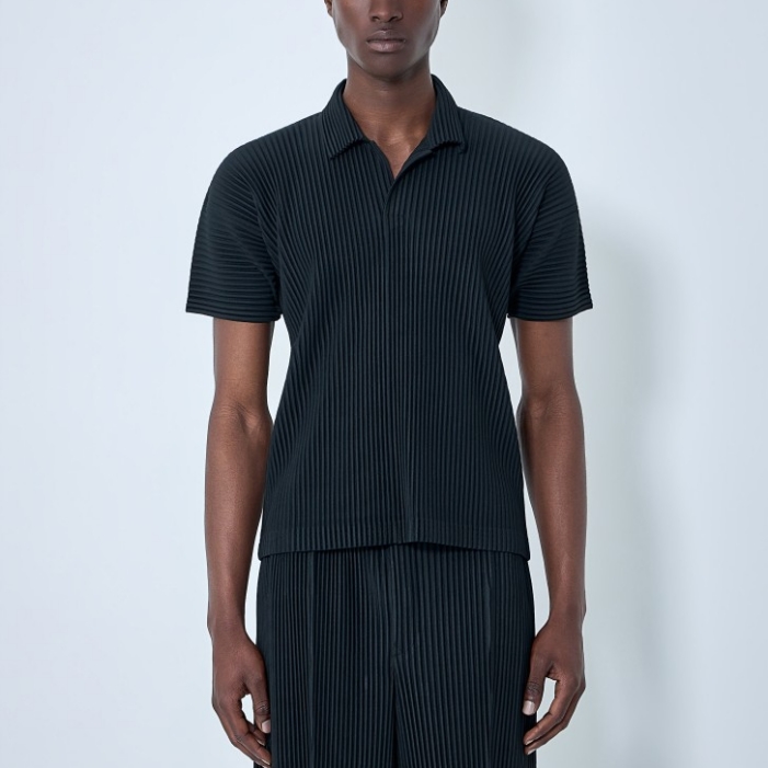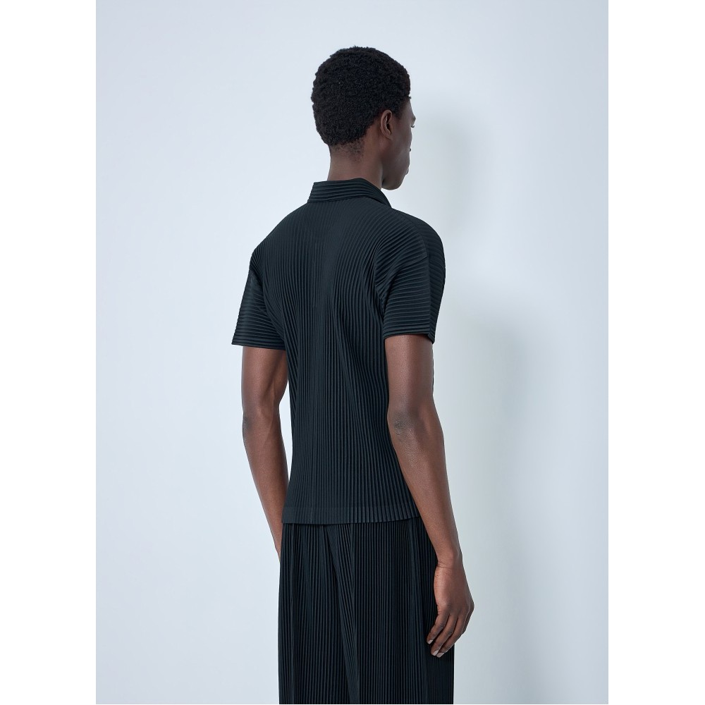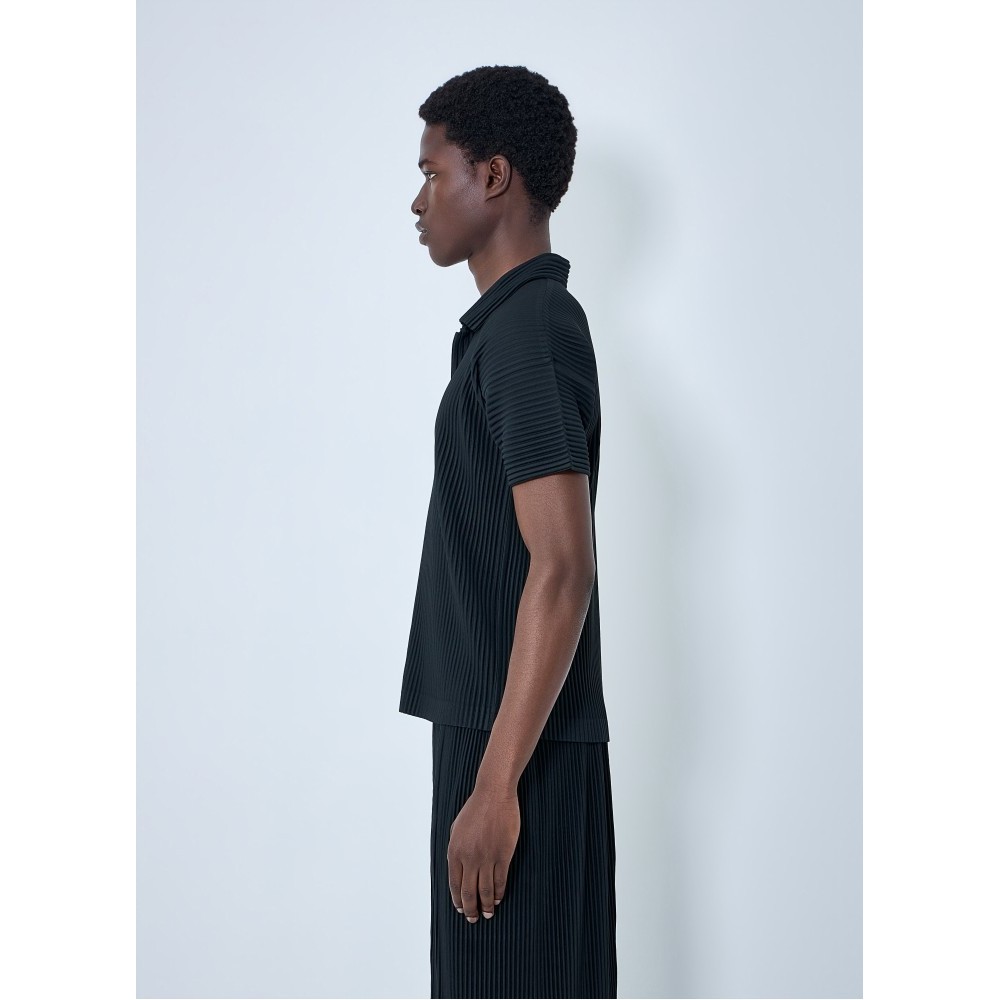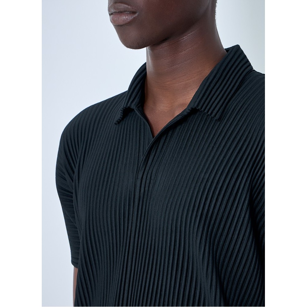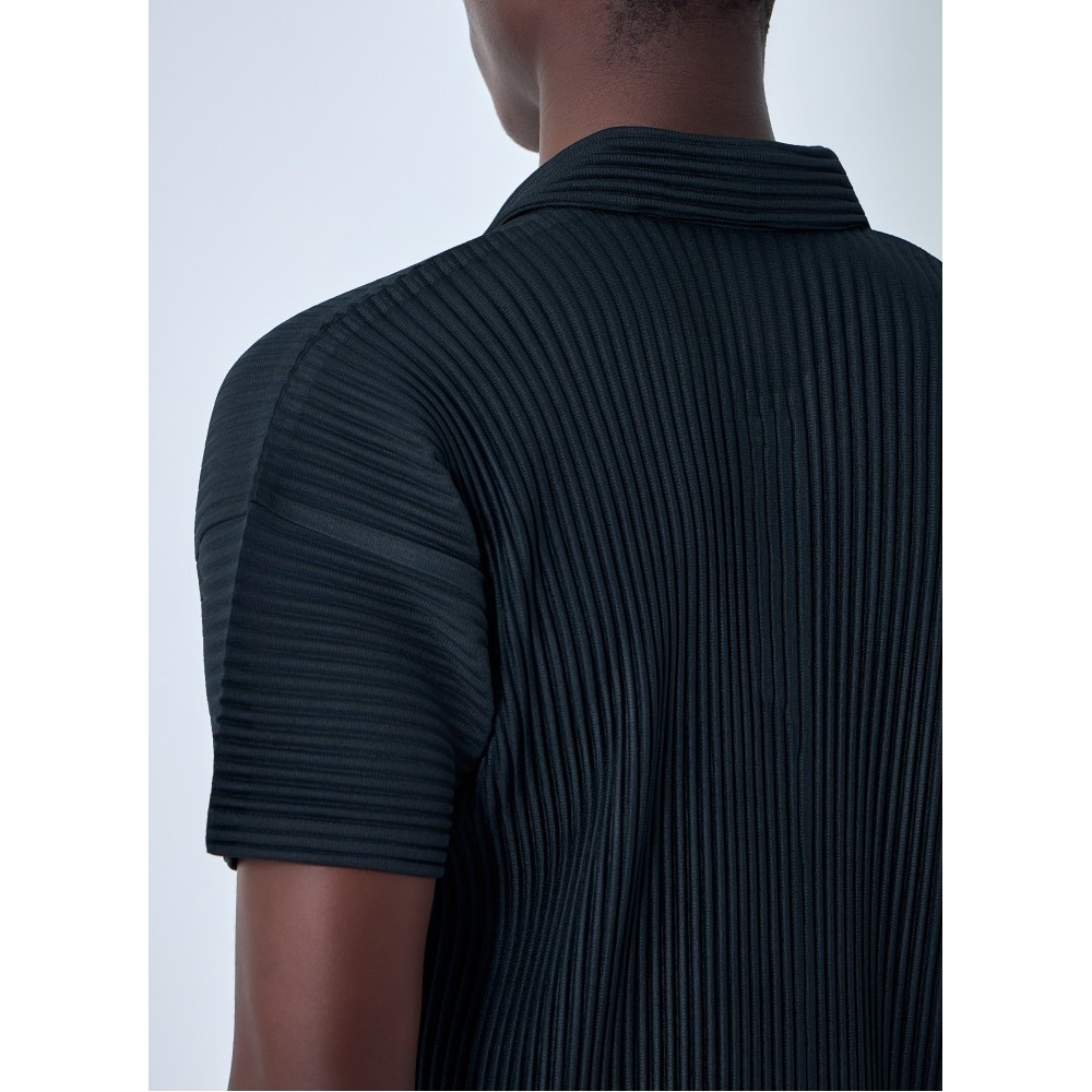Short sleeve shirt with a pleated construction.