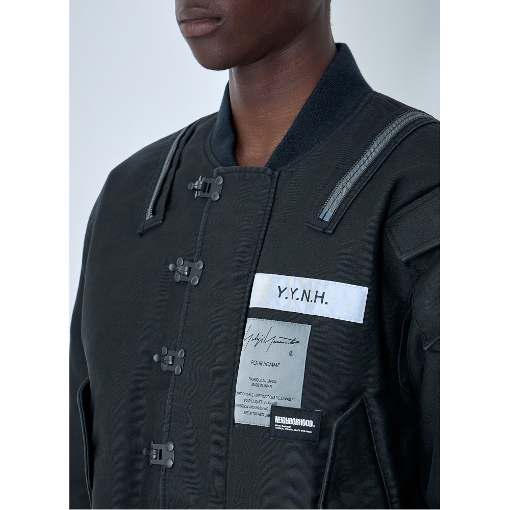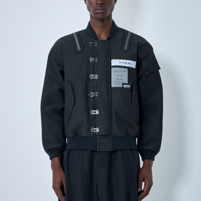 Bomber jacket with buckle fastenings and ribbed trims.