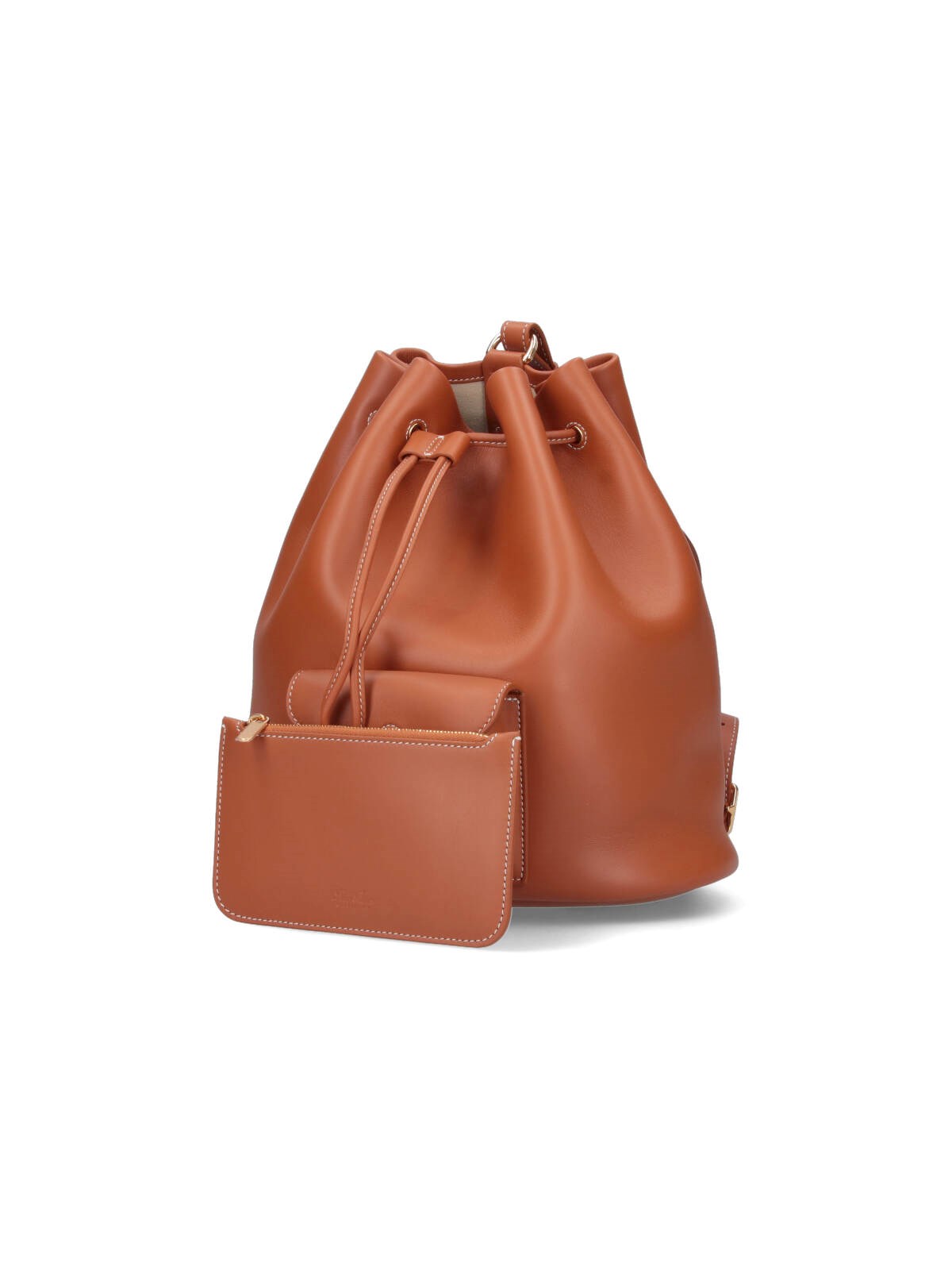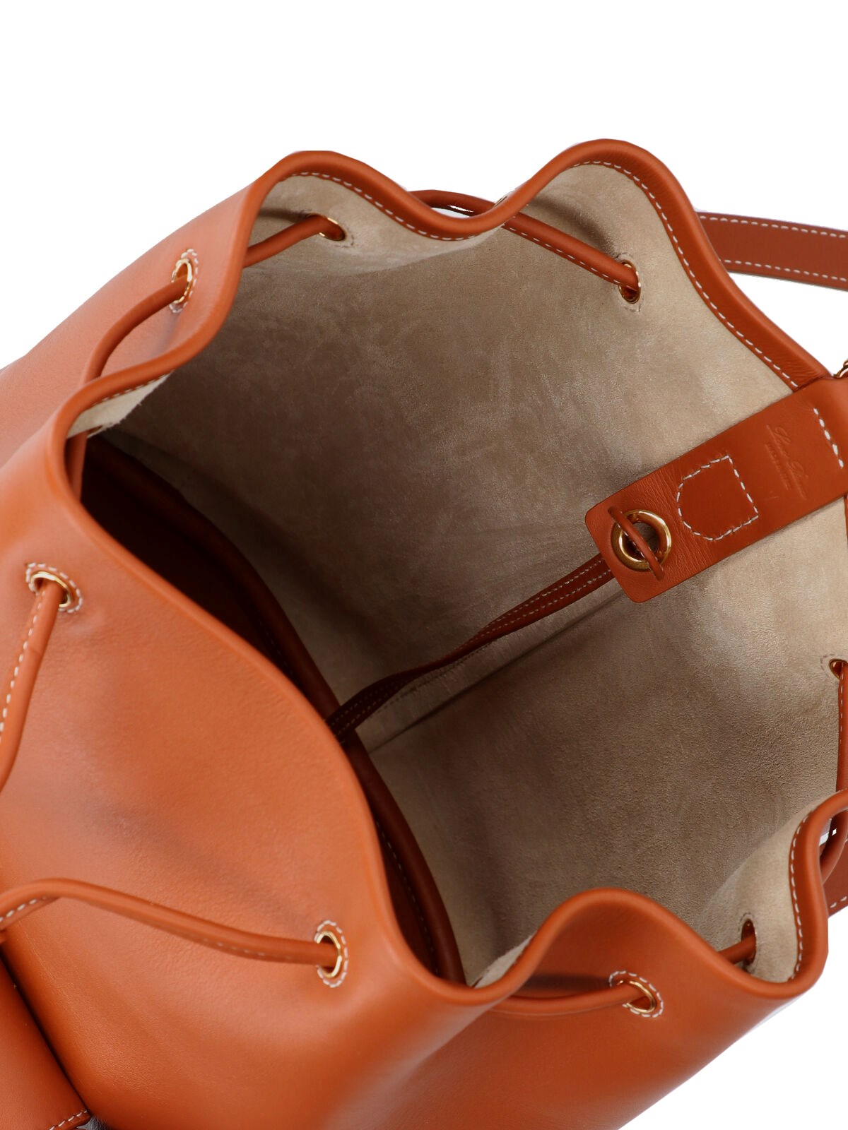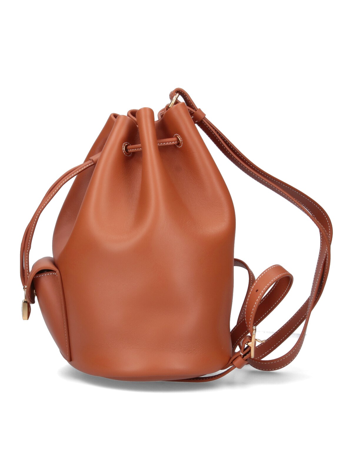 Loro Piana "Extra Drawstring" backpack, in brown hammered calf leather, an adjustable shoulder strap, drawstring closure, a front pocket, gold metal detail, removable pouch, a main inner compartment.