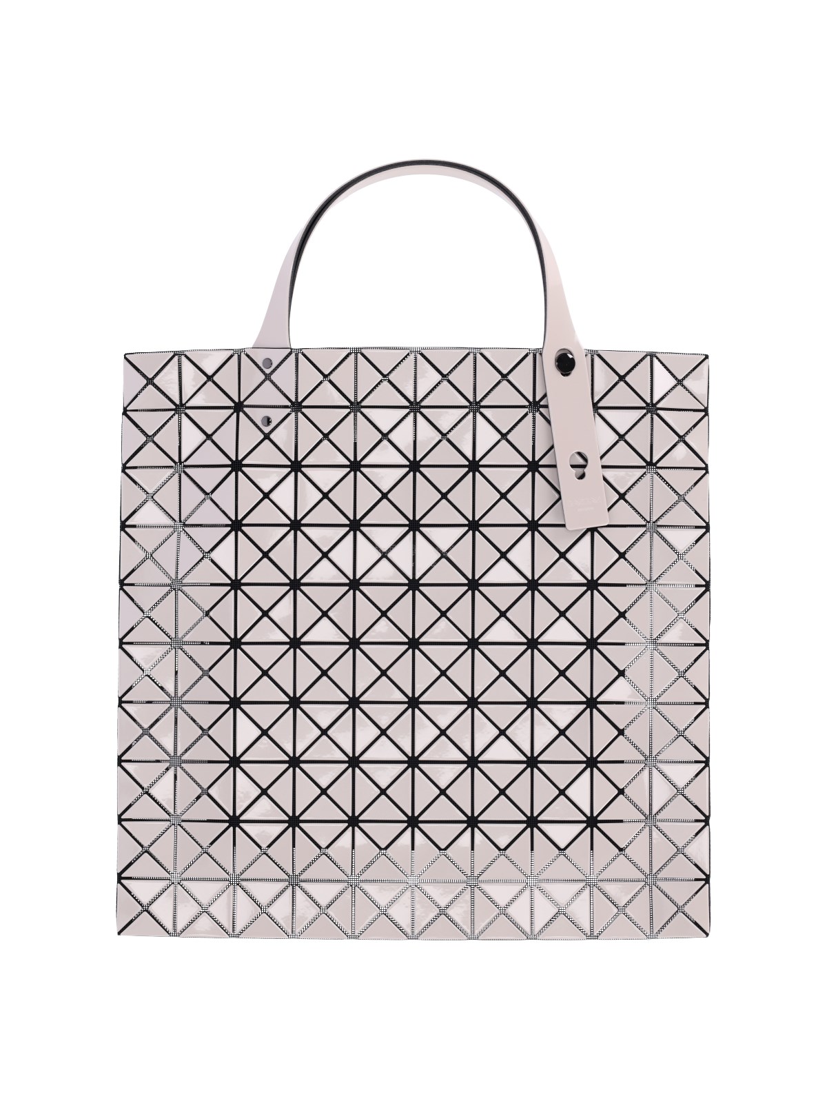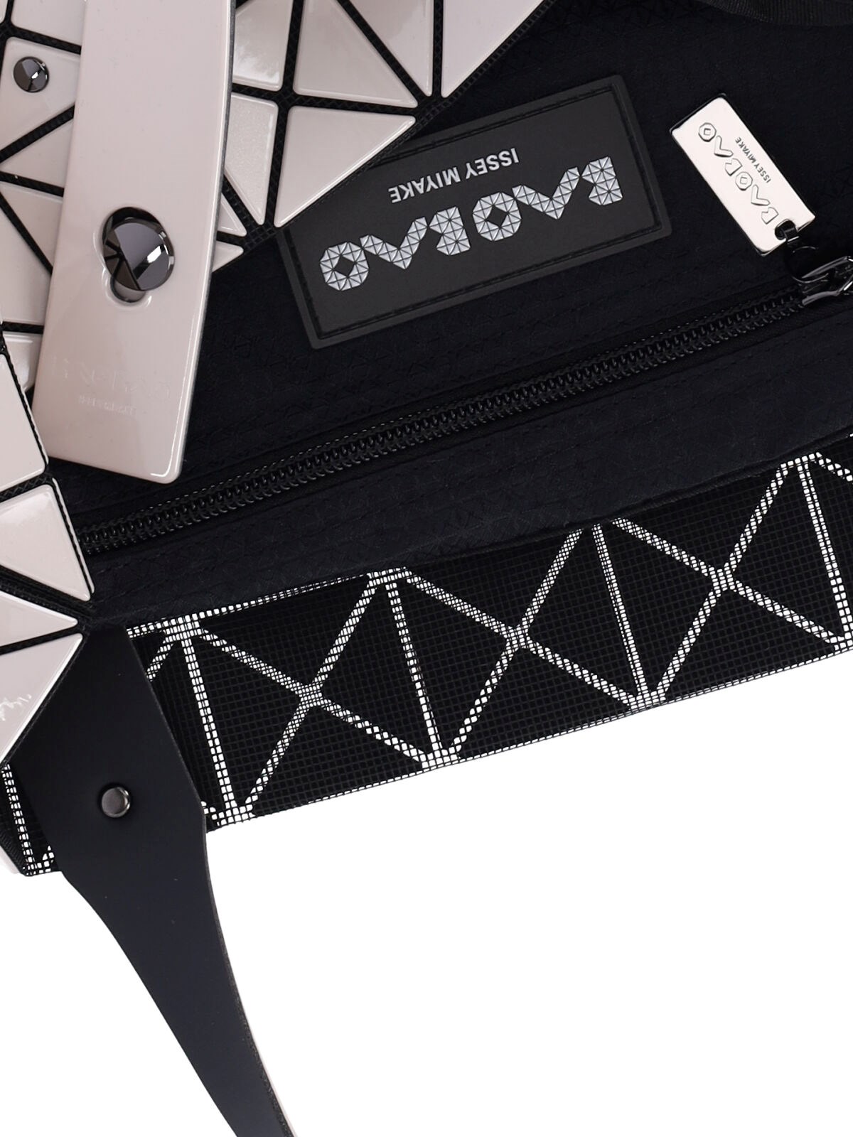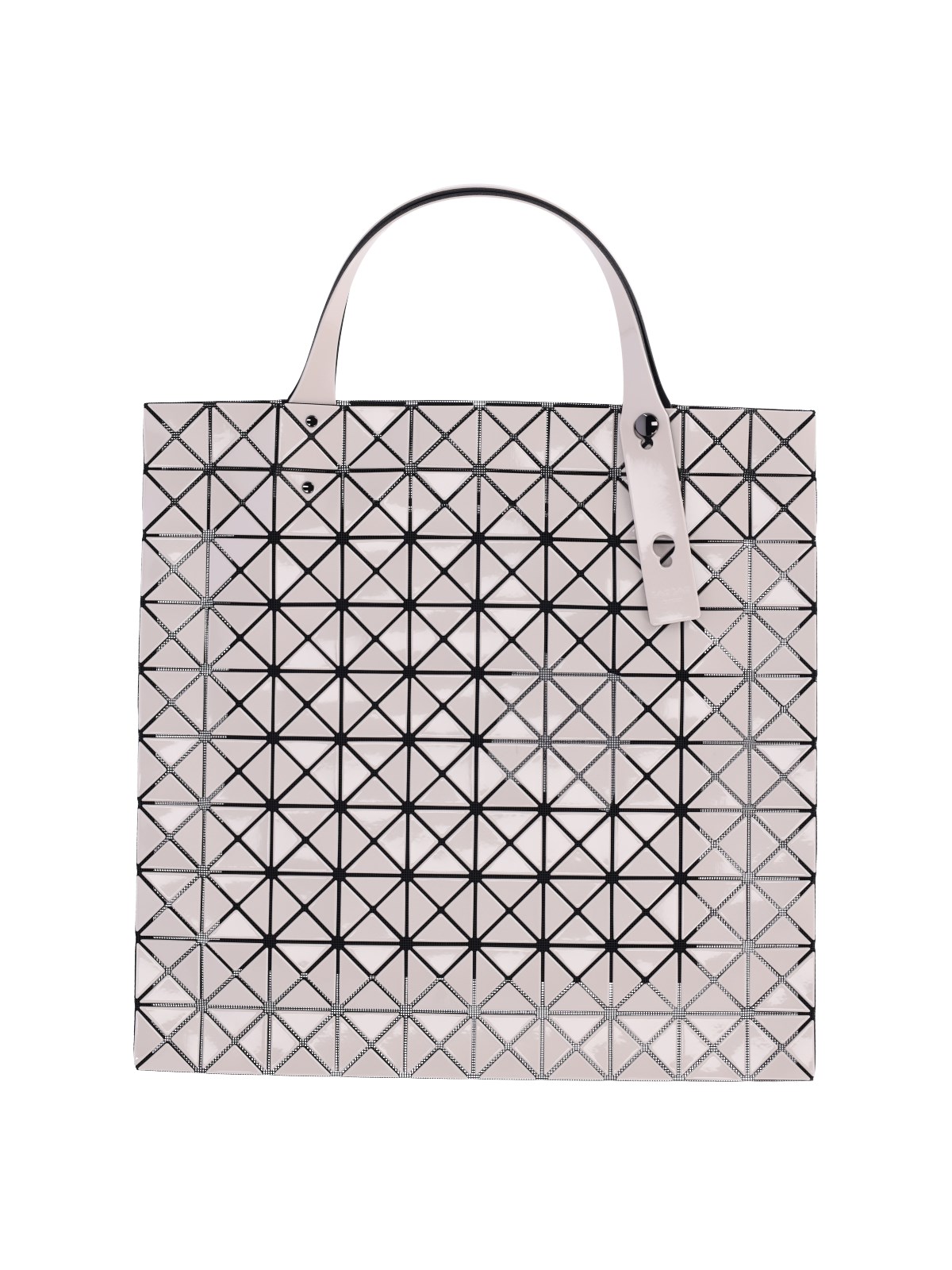 Bao Bao beige PVC Prism tote bag, geometric panel pattern, two adjustable top handles, inner zip pocket, main inner compartment.