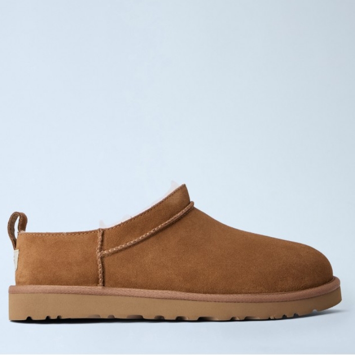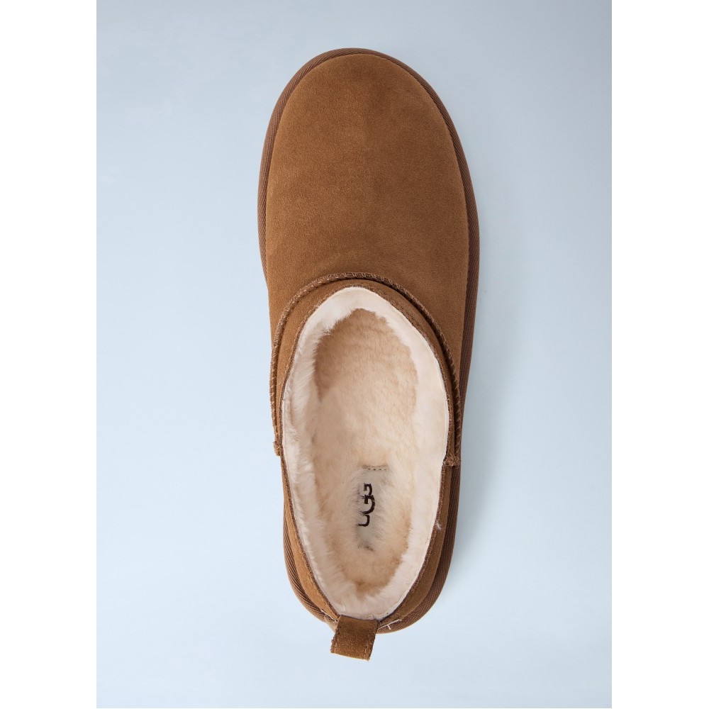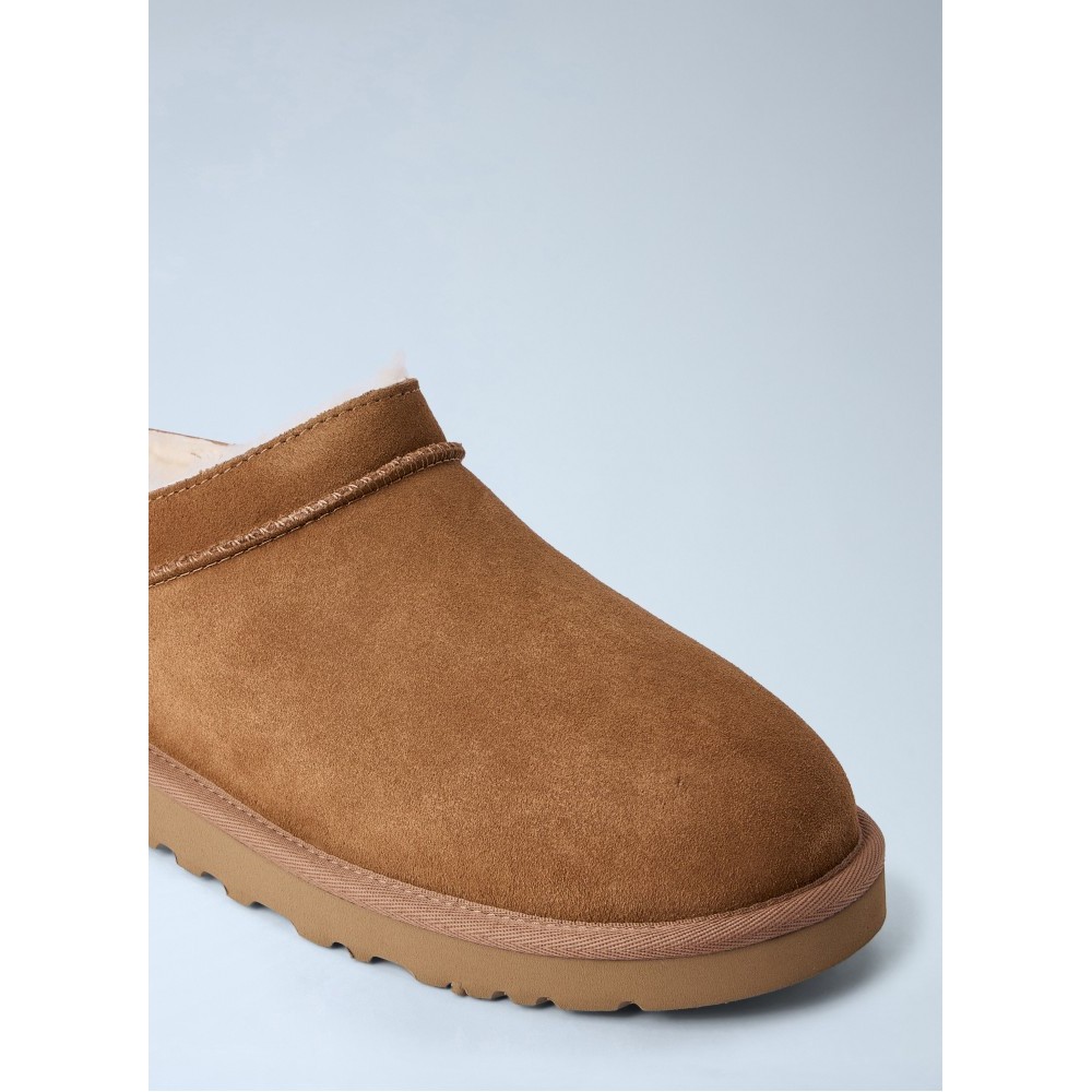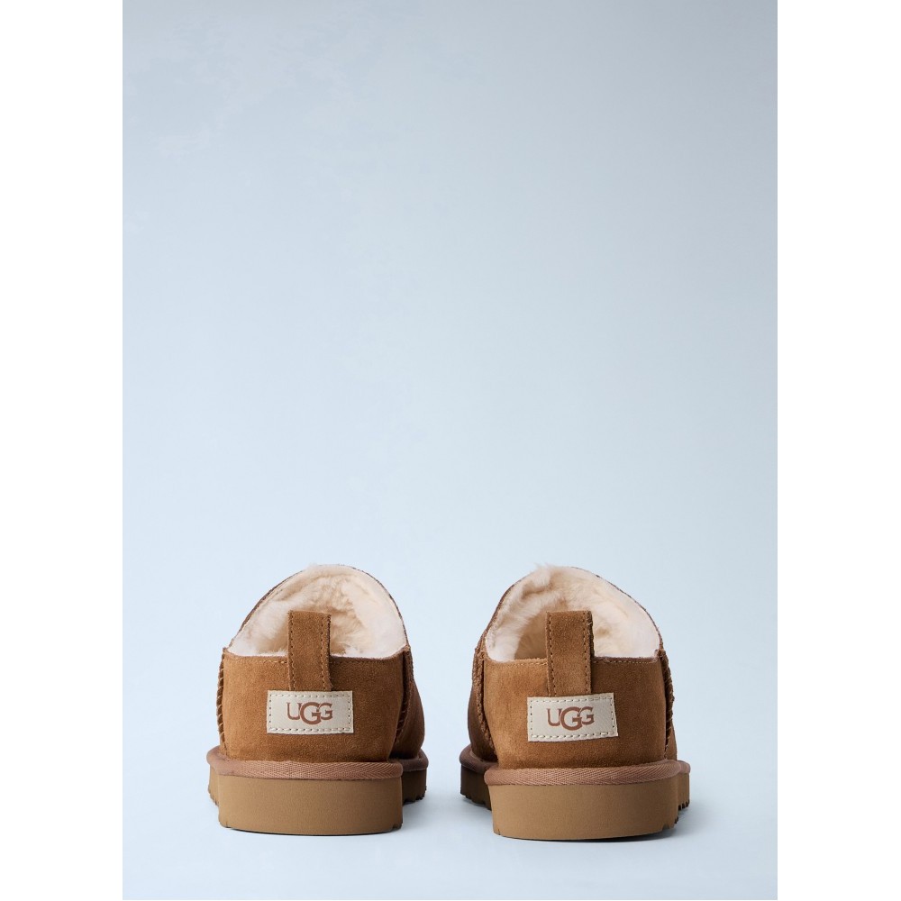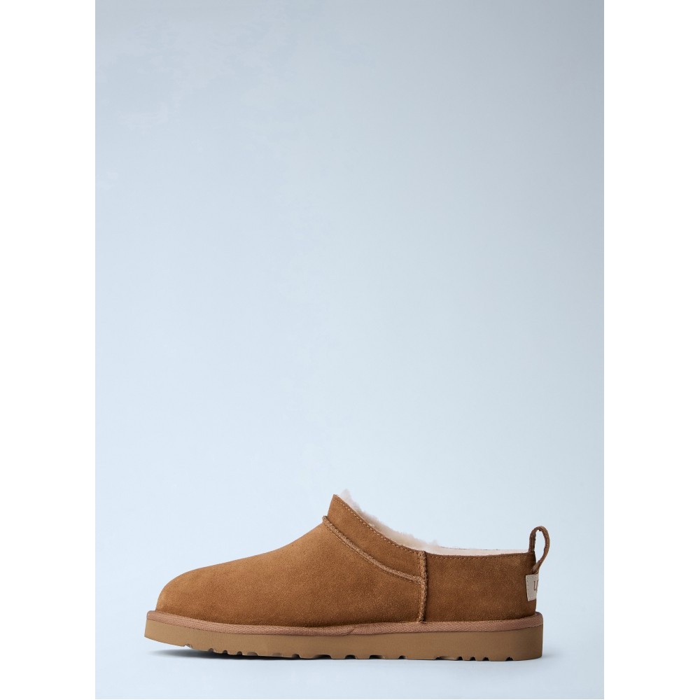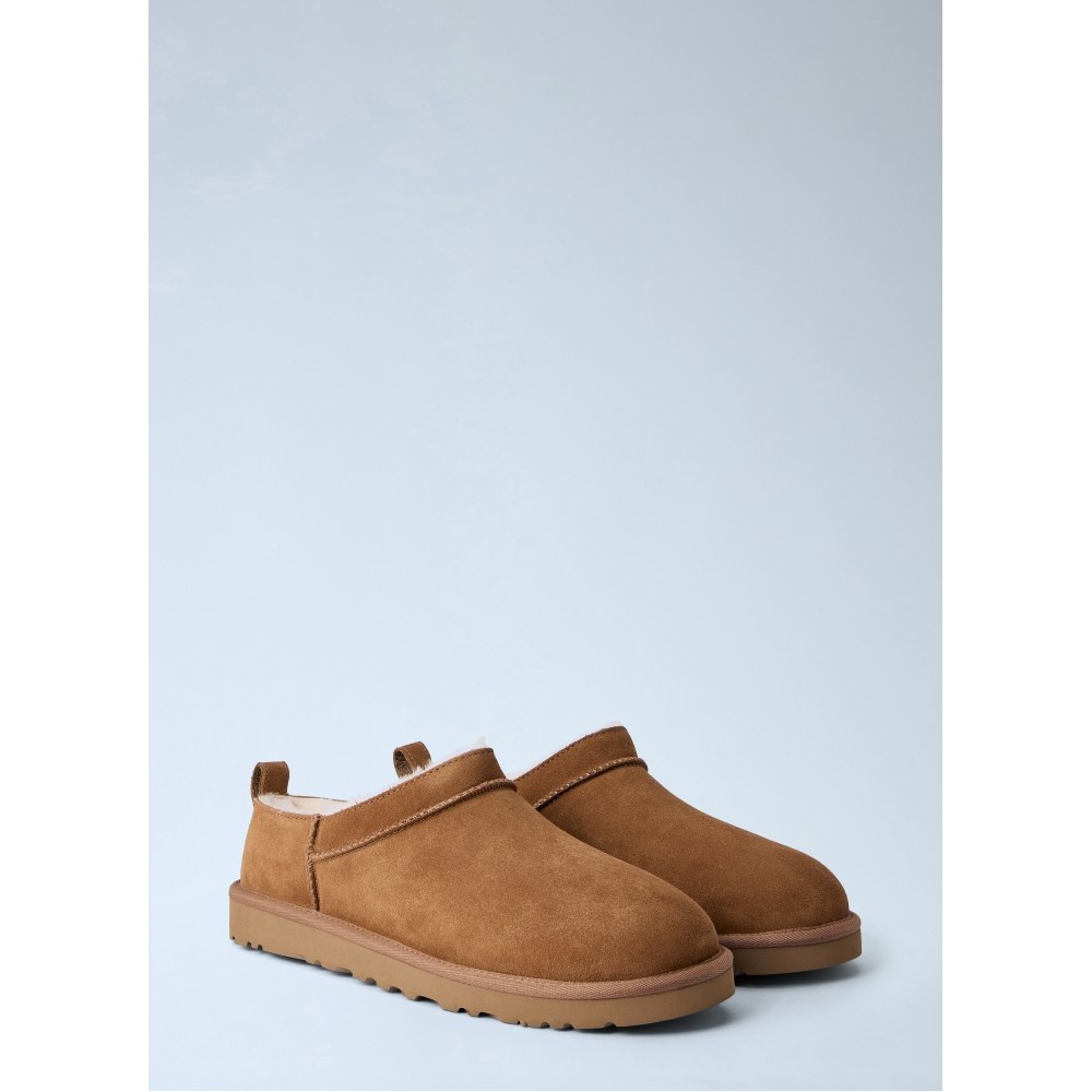 Slip-on mules with suede upper and shearling lining.