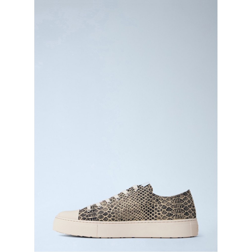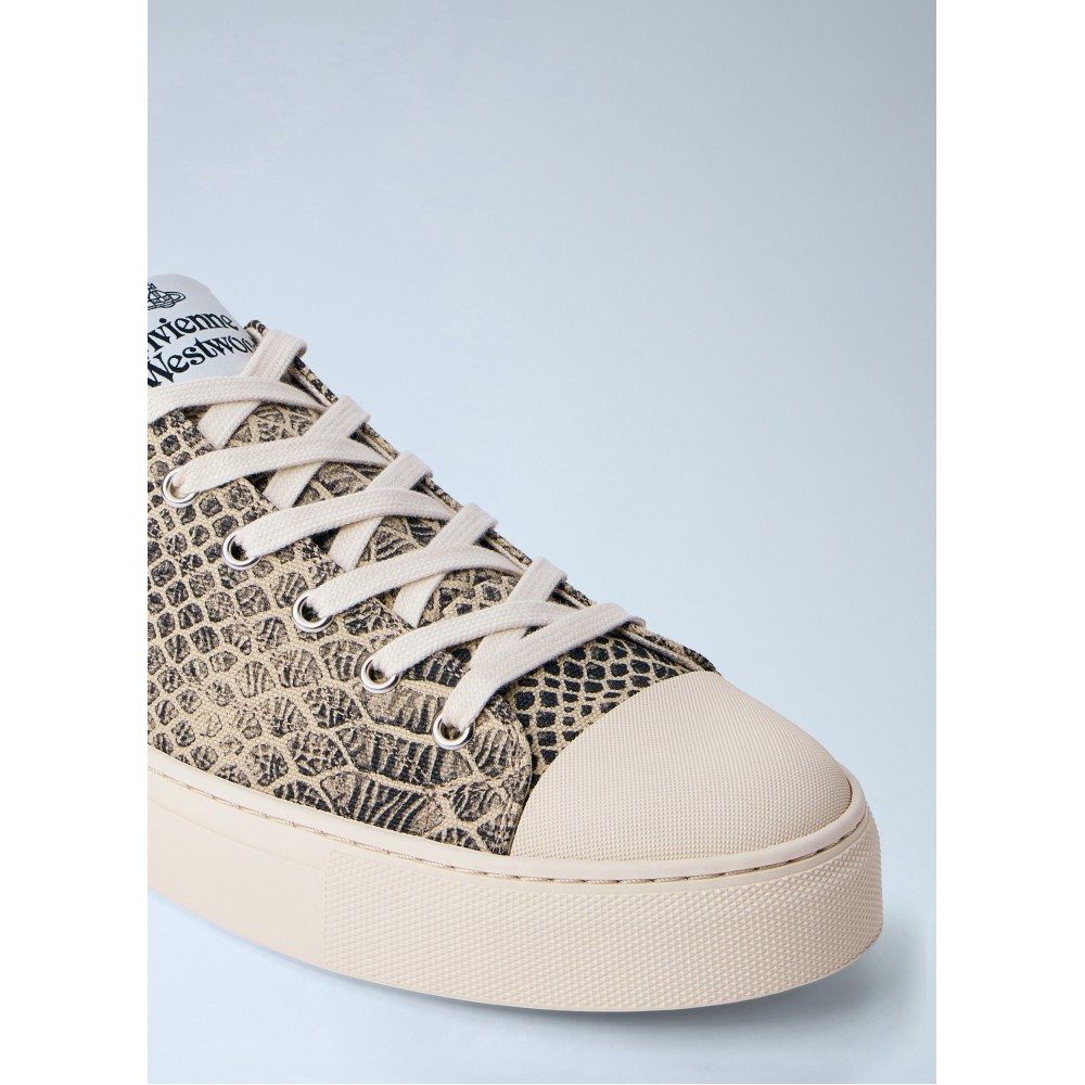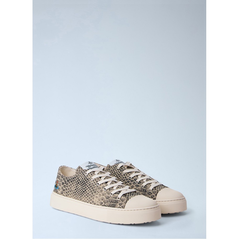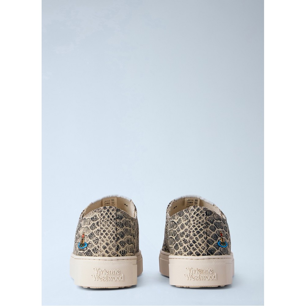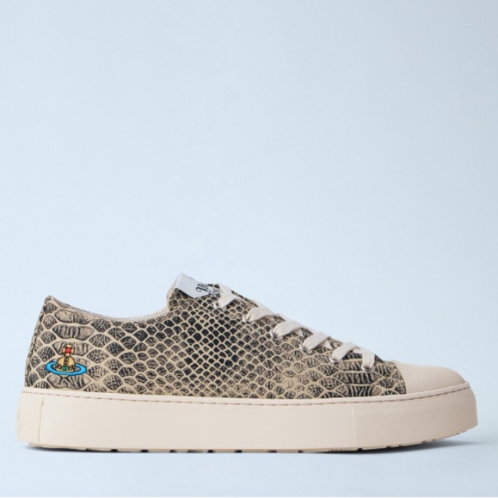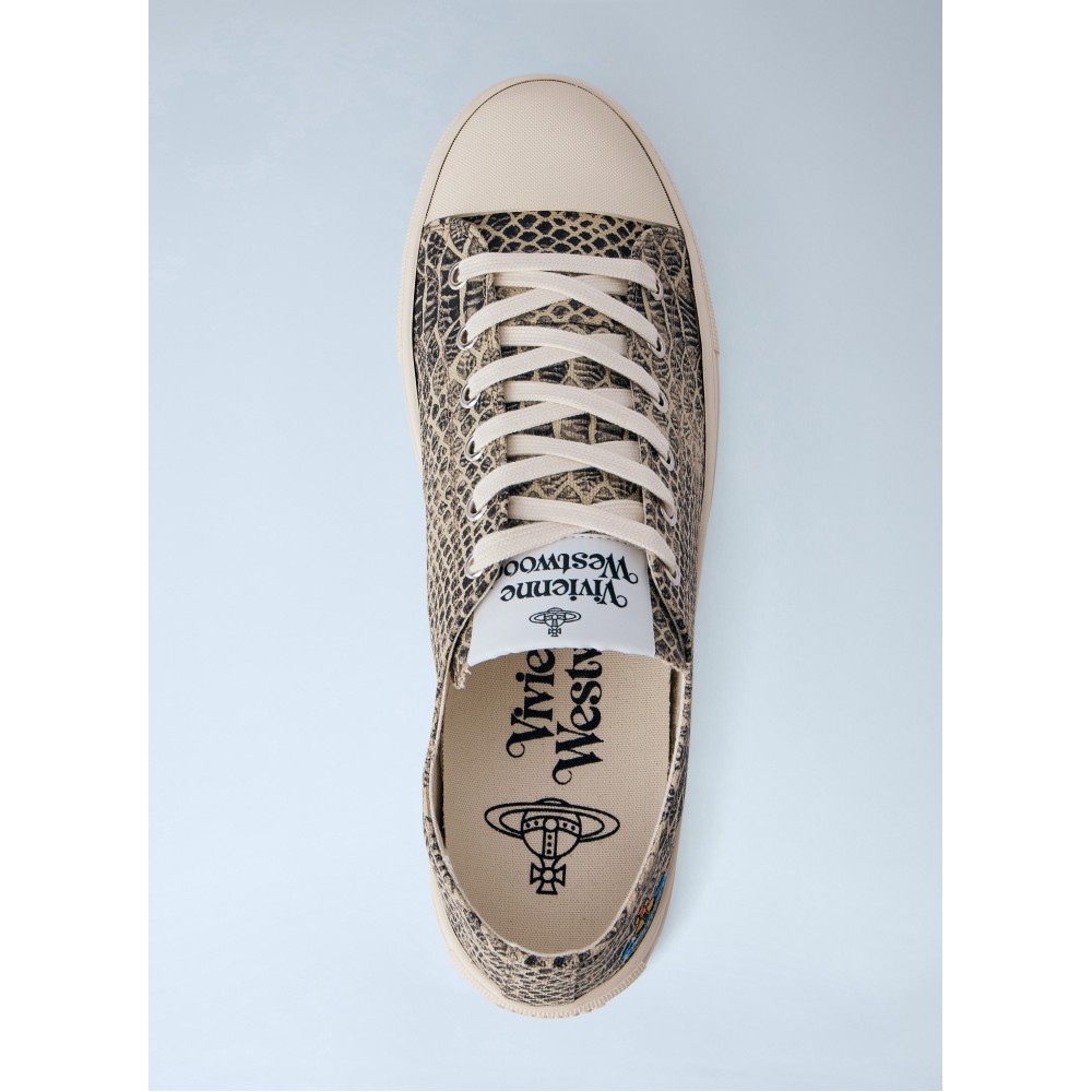 Low-top sneakers in snake-patterned canvas with rubber toe cap.