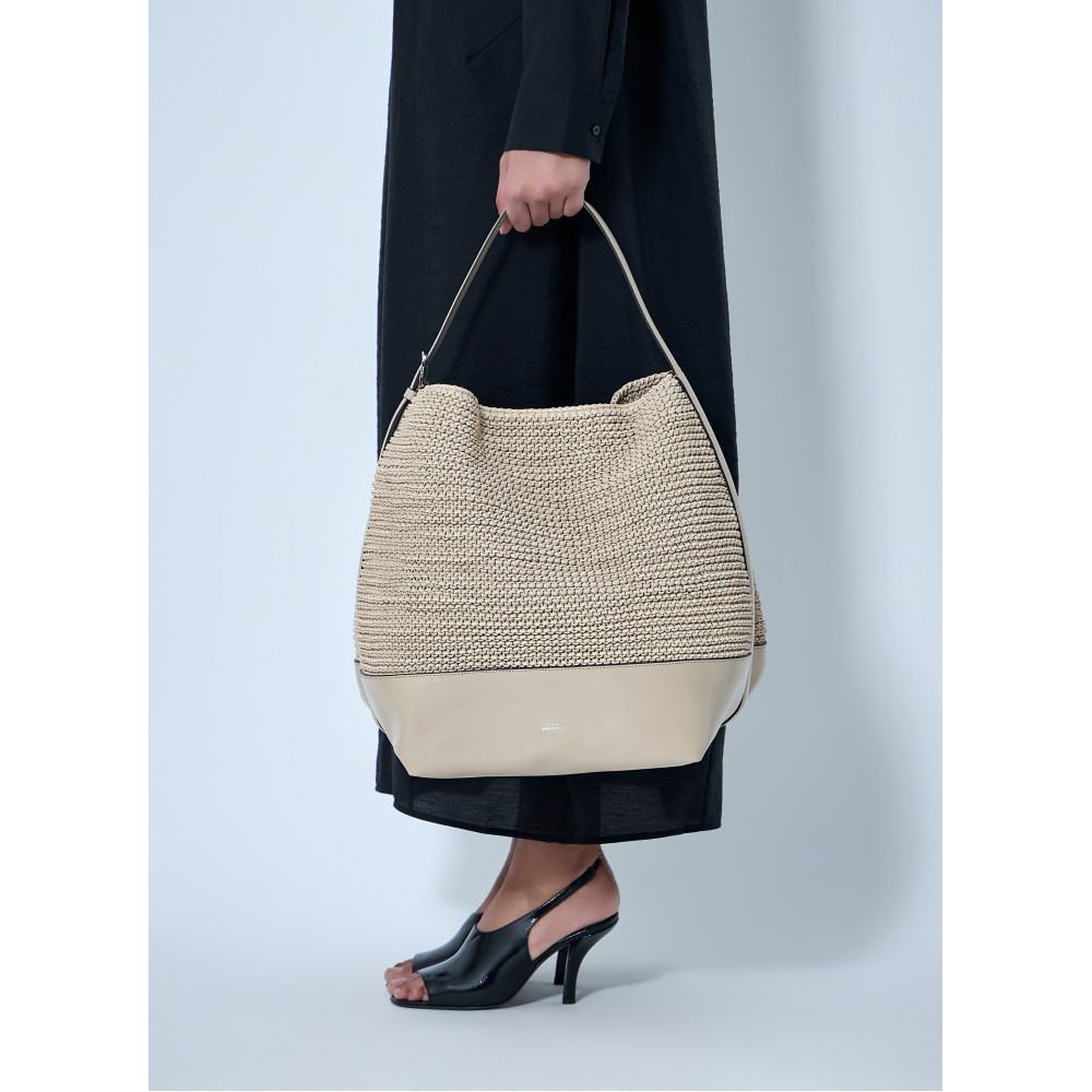 Hobo bag in woven leather with structured .