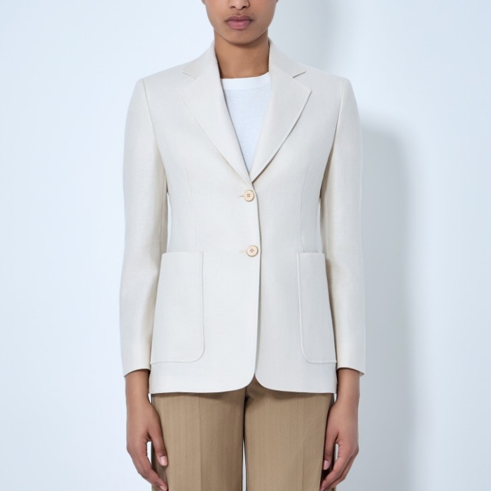 Single-breasted tailored blazer in textured fabric.