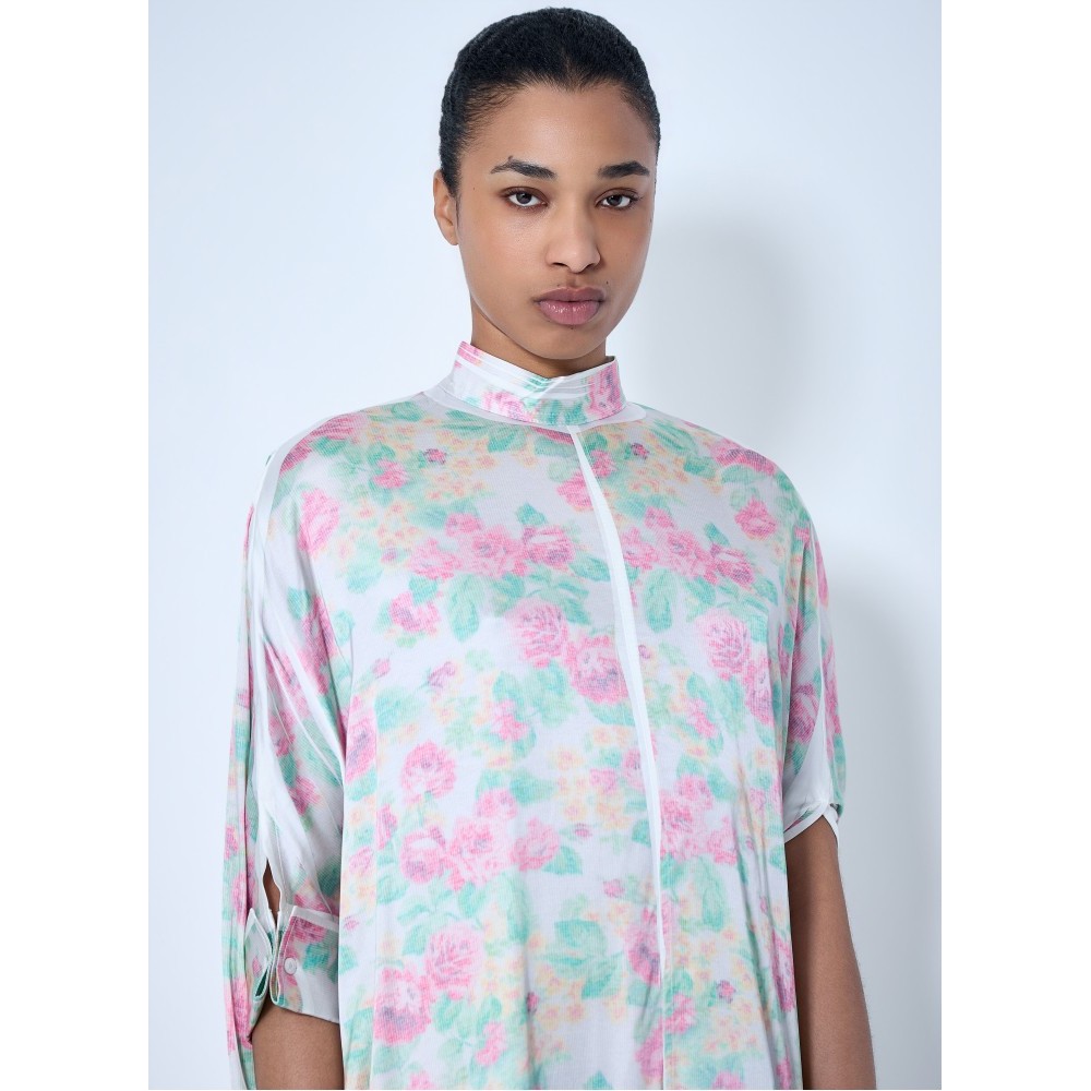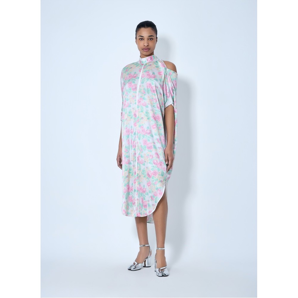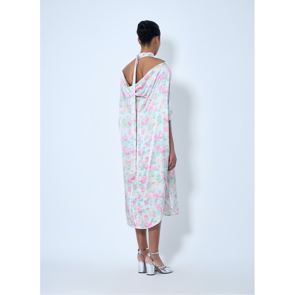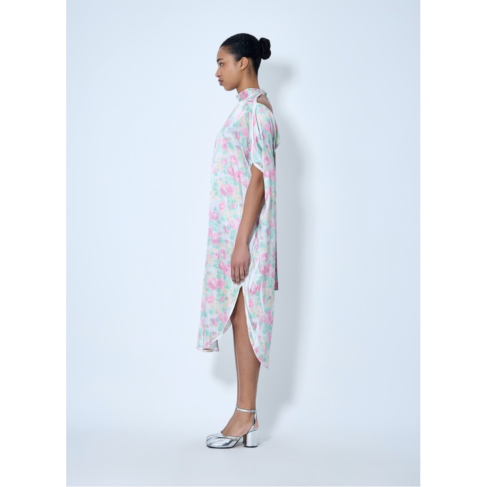 Midi dress in lightweight fabric with asymmetric hem.