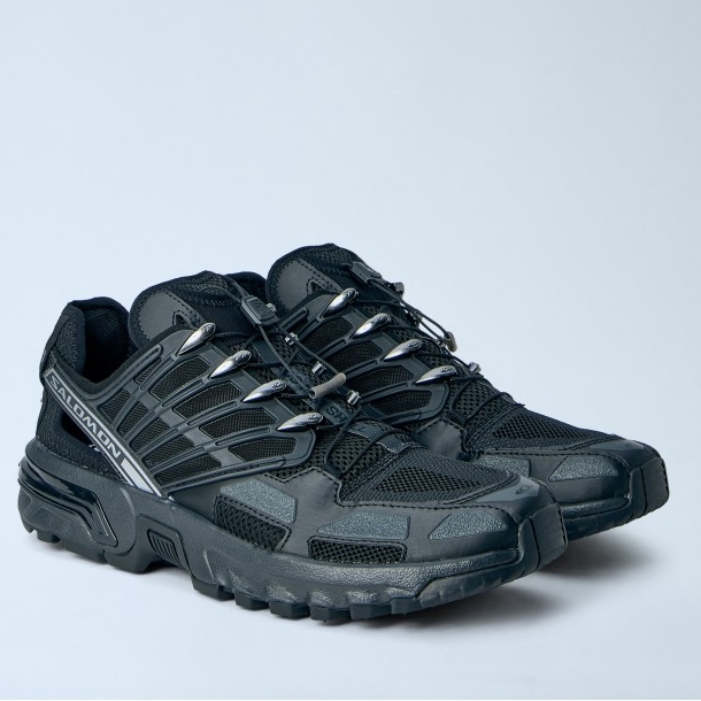 Trail running shoes with mesh and synthetic overlays.