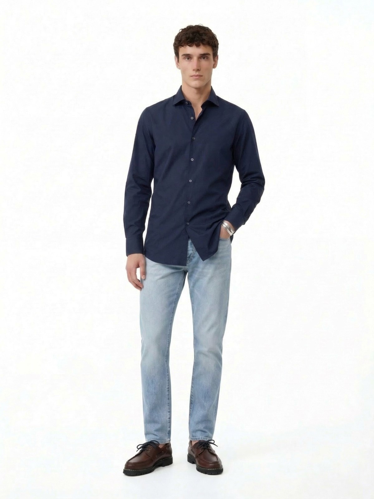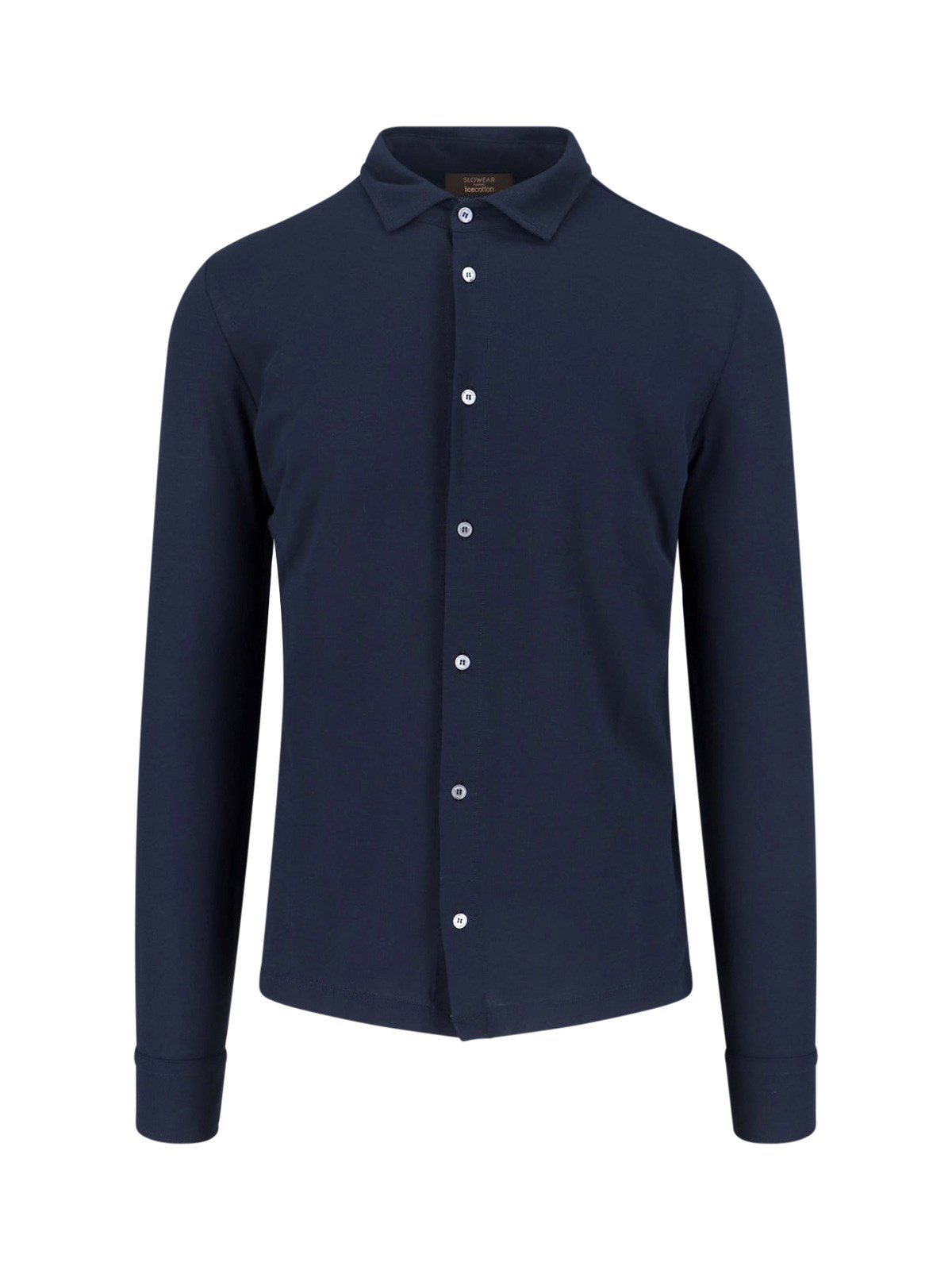 Zanone cotton shirt, blue, collar, button closure, long sleeves, cuff buttons, straight hem.