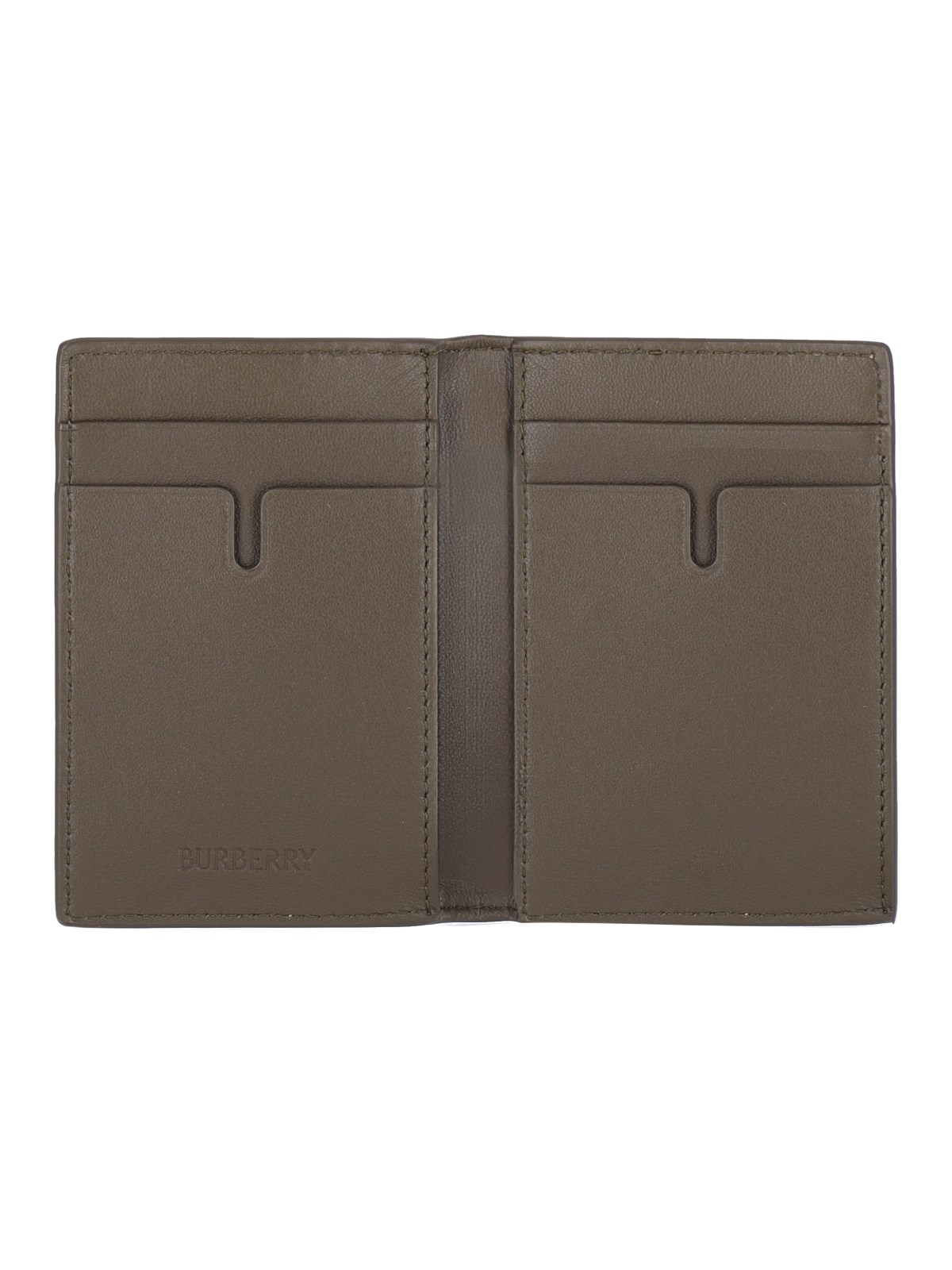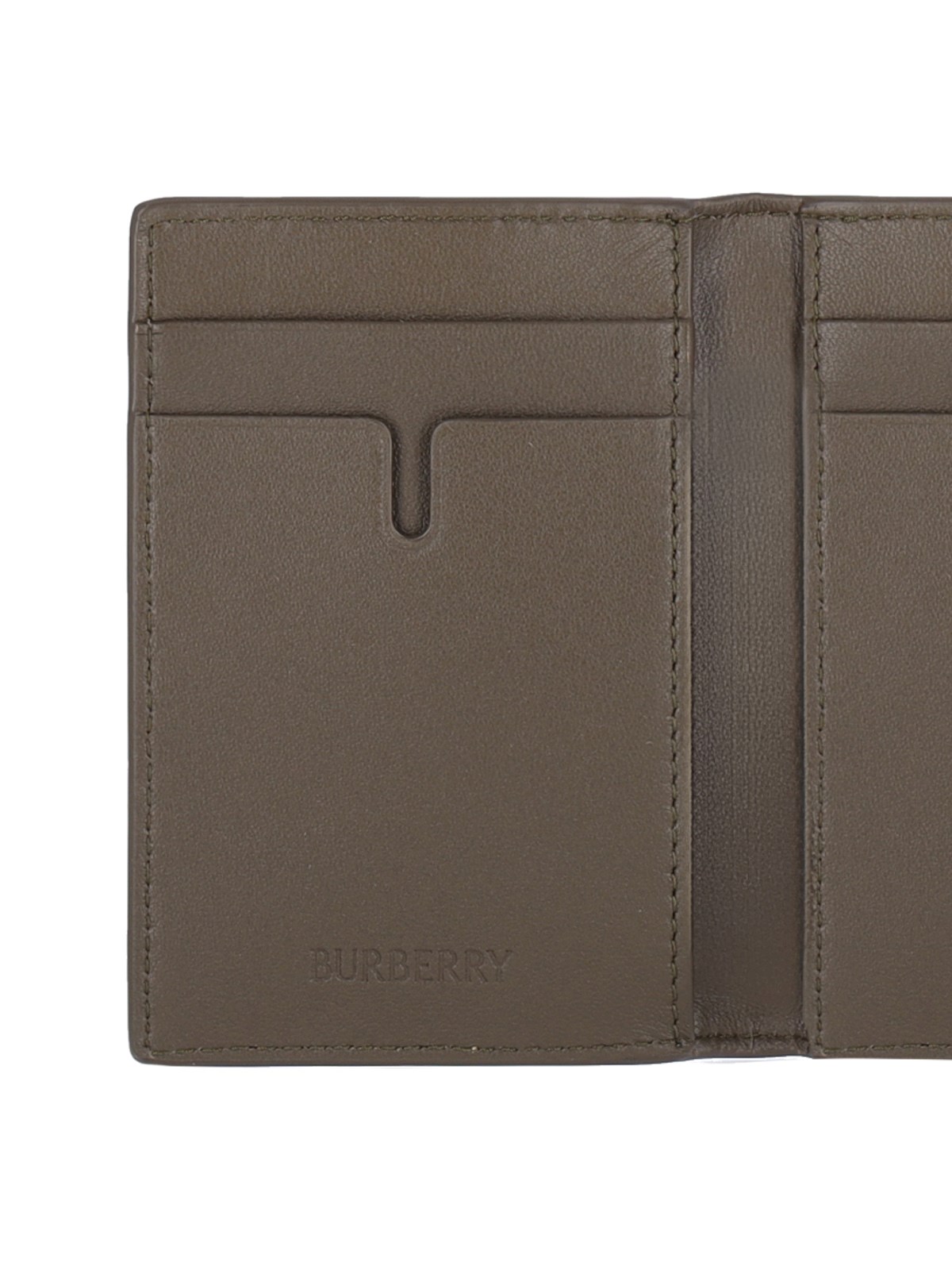 Burberry 'Check' fold card holder in beige fabric with iconic all-over print pattern, four inner card slots.