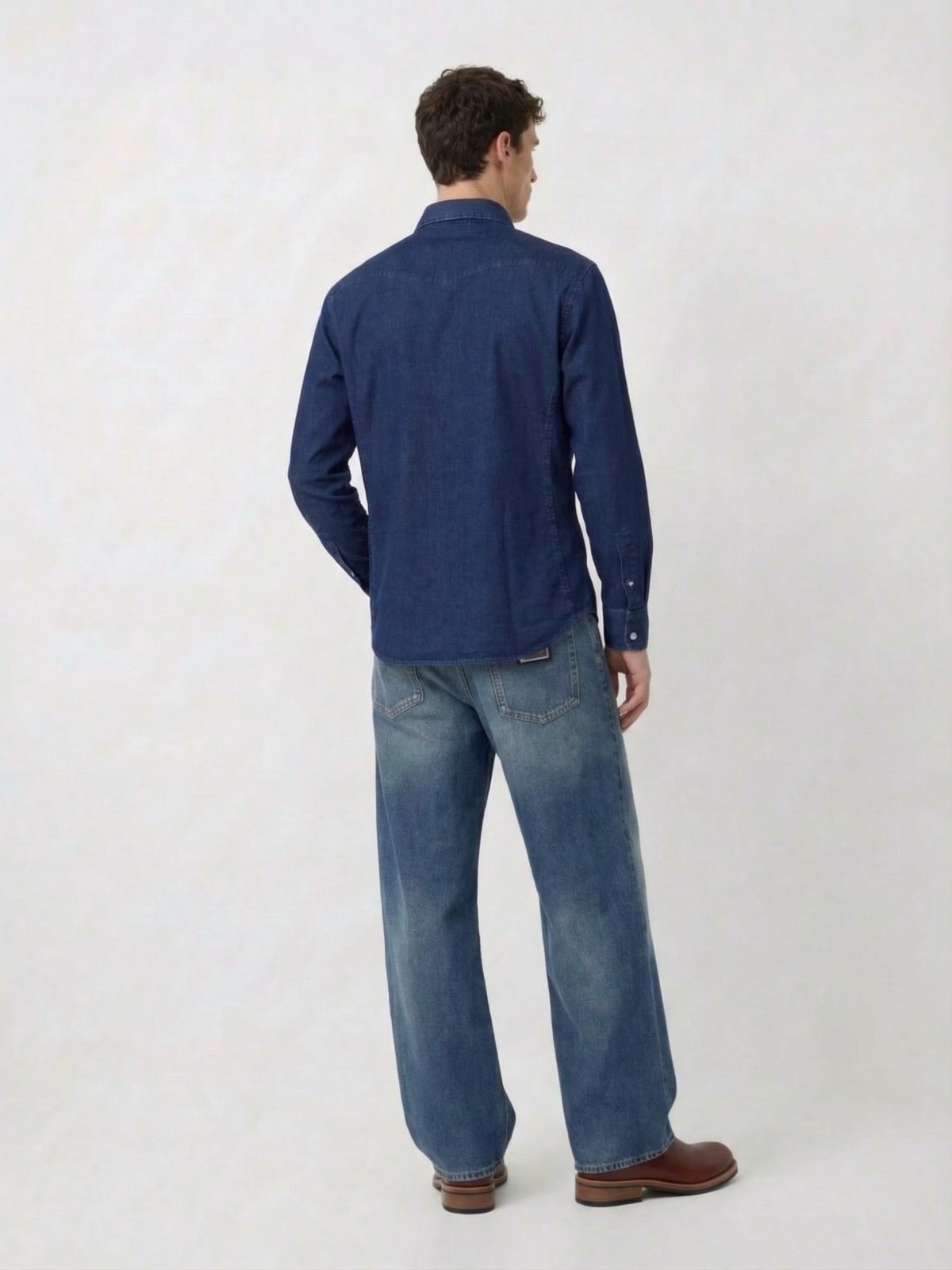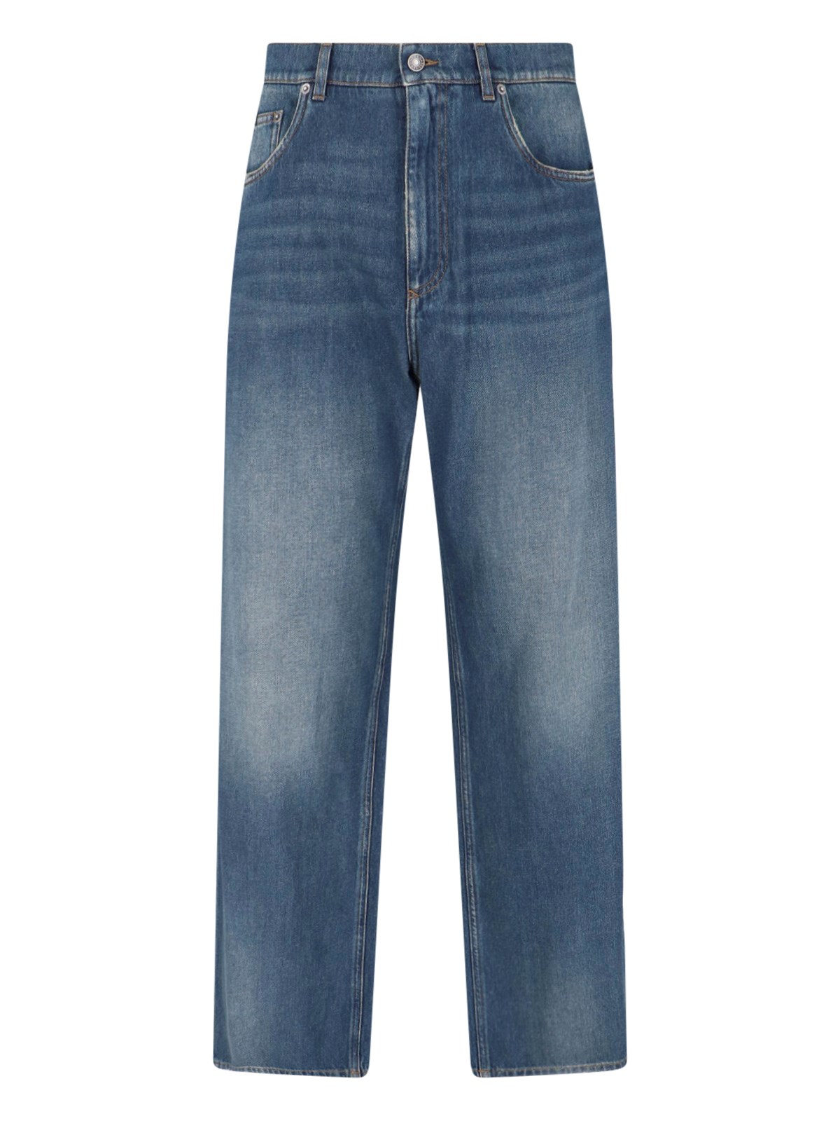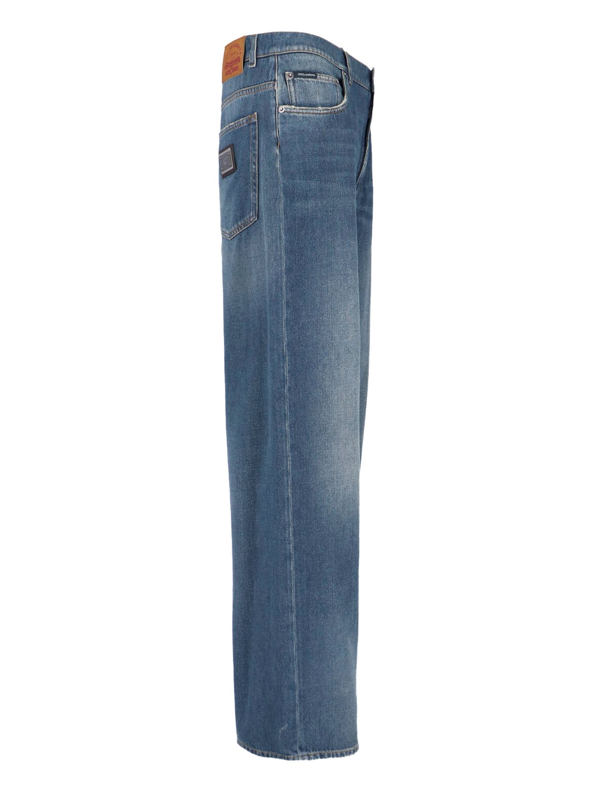 Dolce & Gabbana straight jeans in blue cotton denim, mid-rise, zip and button closure, five-pocket design, leather logo patch on the back, metal logo tag on the back, straight leg.