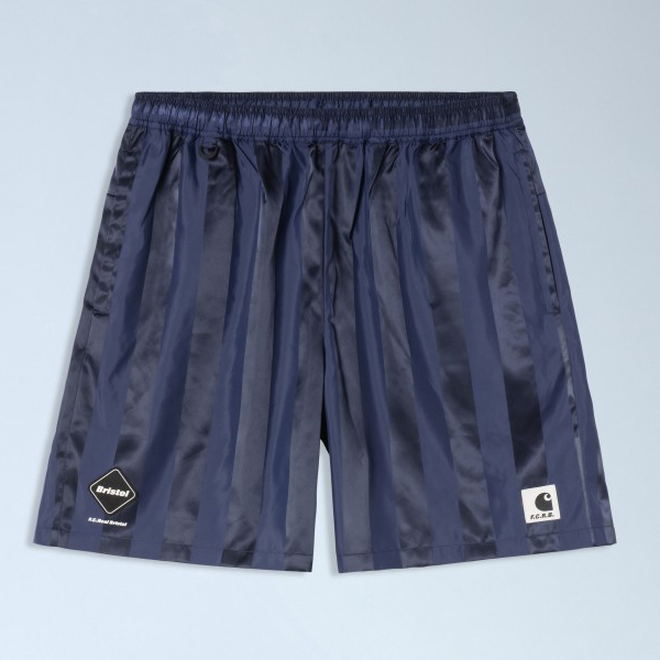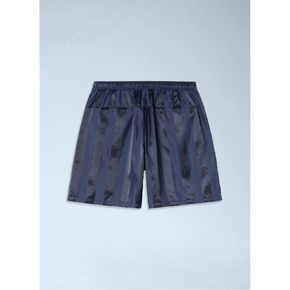 Elasticated waistband shorts in striped satin fabric.