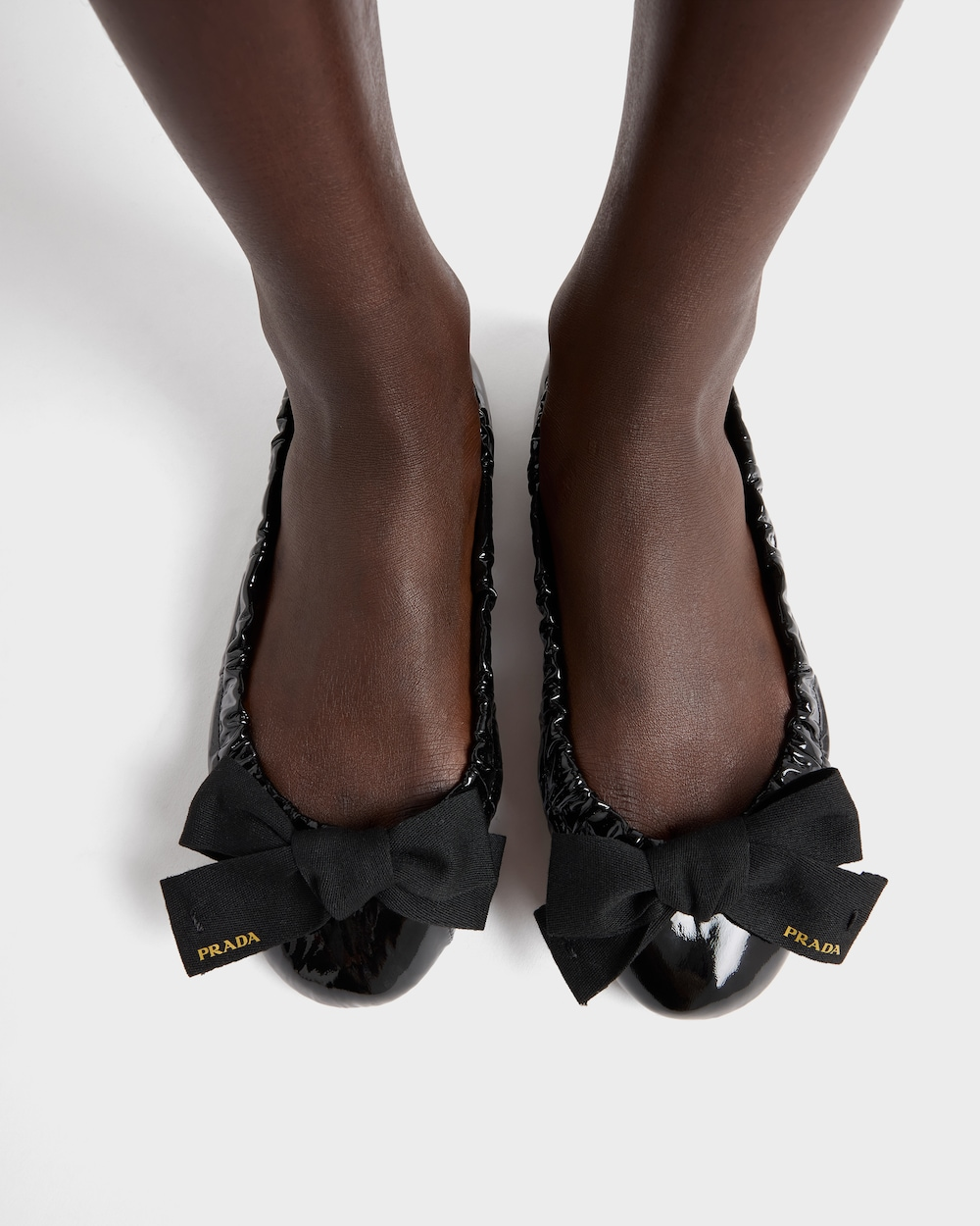 Patent leather ballet flats with bow