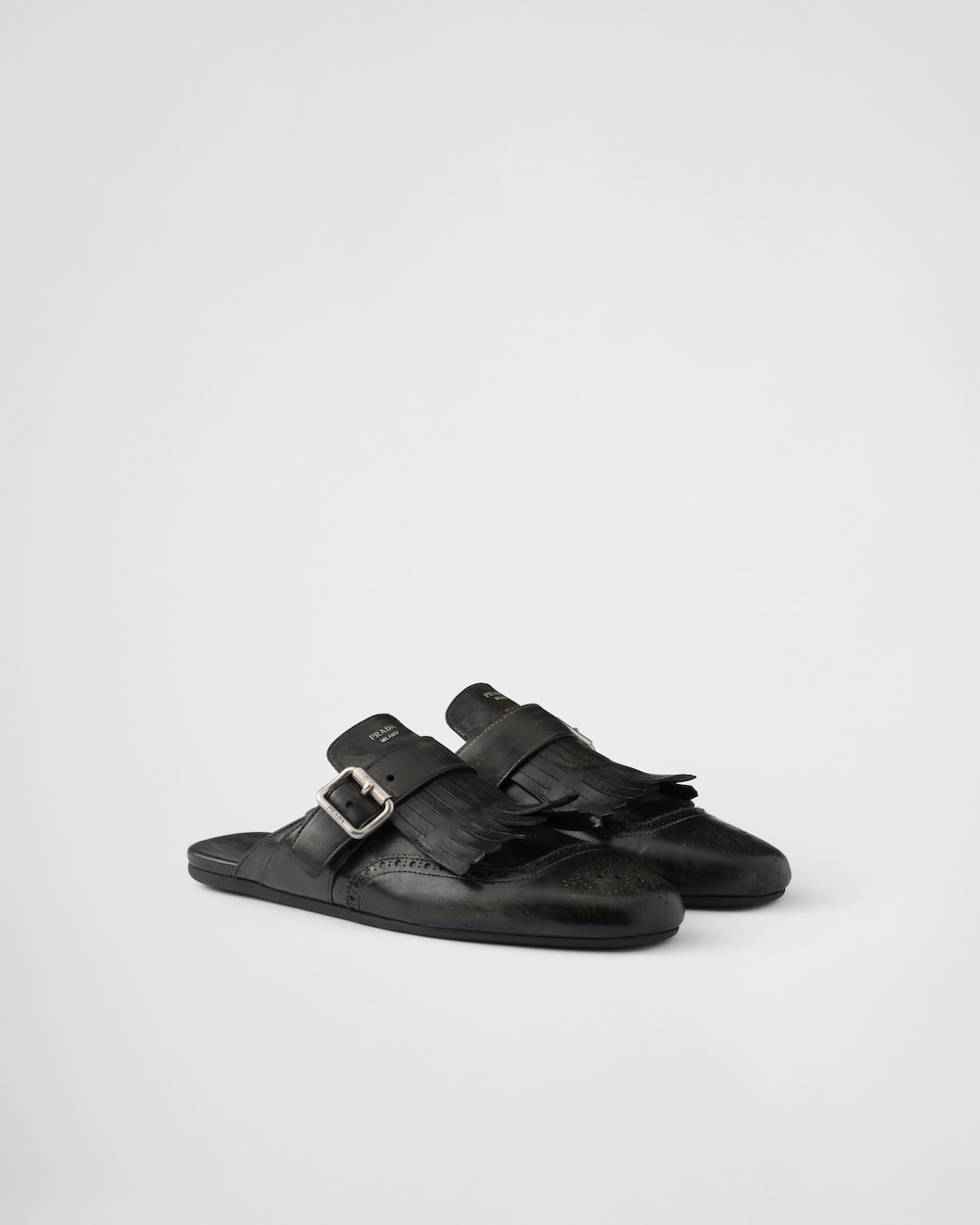 Shuffle fringed leather mules