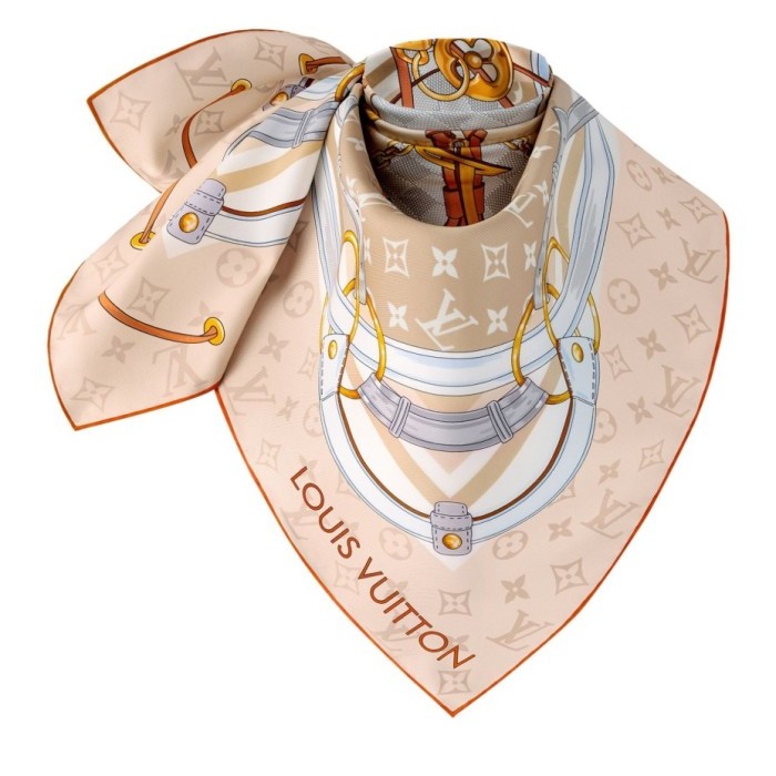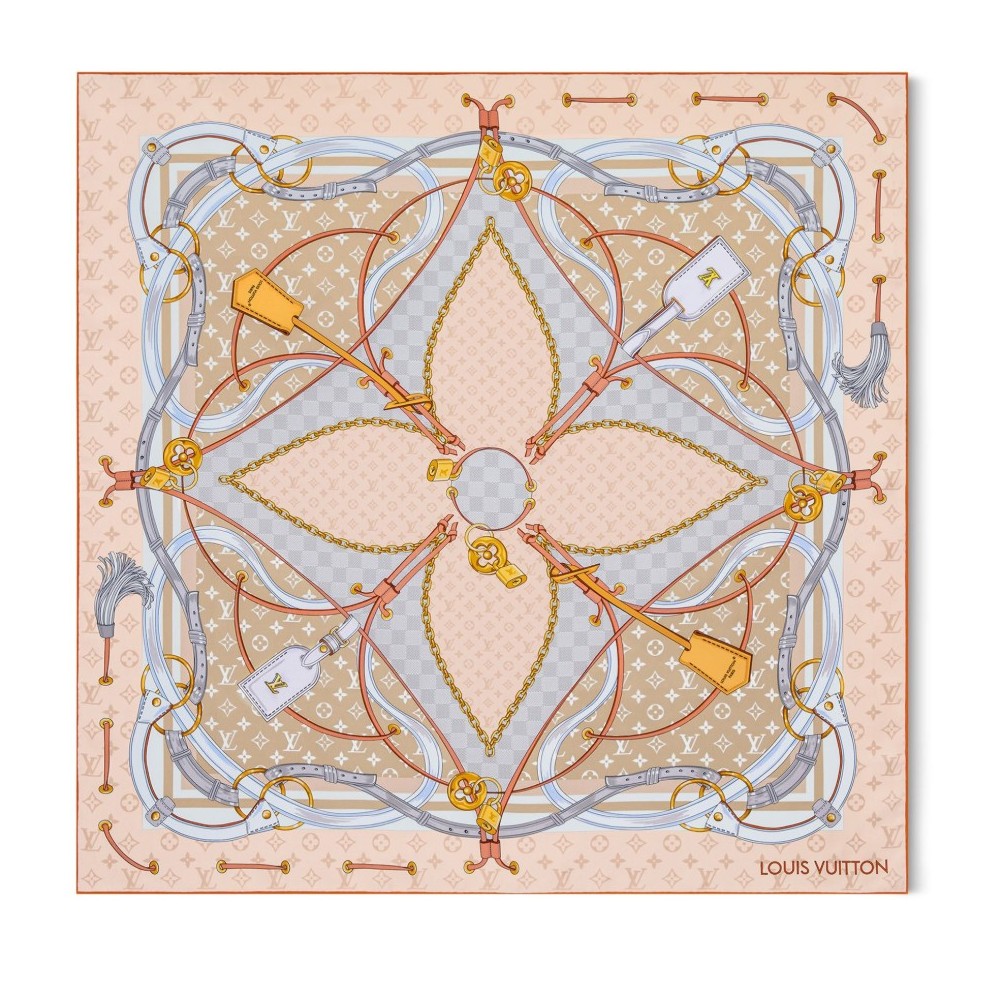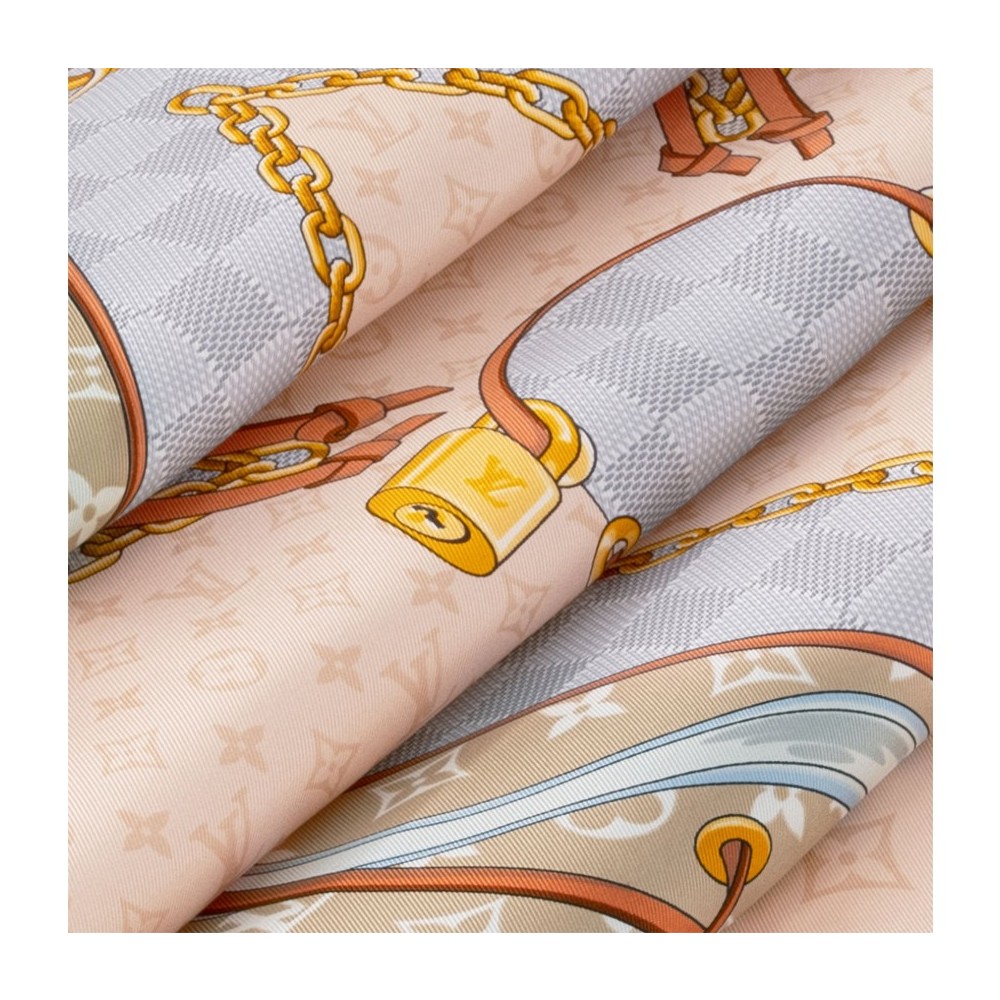 Description : 100% silk, silk-screen print, monogram Flower motif, strap, lock and luggage tag motifs, monogram pattern, damier pattern, louis Vuitton signature, hand-rolled edges.