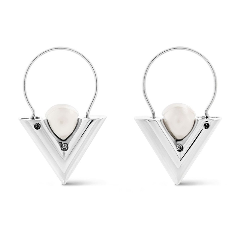 Material : Palladium-toned metal, pearls: white resin