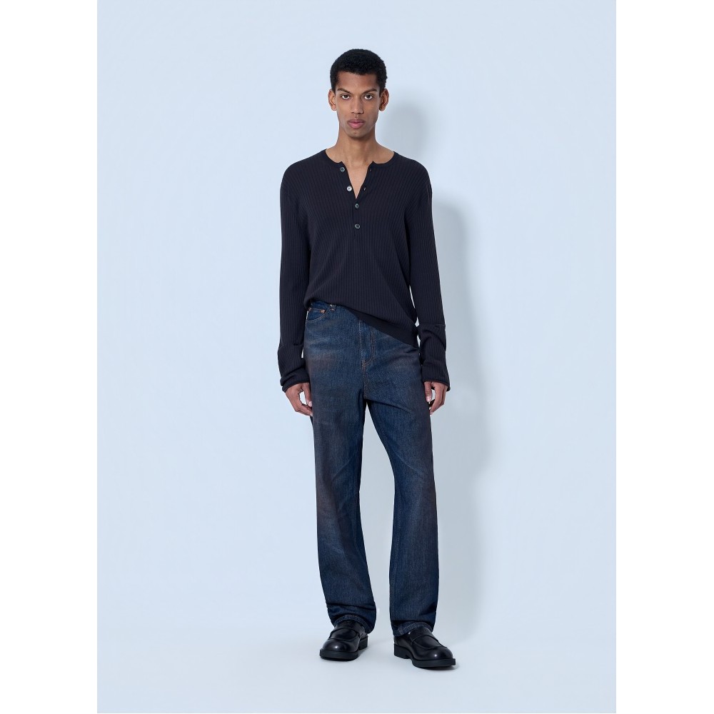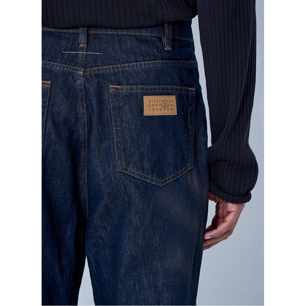 Five-pocket jeans in relaxed-leg construction with contrast stitching.