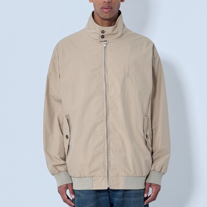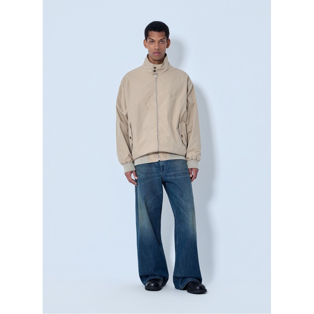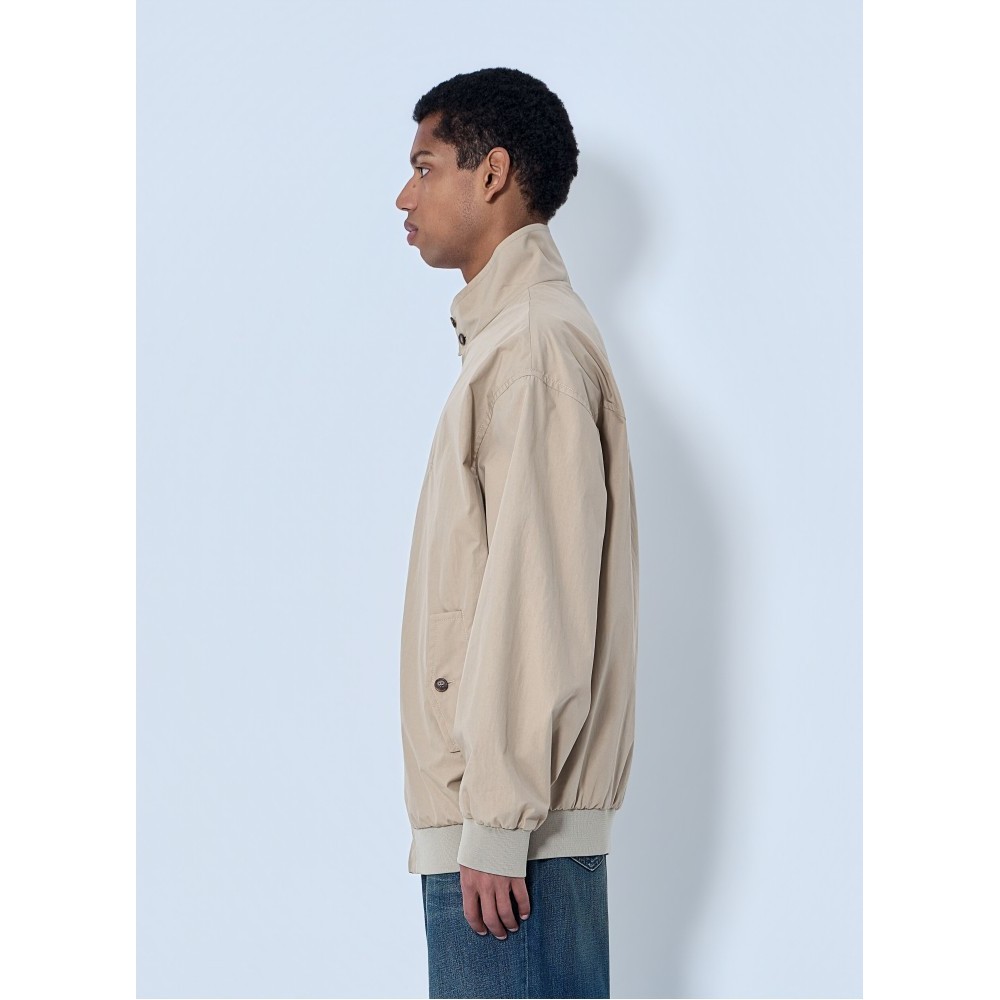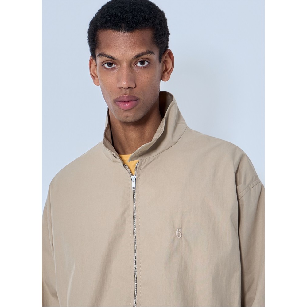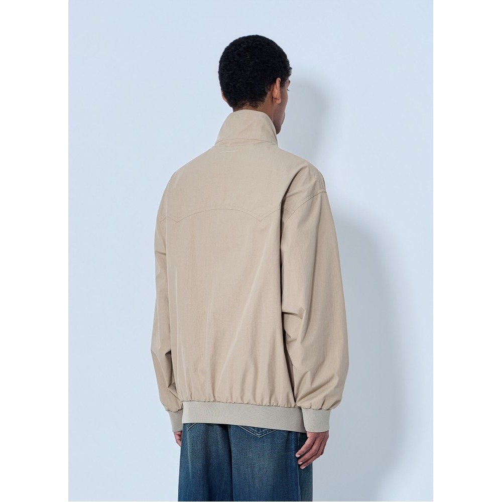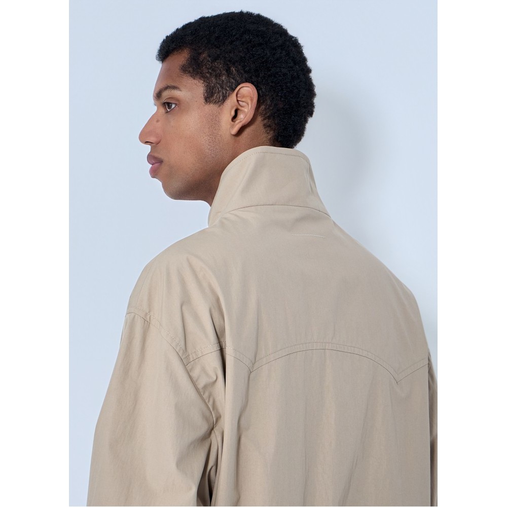 High-neck jacket with front zip fastening.