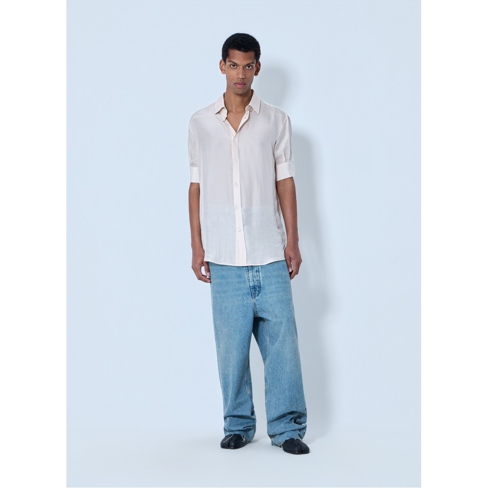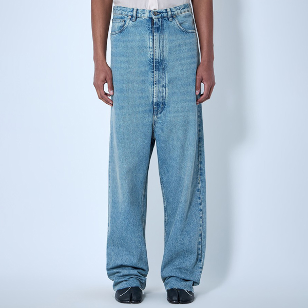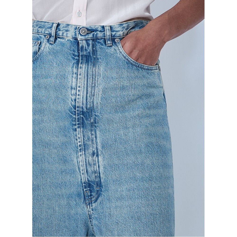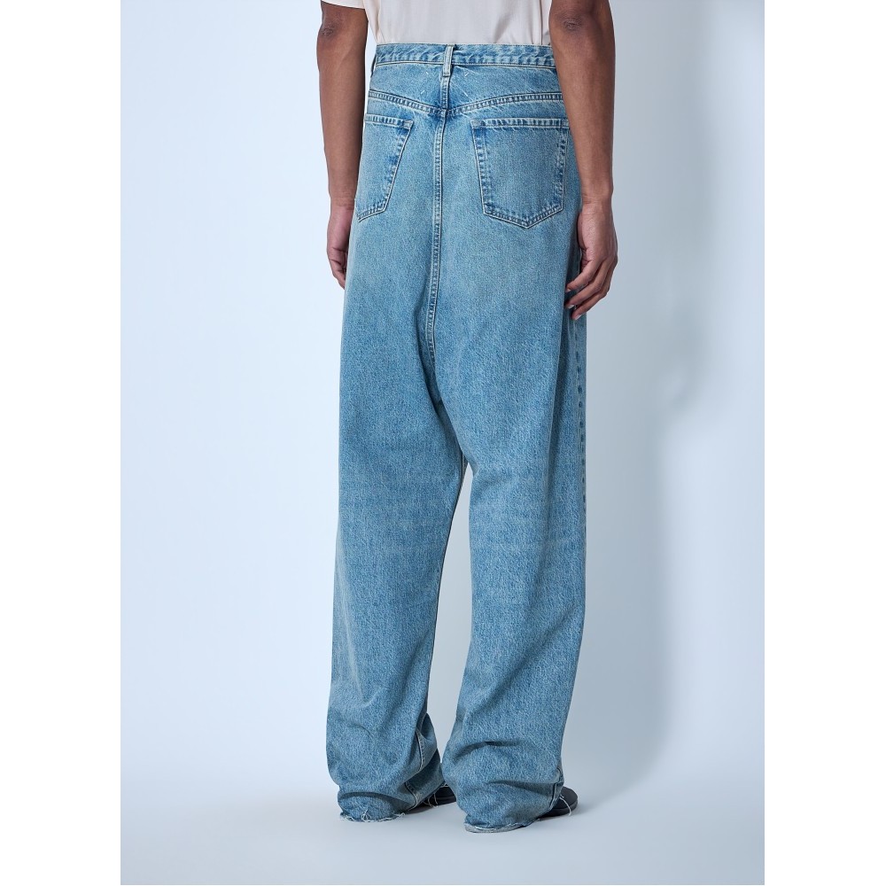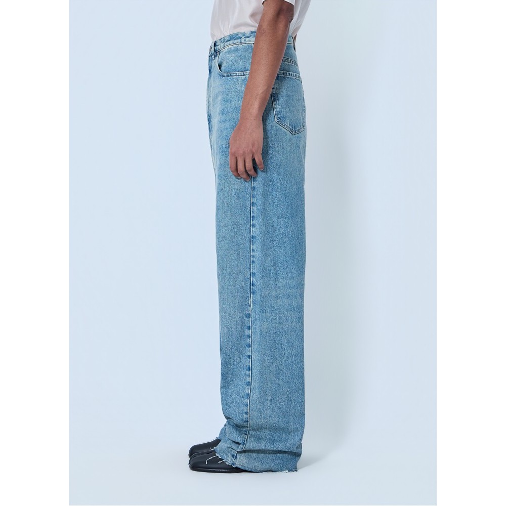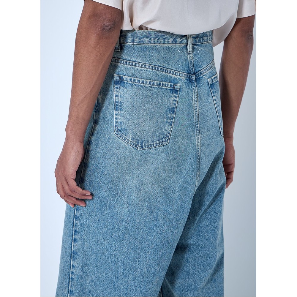 Wide-leg denim trousers in classic five-pocket construction.