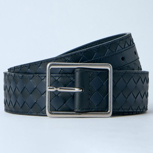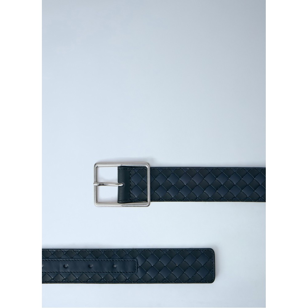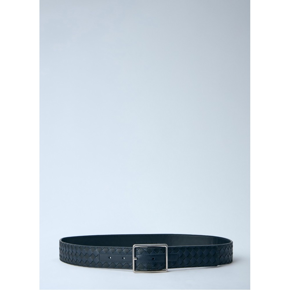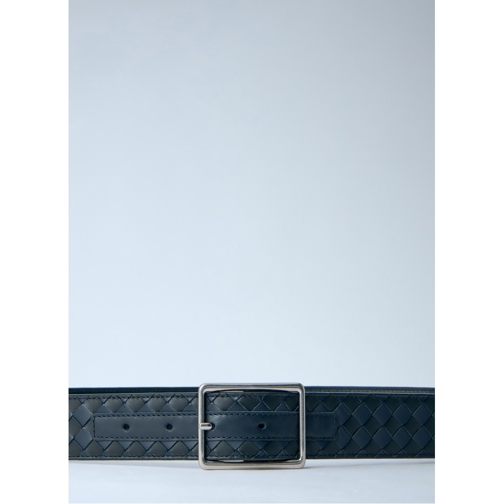 Intrecciato belt in woven leather with metal buckle.