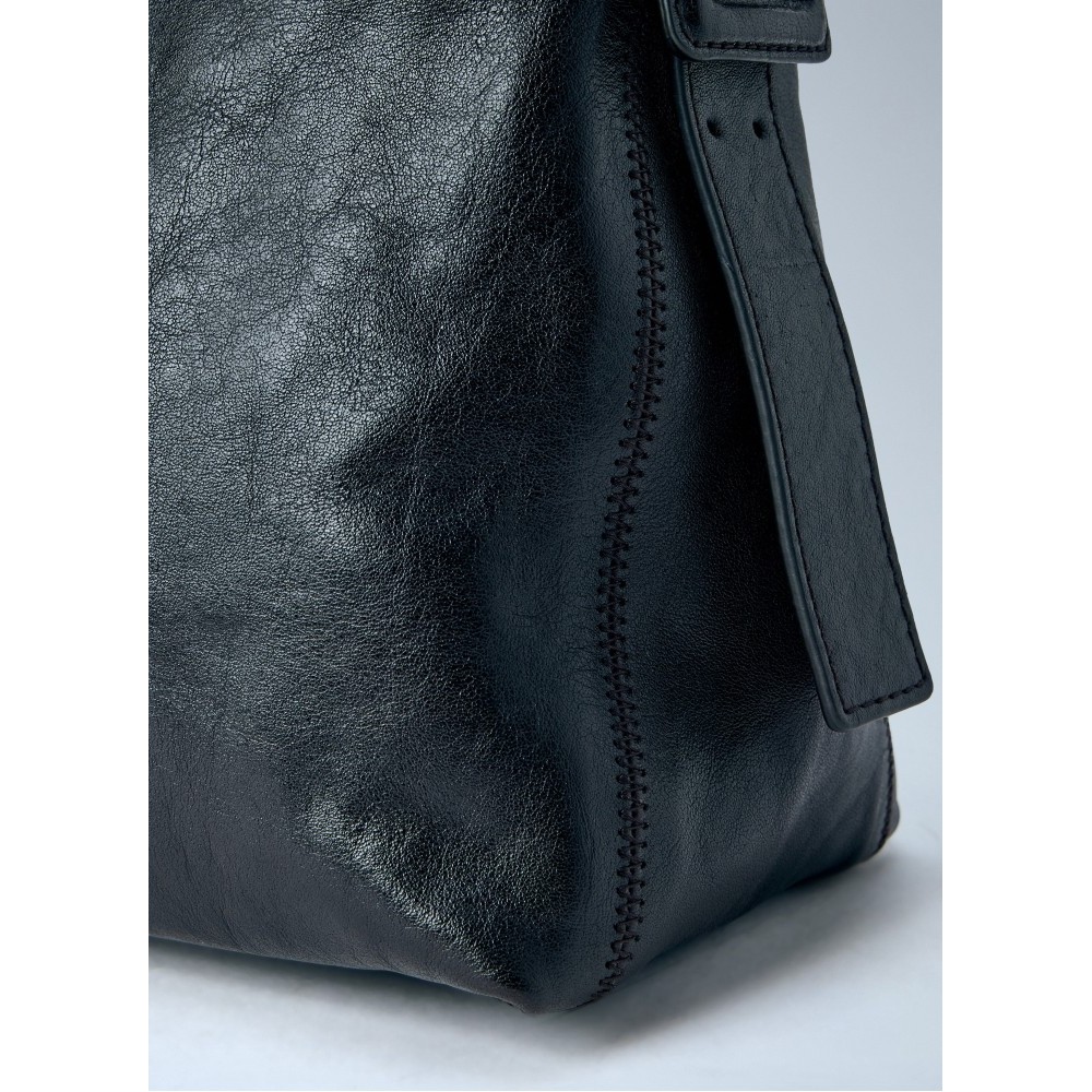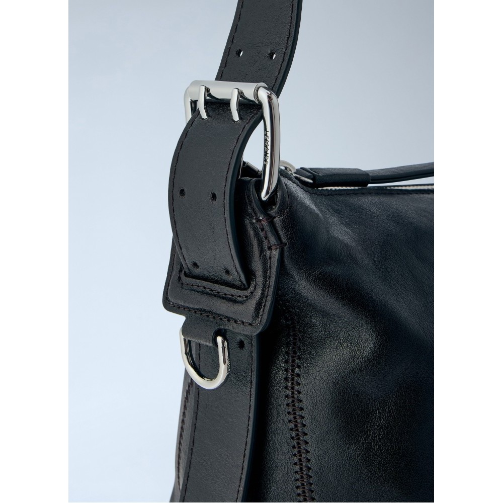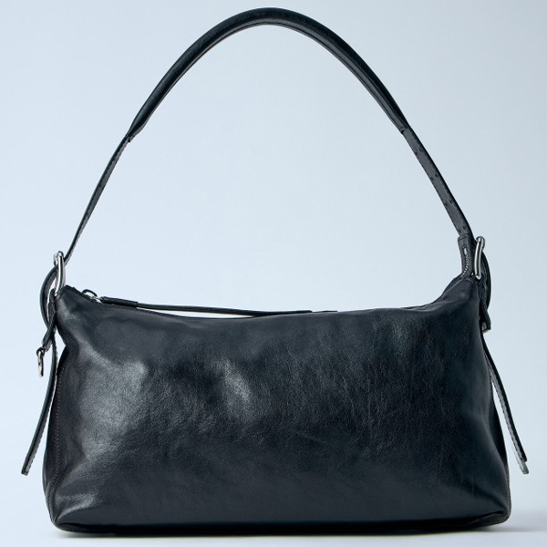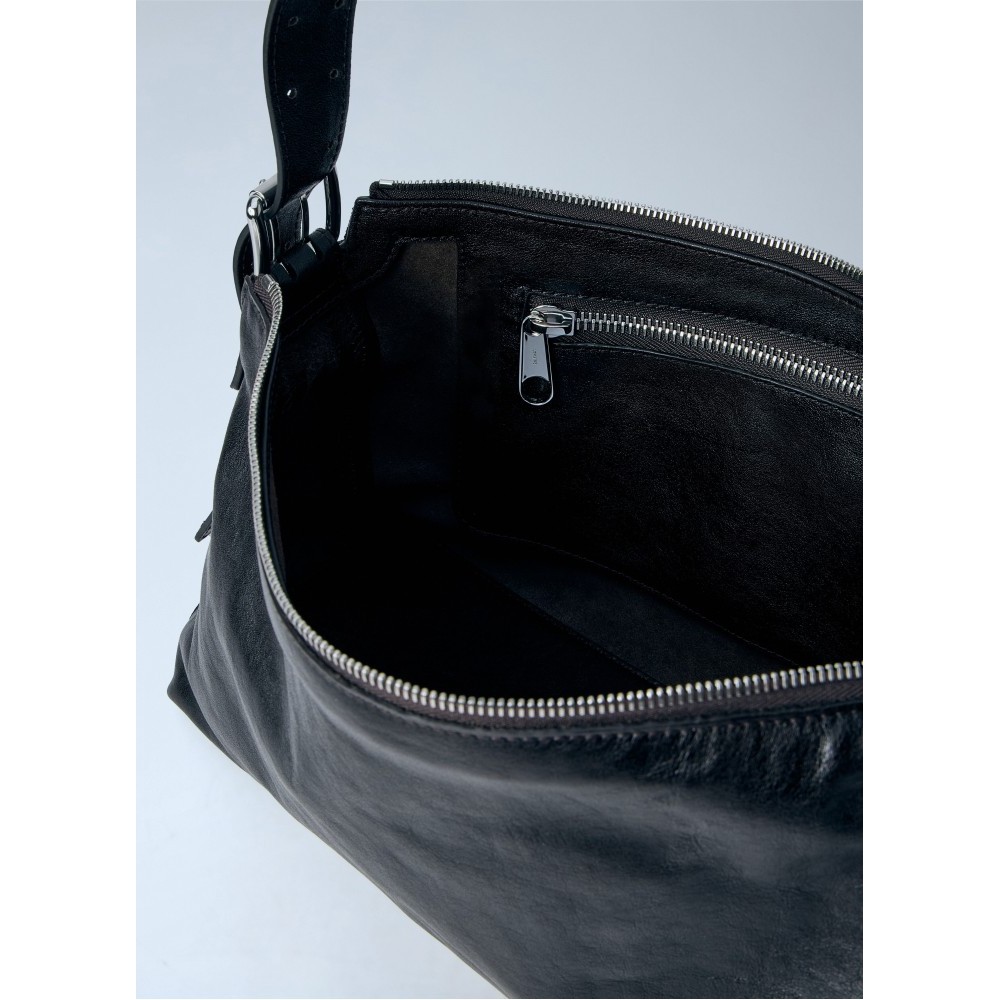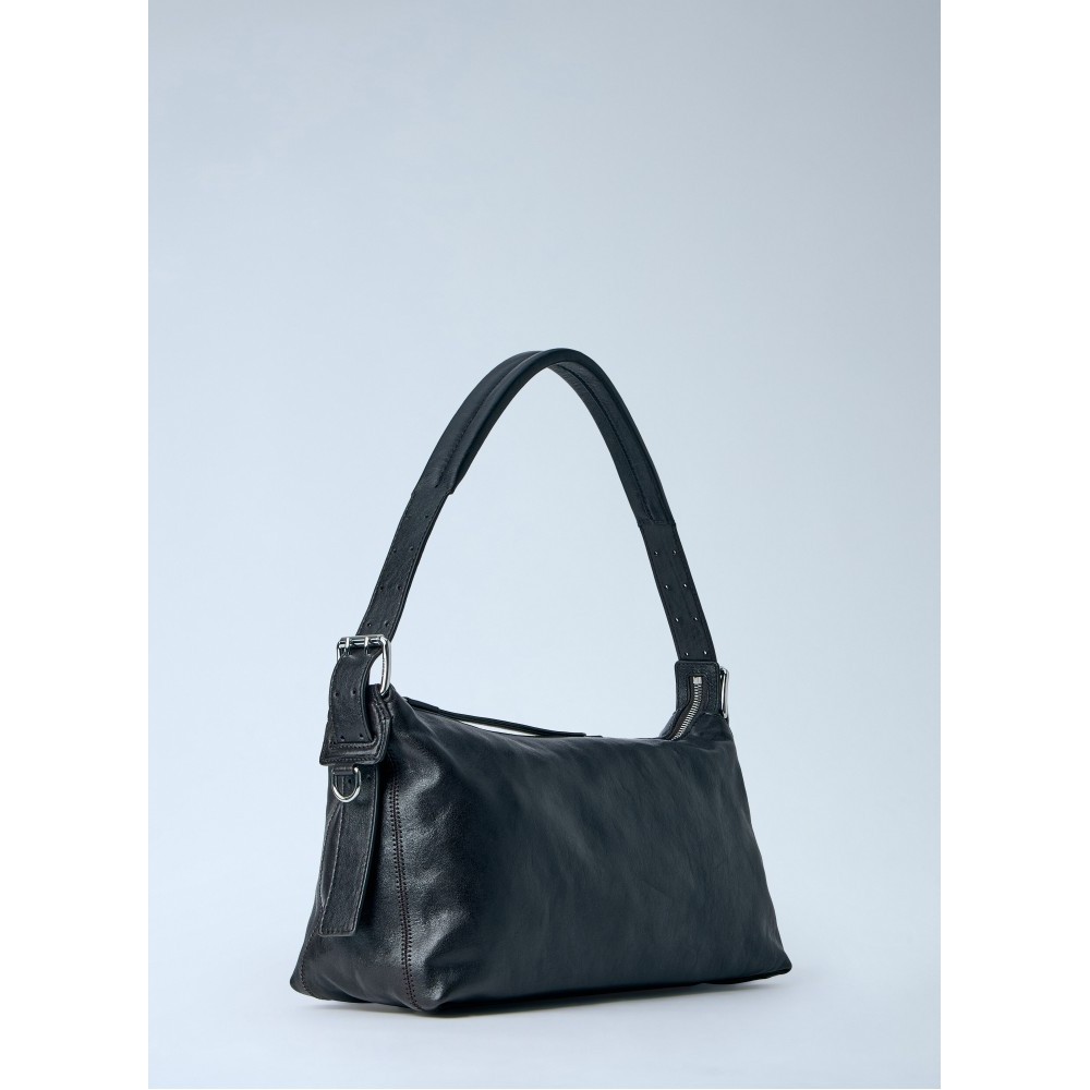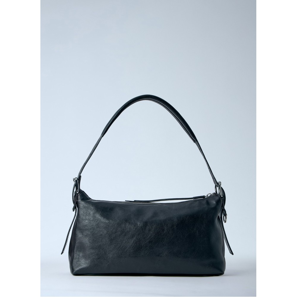 Shoulder bag in smooth leather with zip closure.