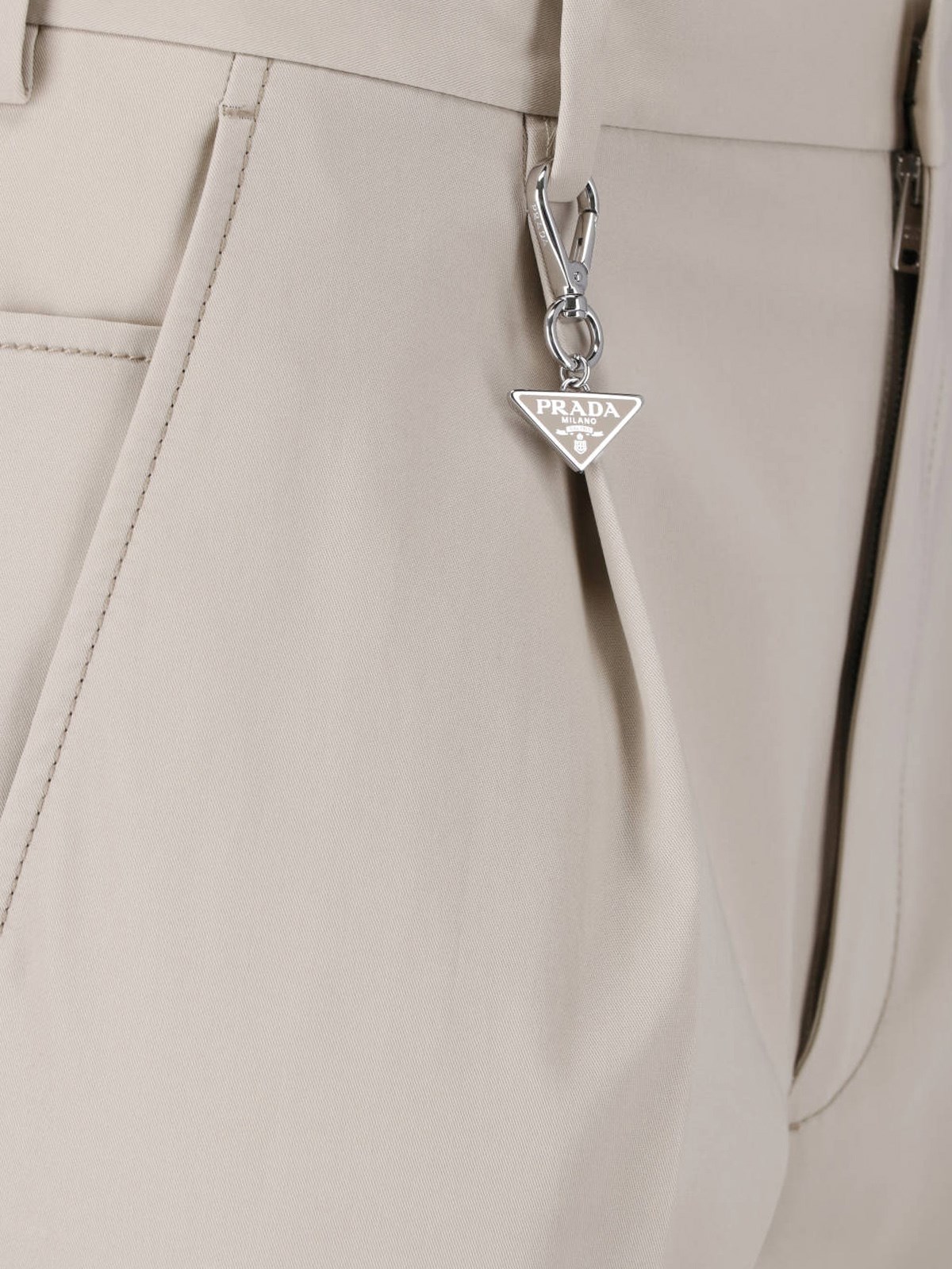 - Pants with keychain in beige cotton Prada