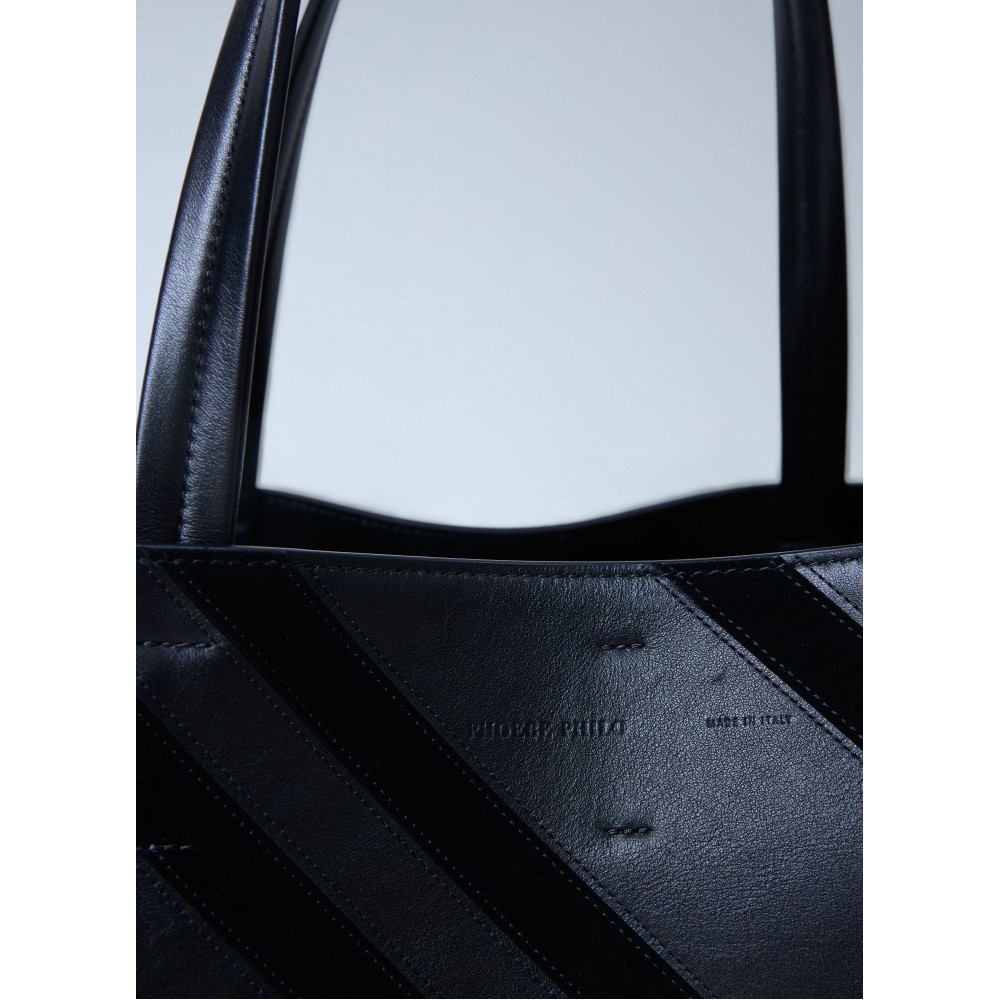 Leather in smooth-grain with suede intarsia stripes.