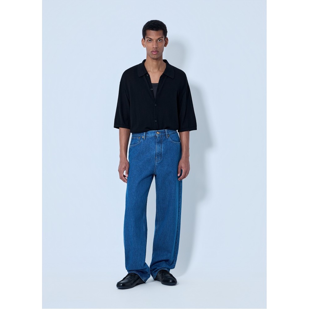 Five-pocket jeans in wide-leg construction with classic topstitching.