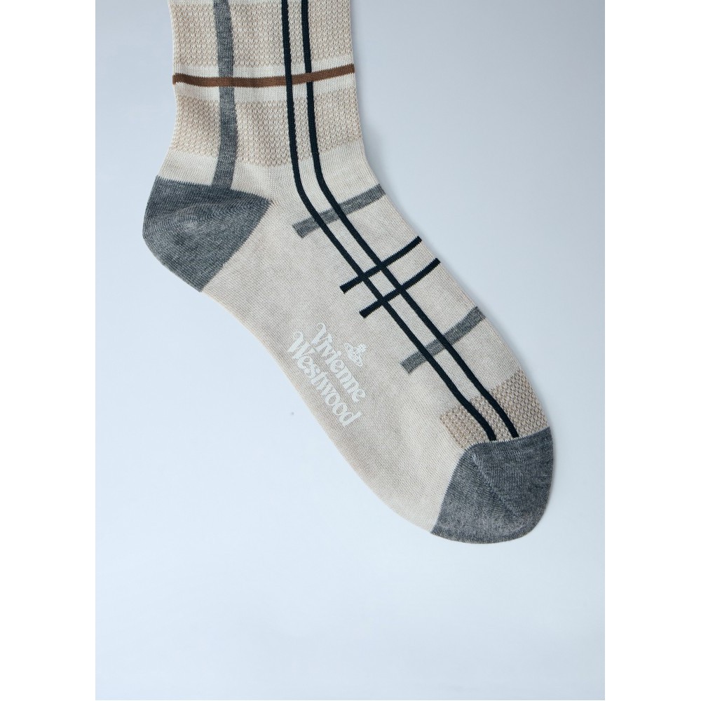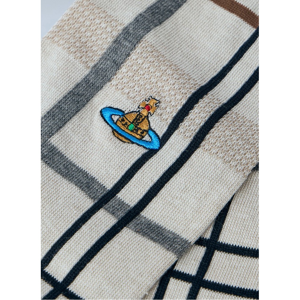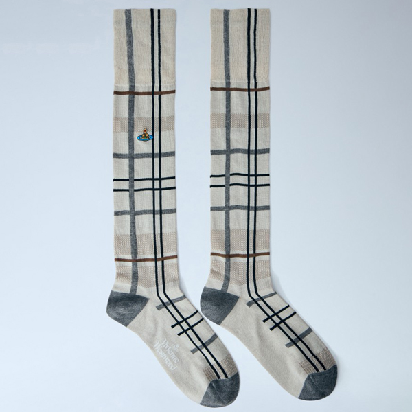Knee-high socks in checkered pattern with embroidered motif.