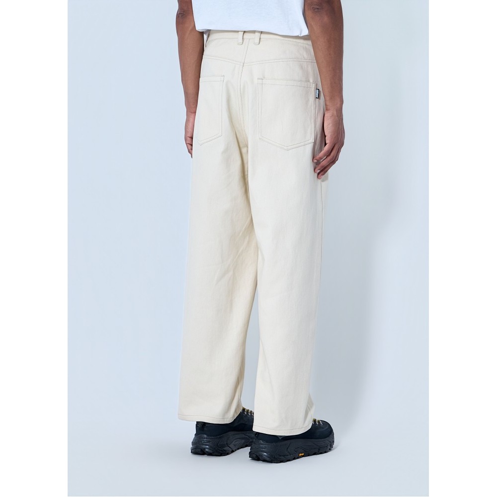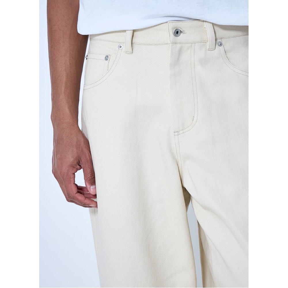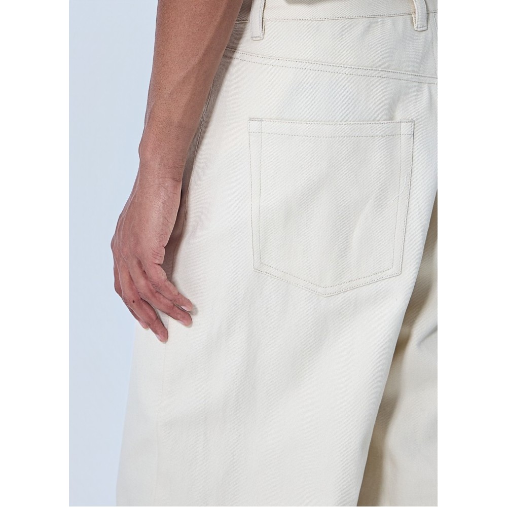 Wide-leg trousers in structured denim fabric.