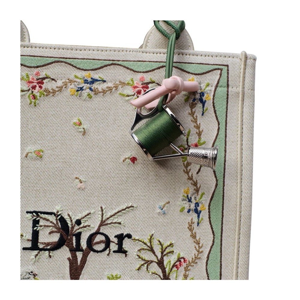 Description : Engraved Dior signature, bow detail, thimble and bobbin details, green thread.