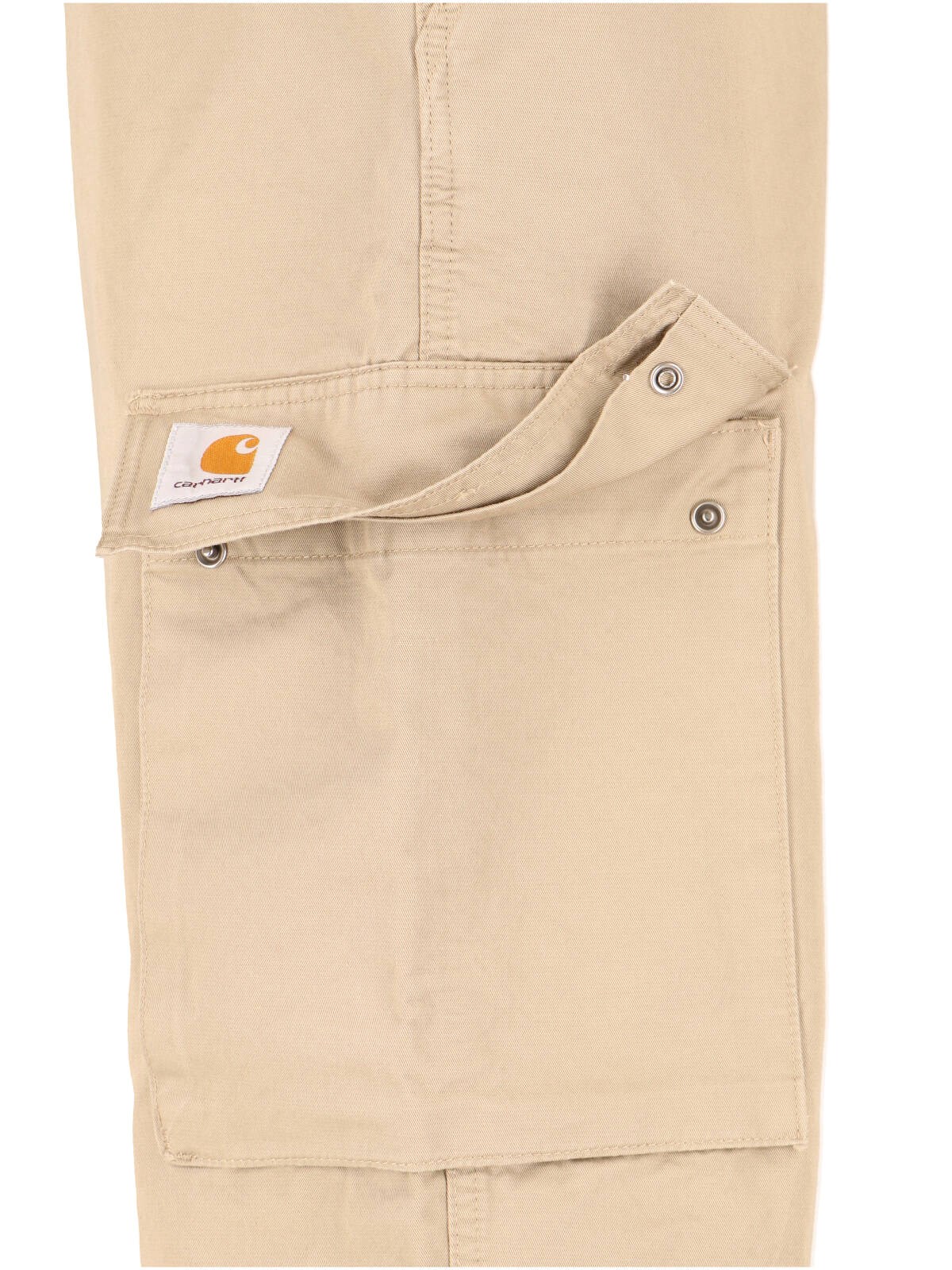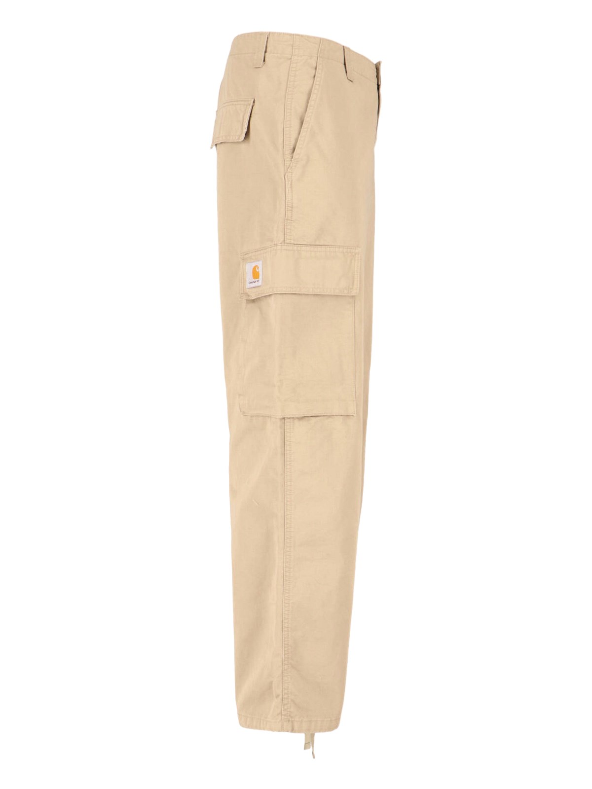 Cargo pants 'Kade' Carhartt WIP in beige cotton, mid-rise, button and zip closure, belt loops, two side cargo pockets, two back pockets, leg drawstring, wide leg.
