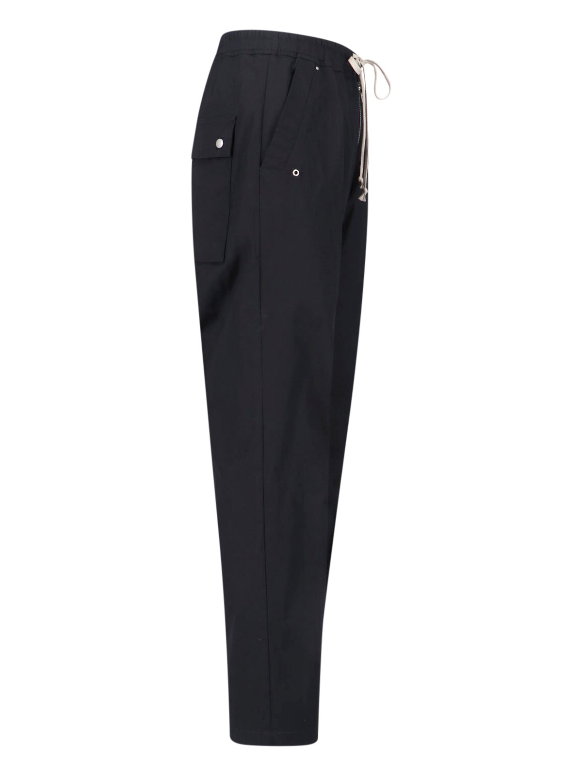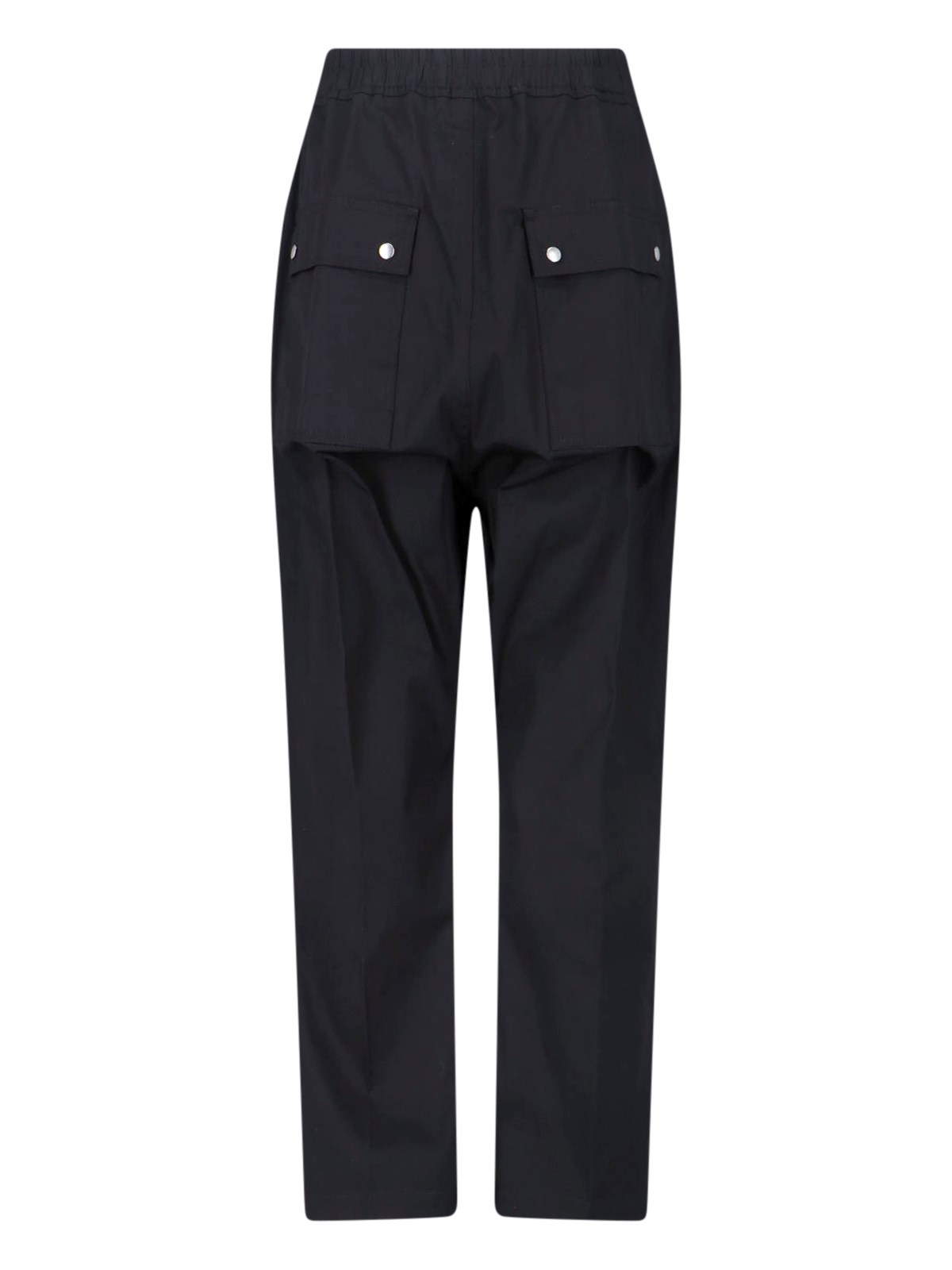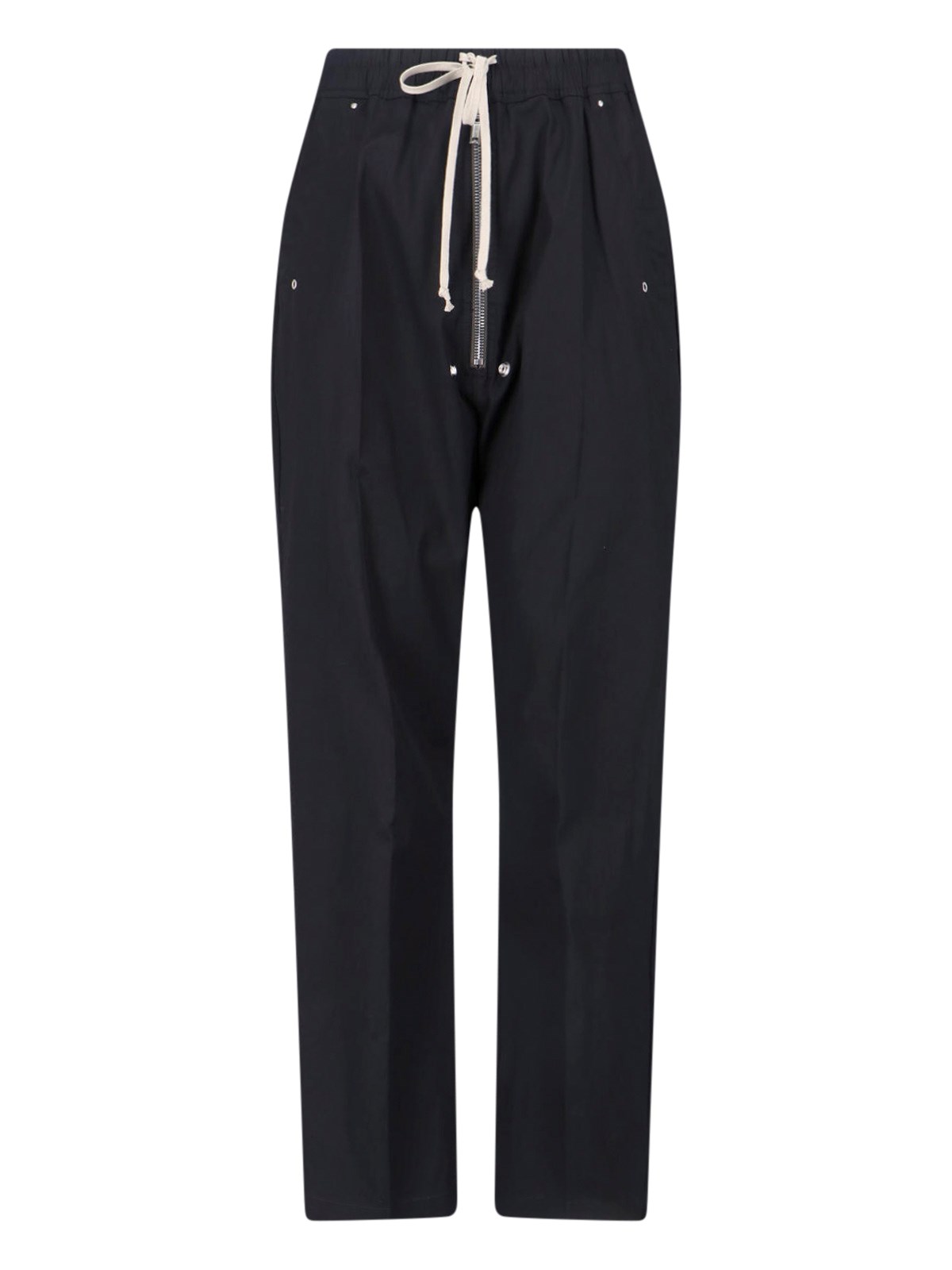 Straight Pants 'Bela' Ric Owens in black stretch cotton, high waist, drawstring waist, zip closure, two side pockets, two back flap pockets, straight leg.