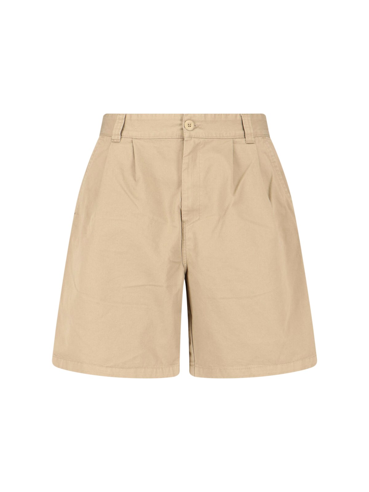 Shorts 'Marv' Carhartt WIP in beige cotton, mid-rise, belt loops, zip and button closure, two side pockets, two back pockets, logo patch on the back, straight leg.