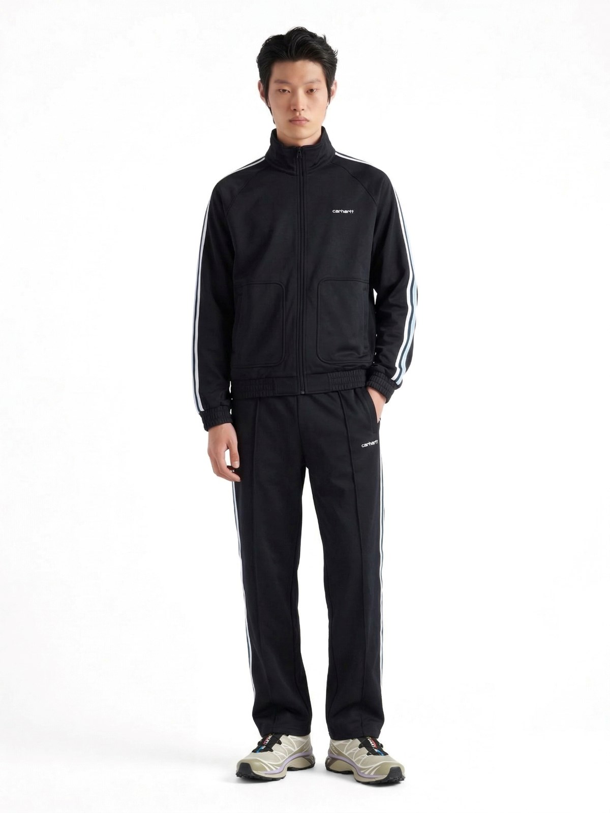 Sports Pants 'Bolsar' Carhartt WIP in black fabric, elasticated waist, two side pockets, one back pocket, front logo, wide leg.