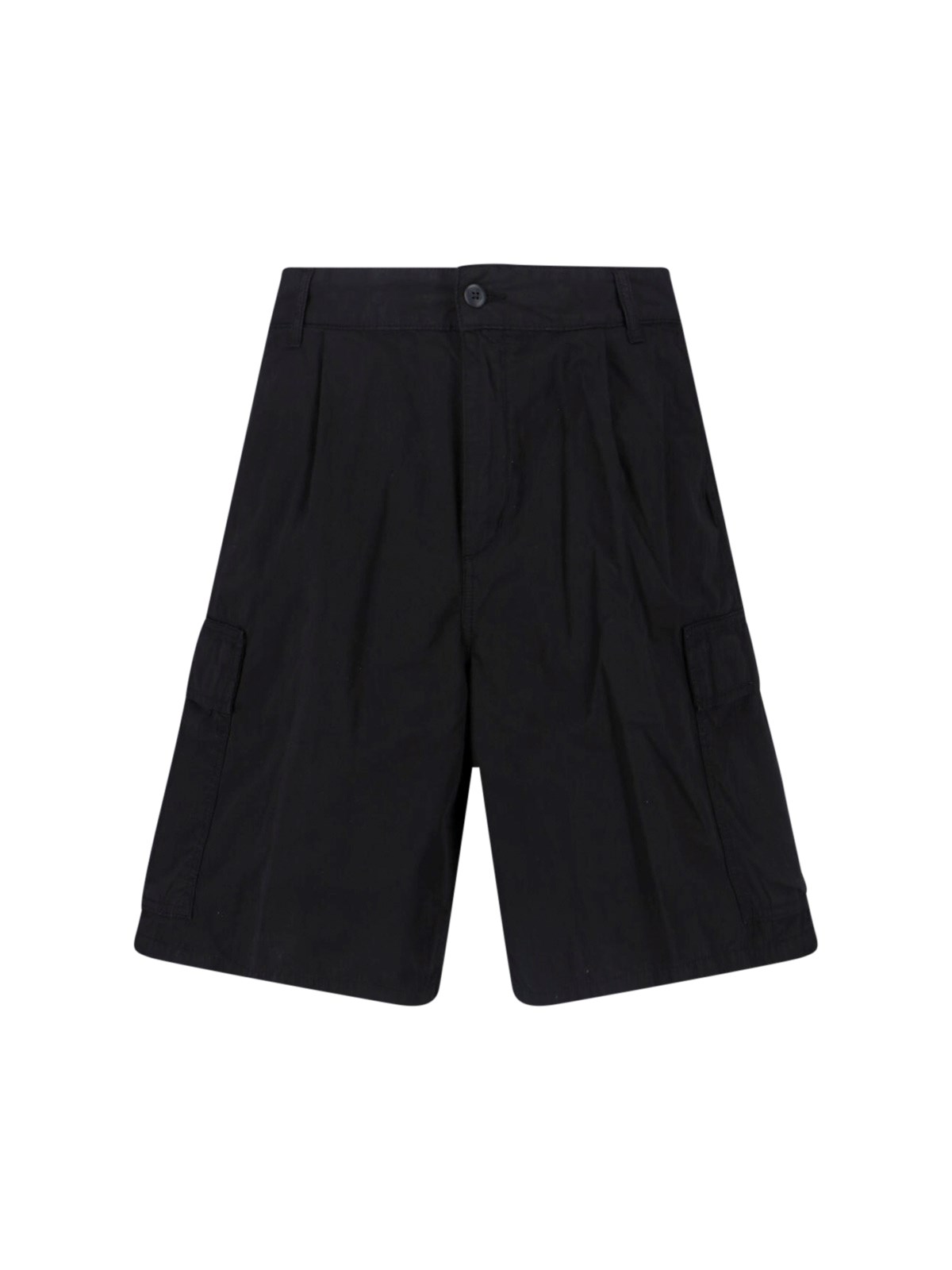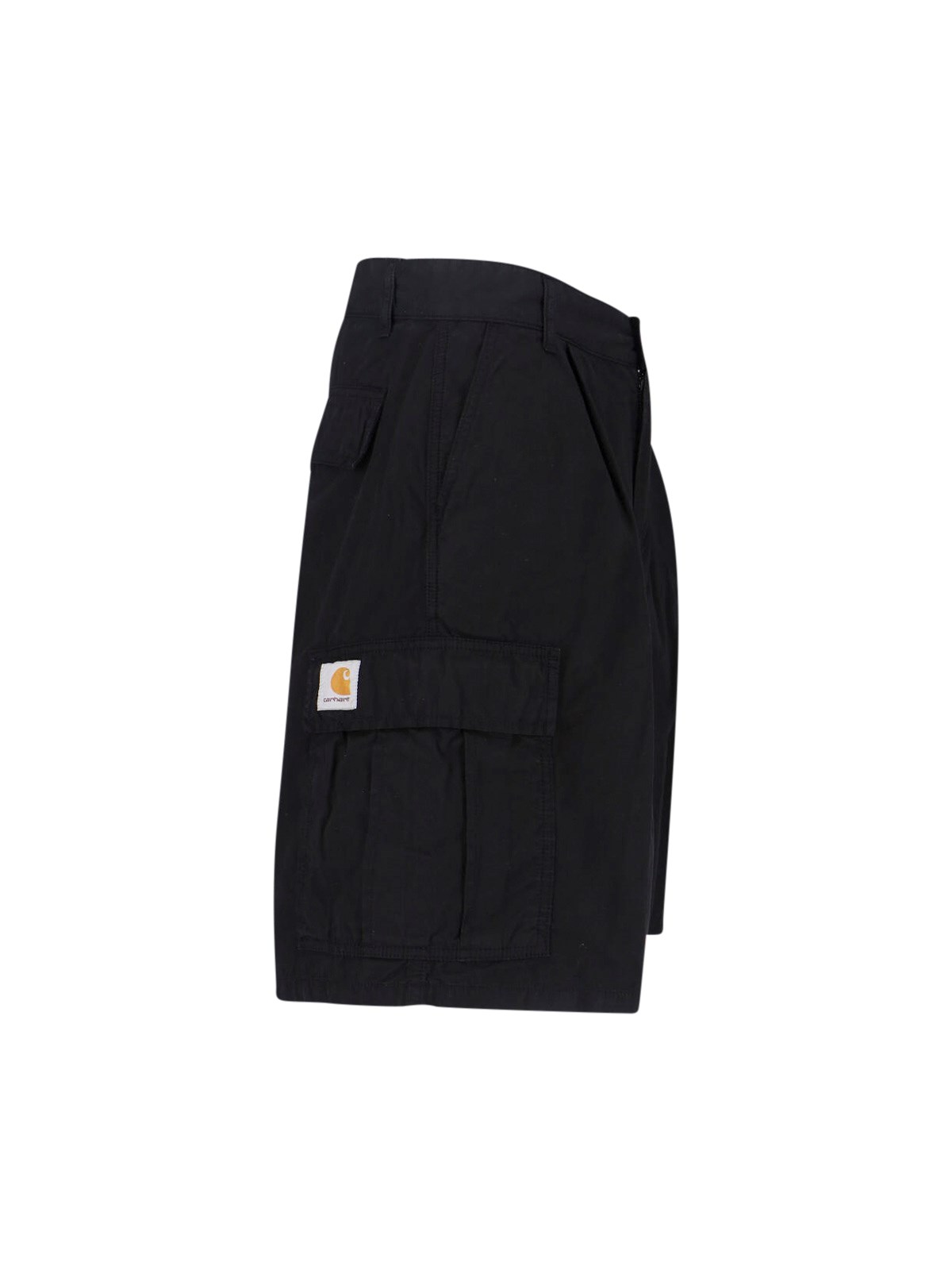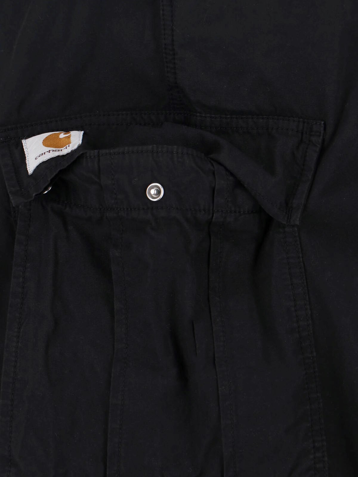 Carhartt WIP cargo shorts in black cotton, mid-rise, button and zip closure, belt loops, two side pockets, two side cargo pockets, side logo patch, straight leg.