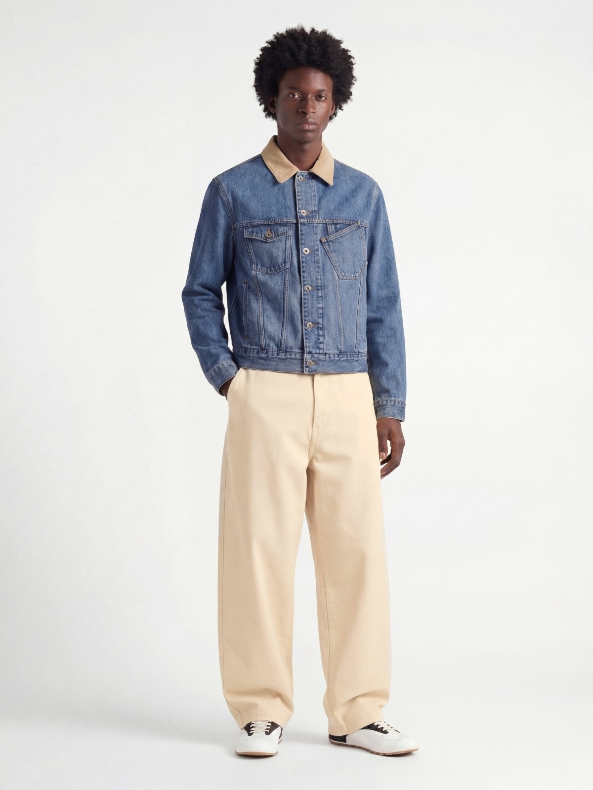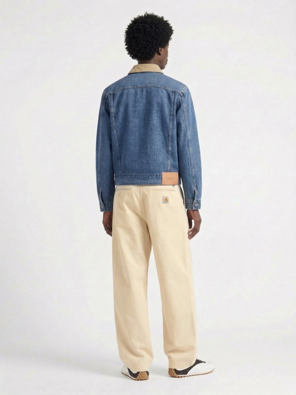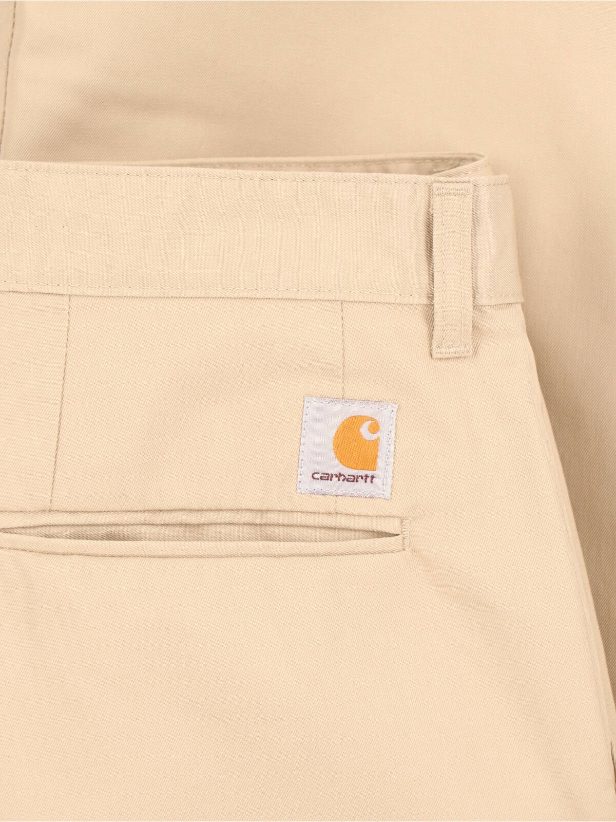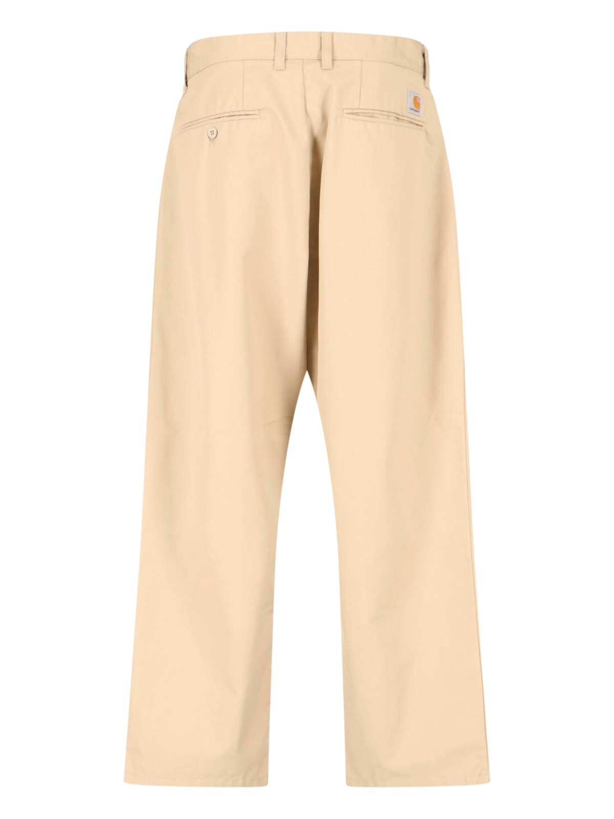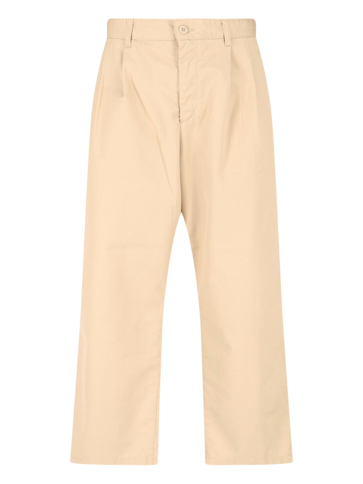 Wide Leg Pants 'Evan' Carhartt WIP in beige cotton blend, mid-rise, button and zip closure, front pleats, belt loops, two side pockets, two back pockets, logo patch on the back, wide leg.