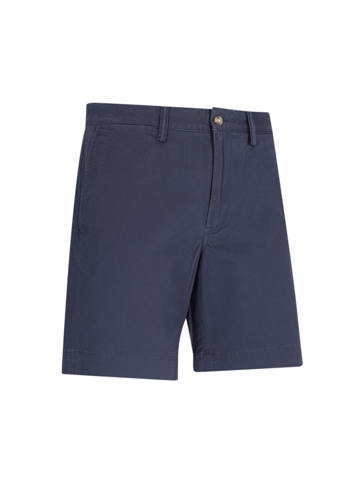 Logo shorts by Polo Ralph Lauren, in blue cotton blend, belt loops, zip and button closure, two side pockets, two buttoned welt pockets at the back, tone-on-tone logo embroidery at the back.