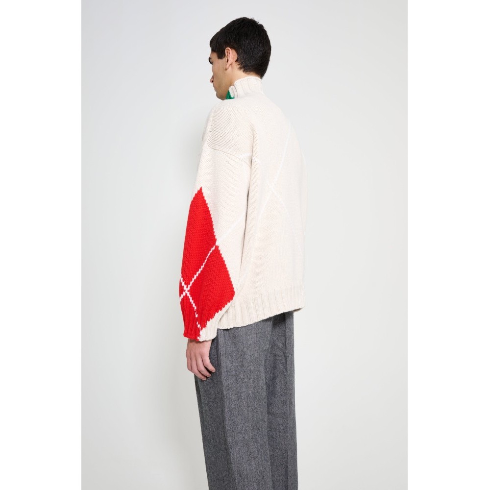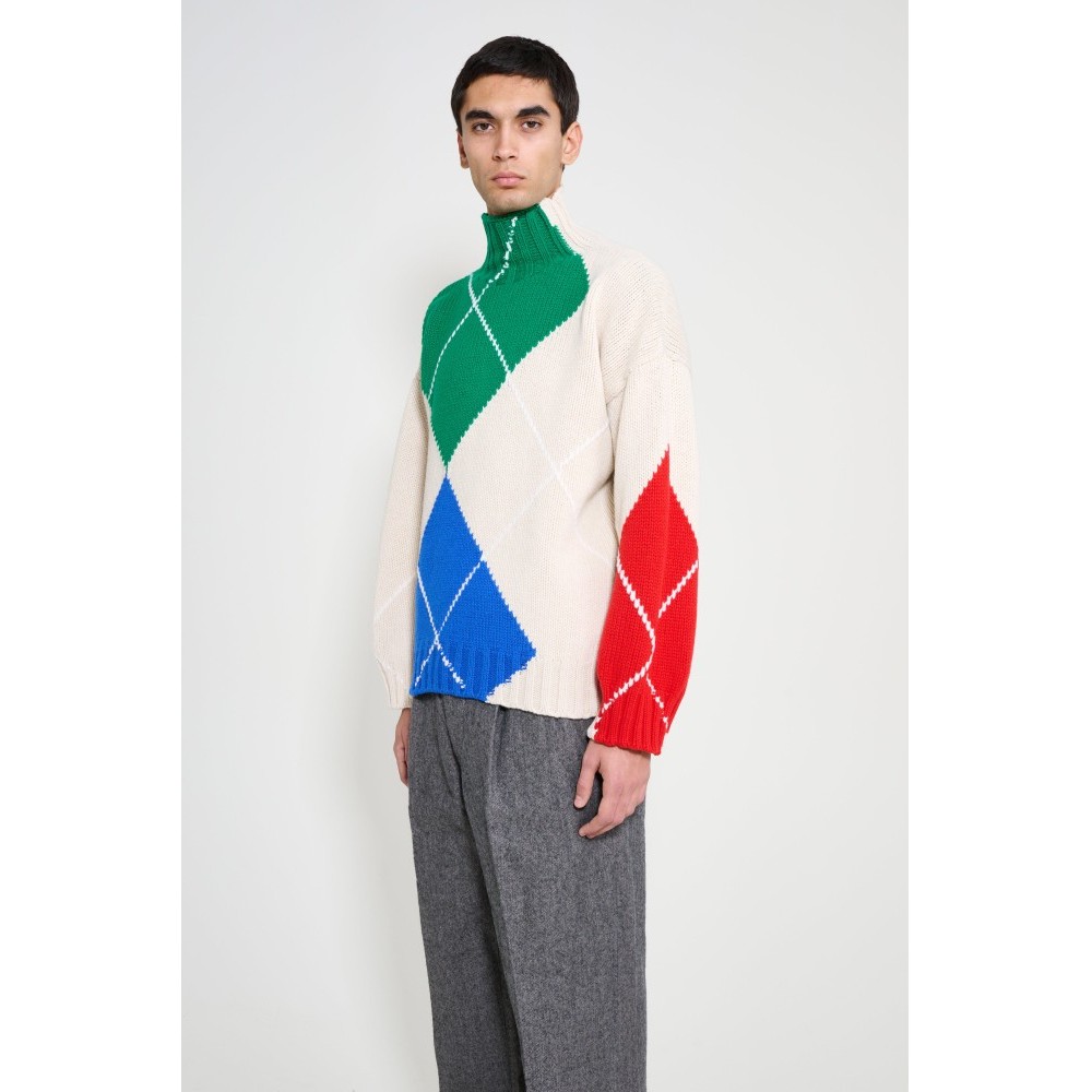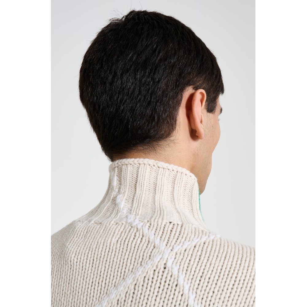 - Knitwear in beige, green, blue and red - JW Anderson x Pringle collaboration - Made in the UK - Relaxed fit - Turtleneck collar - Textured knit pattern - Ribbed trims