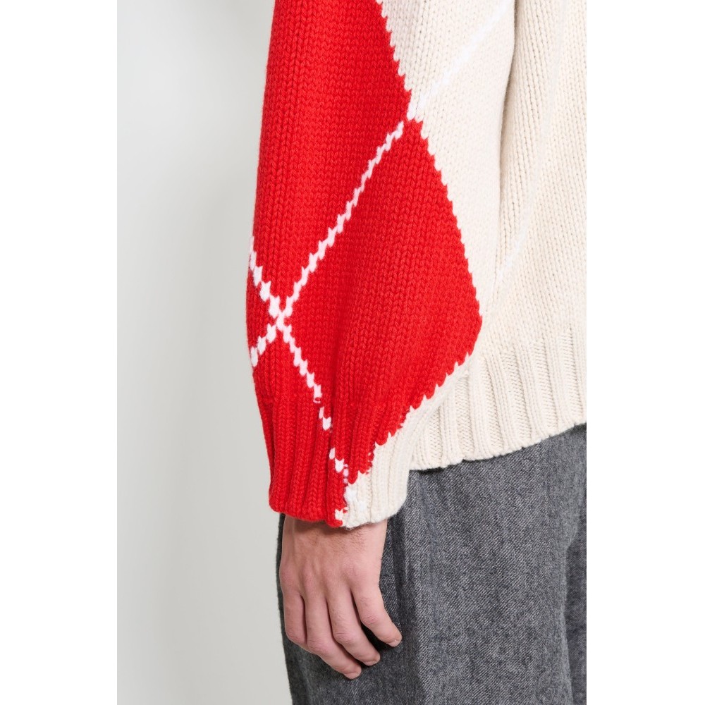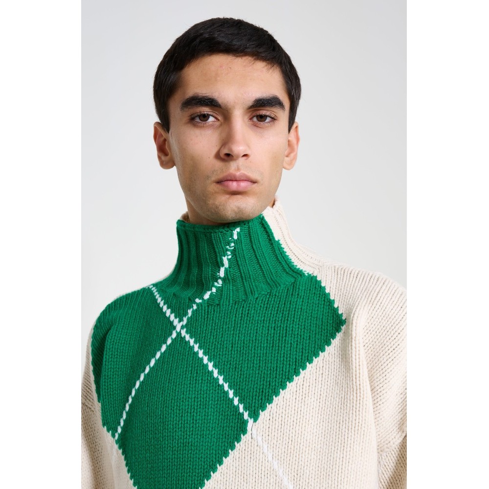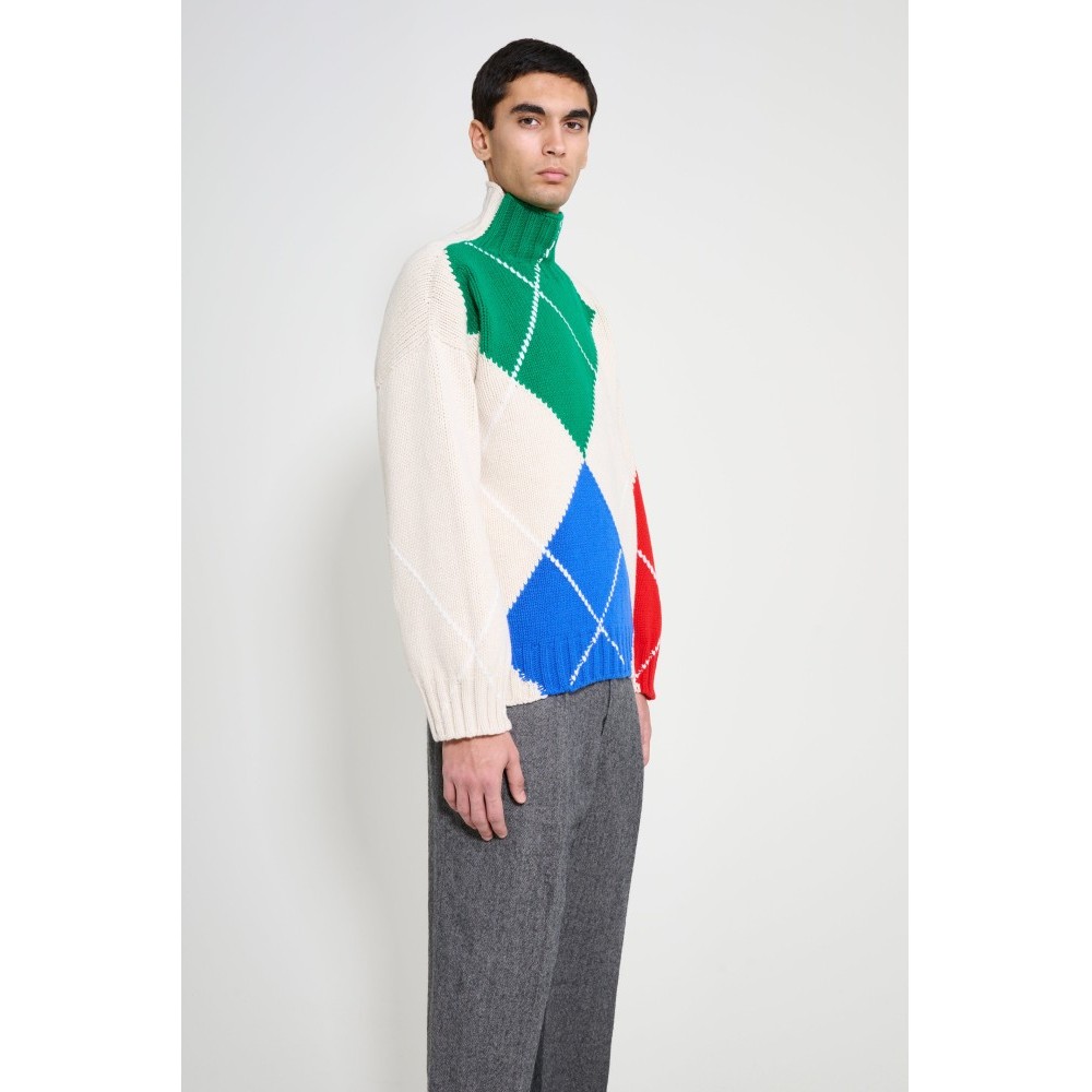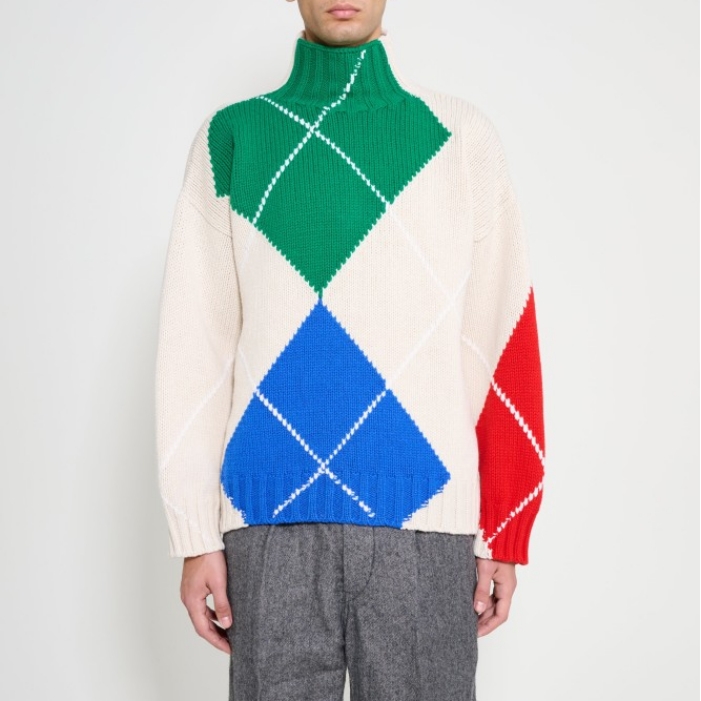 - Knitwear in beige, green, blue and red - JW Anderson x Pringle collaboration - Made in the UK - Relaxed fit - Turtleneck collar - Textured knit pattern - Ribbed trims