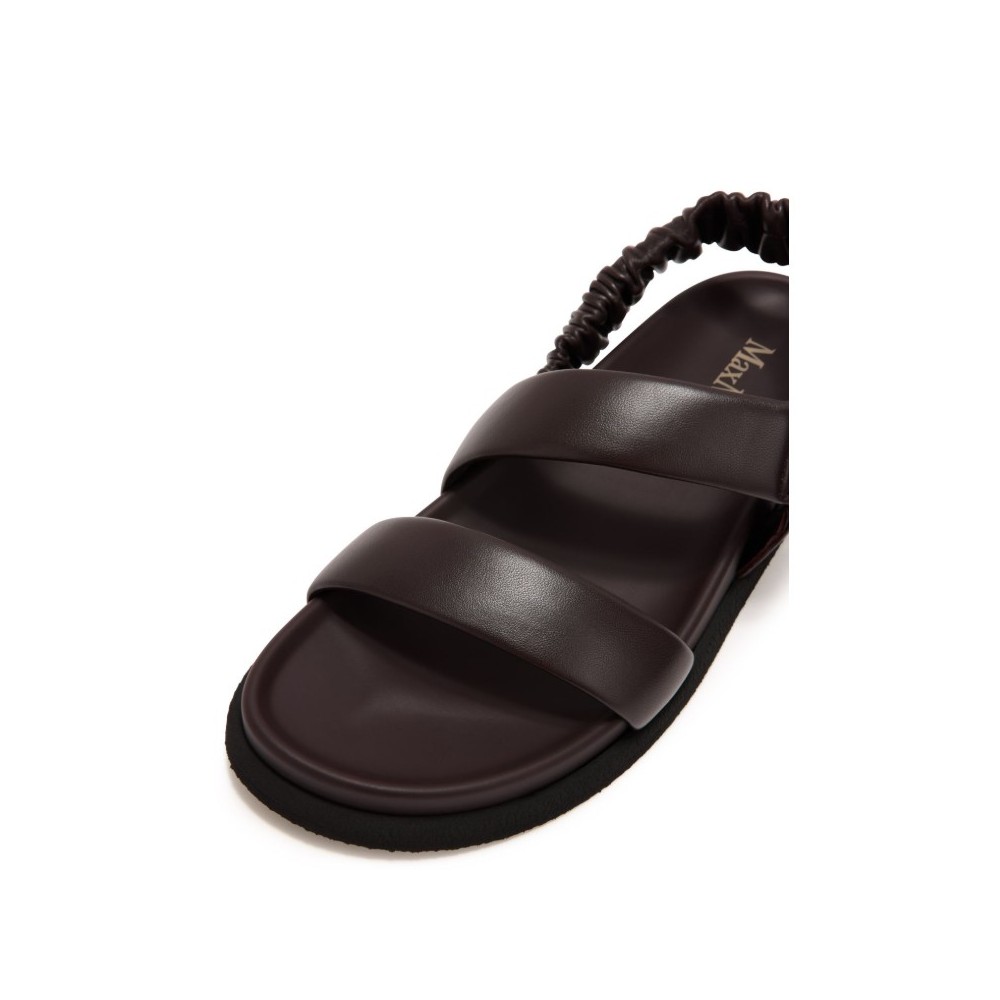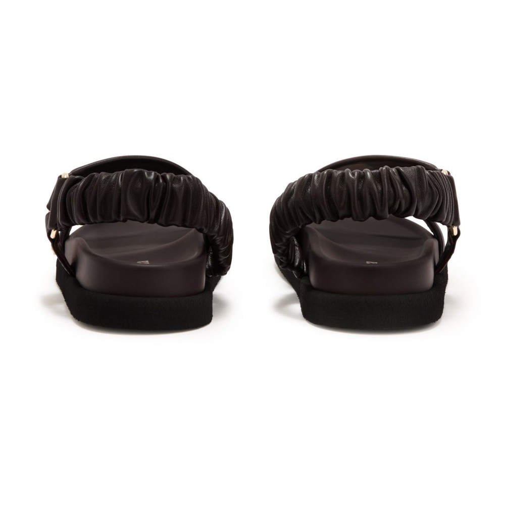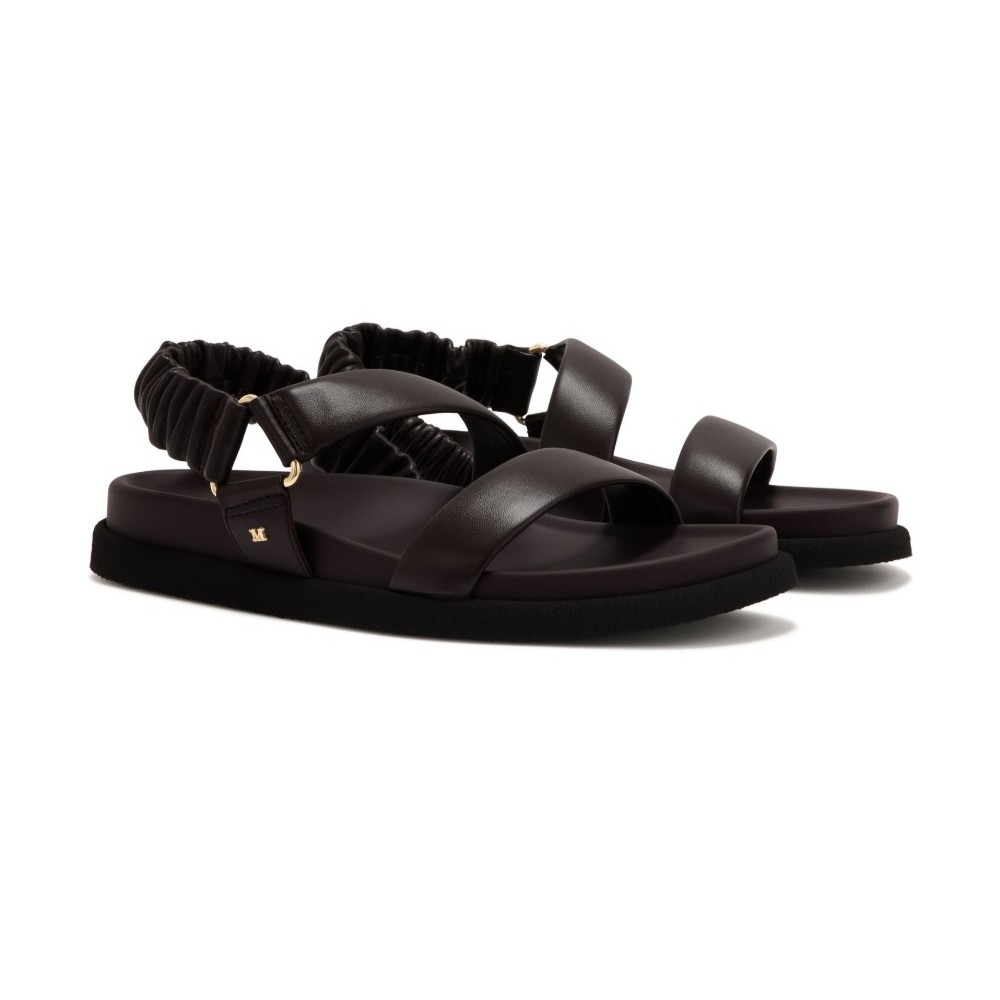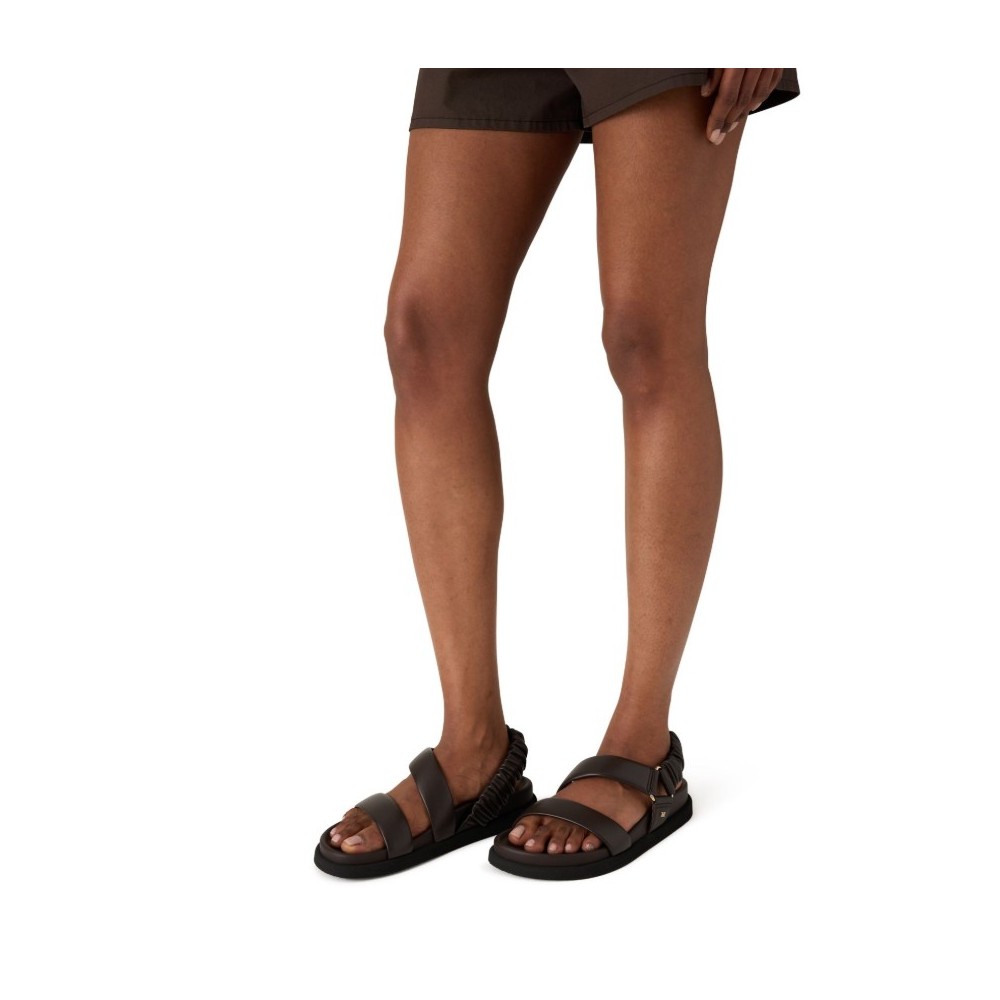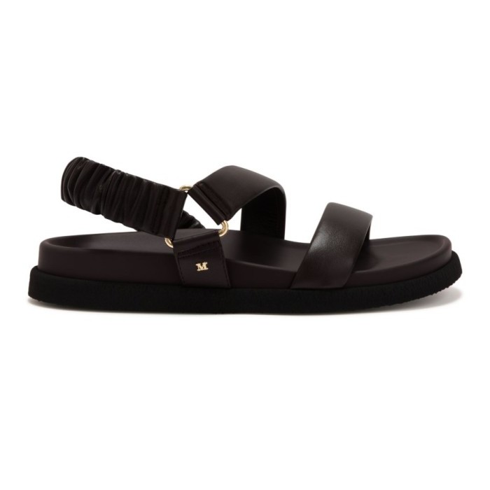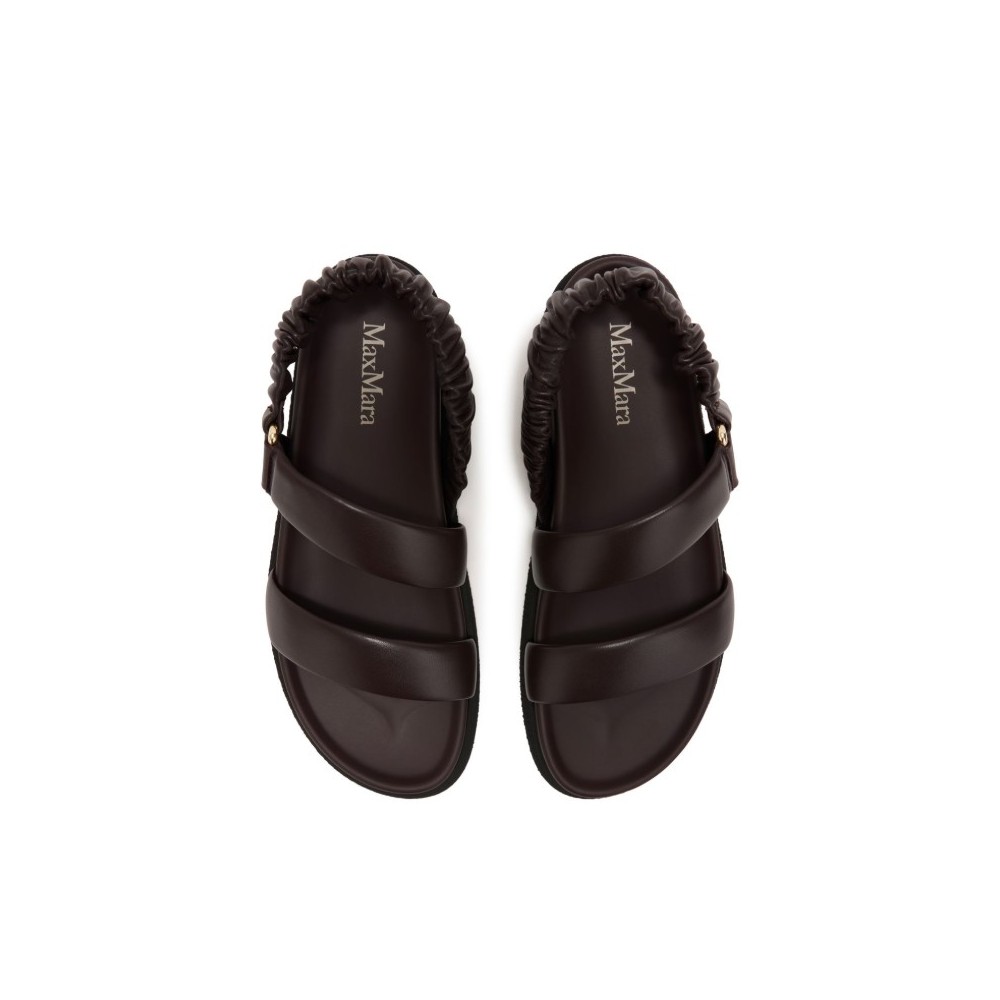 Description : Sandals & slides, logo on the inside, smooth leather, rubber, open, round toe, thick outer sole, elasticated sides, metal finish, rear strap.
