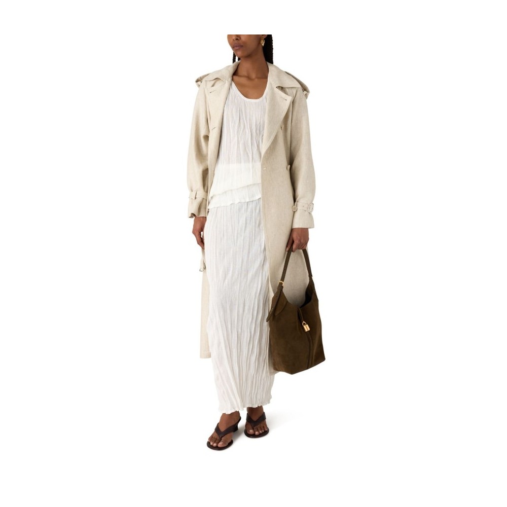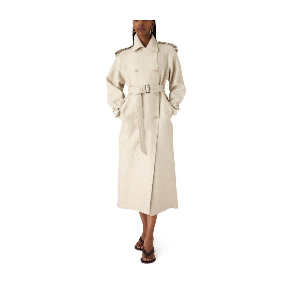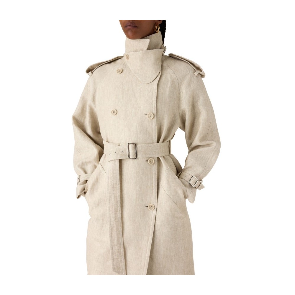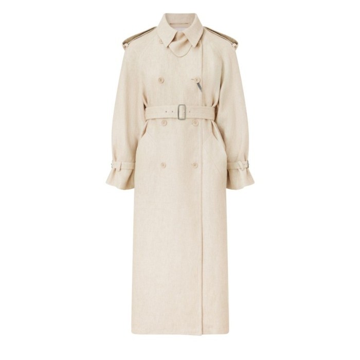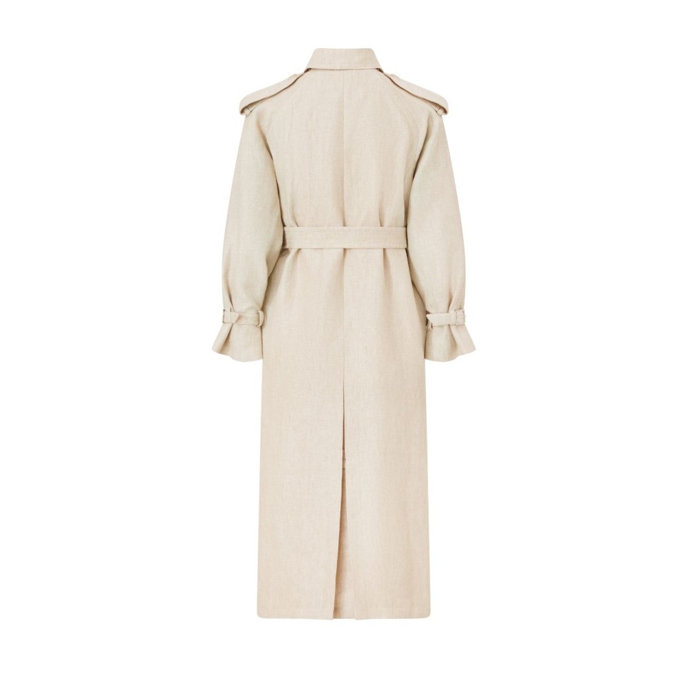 Description : Long, tailored collar, long-sleeved, side pockets, double-breasted.